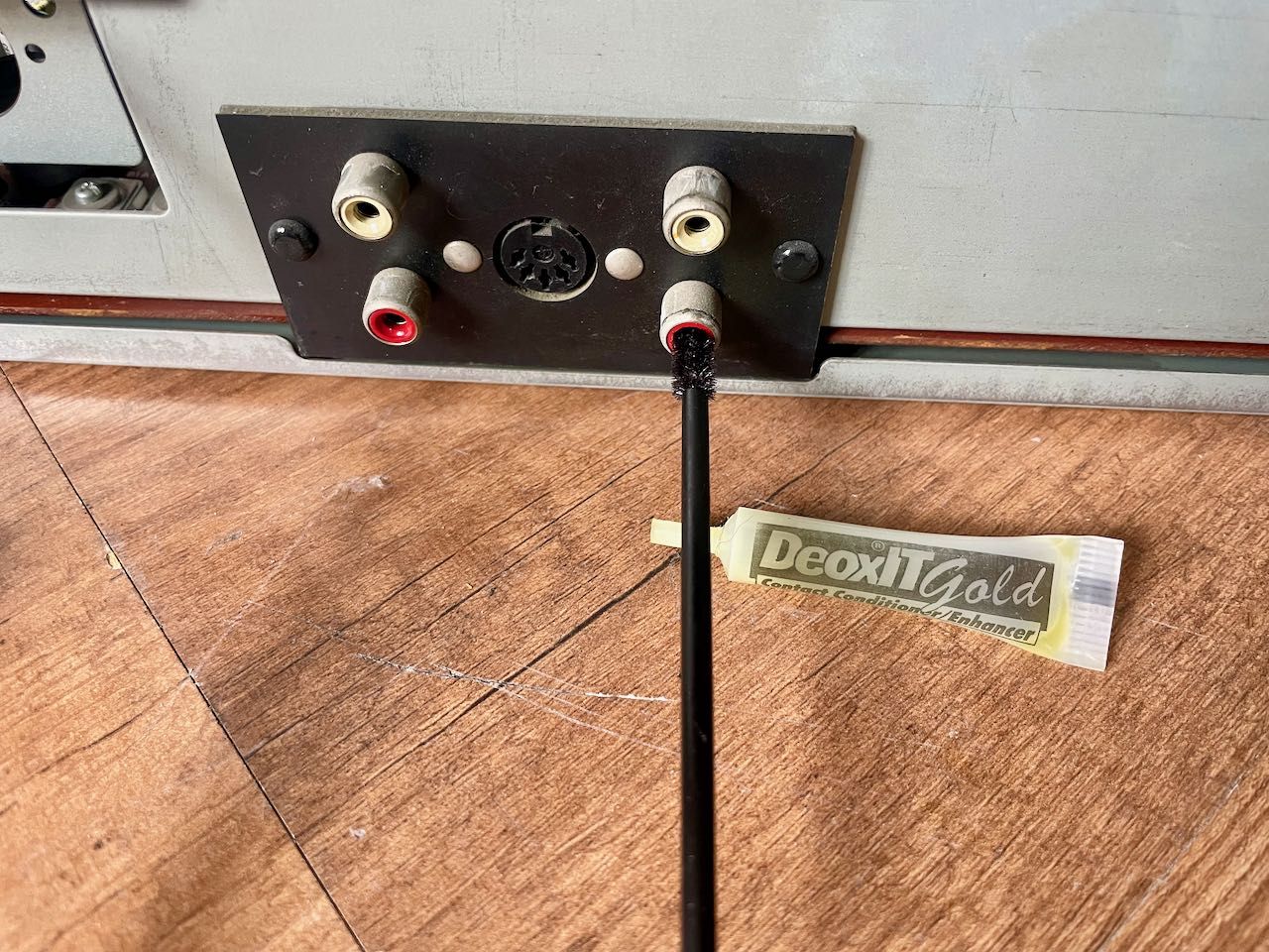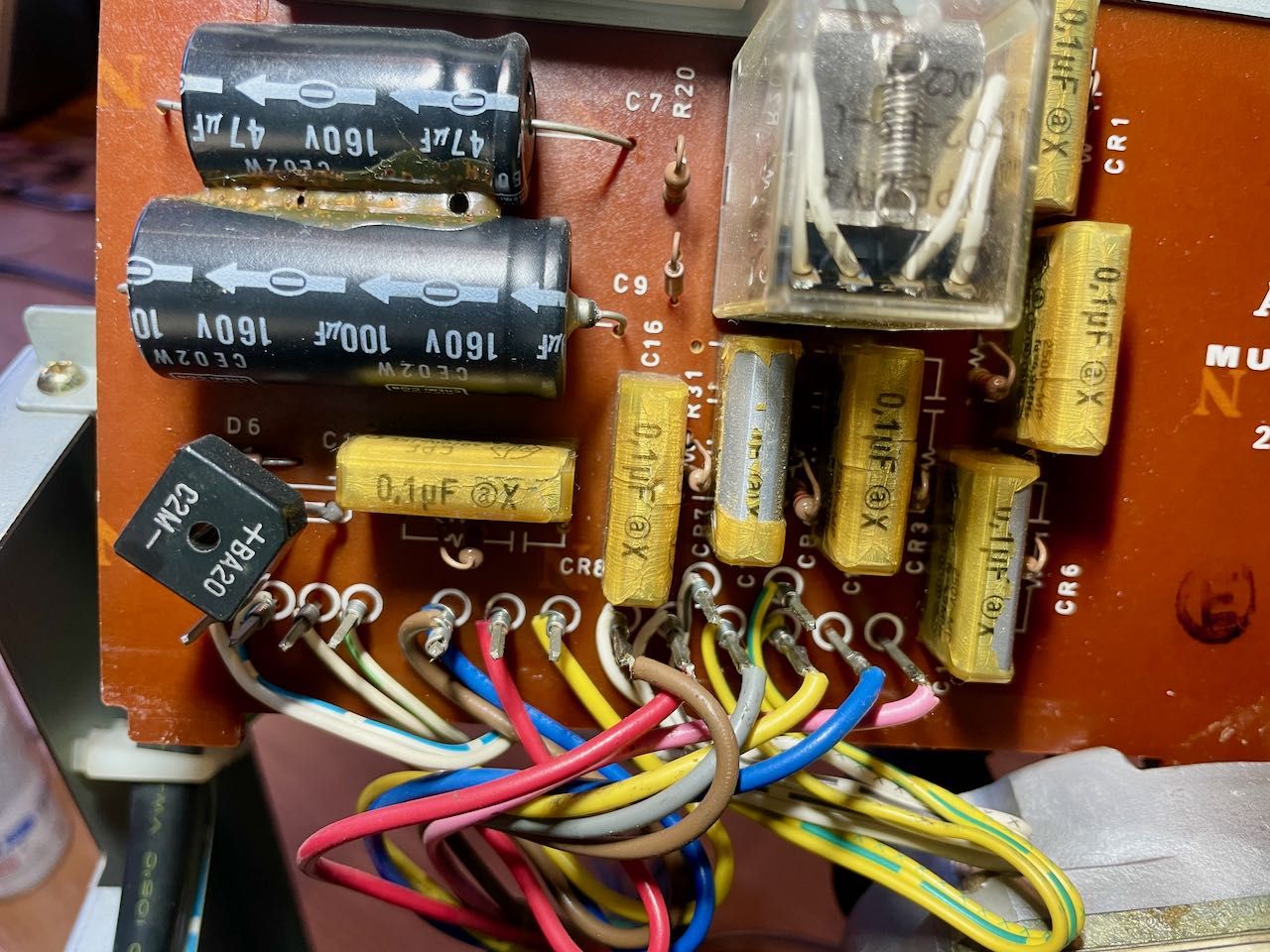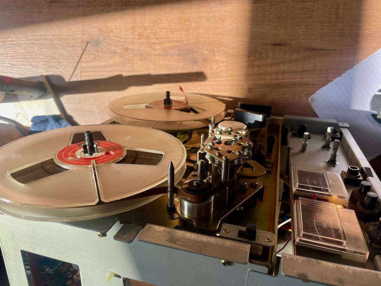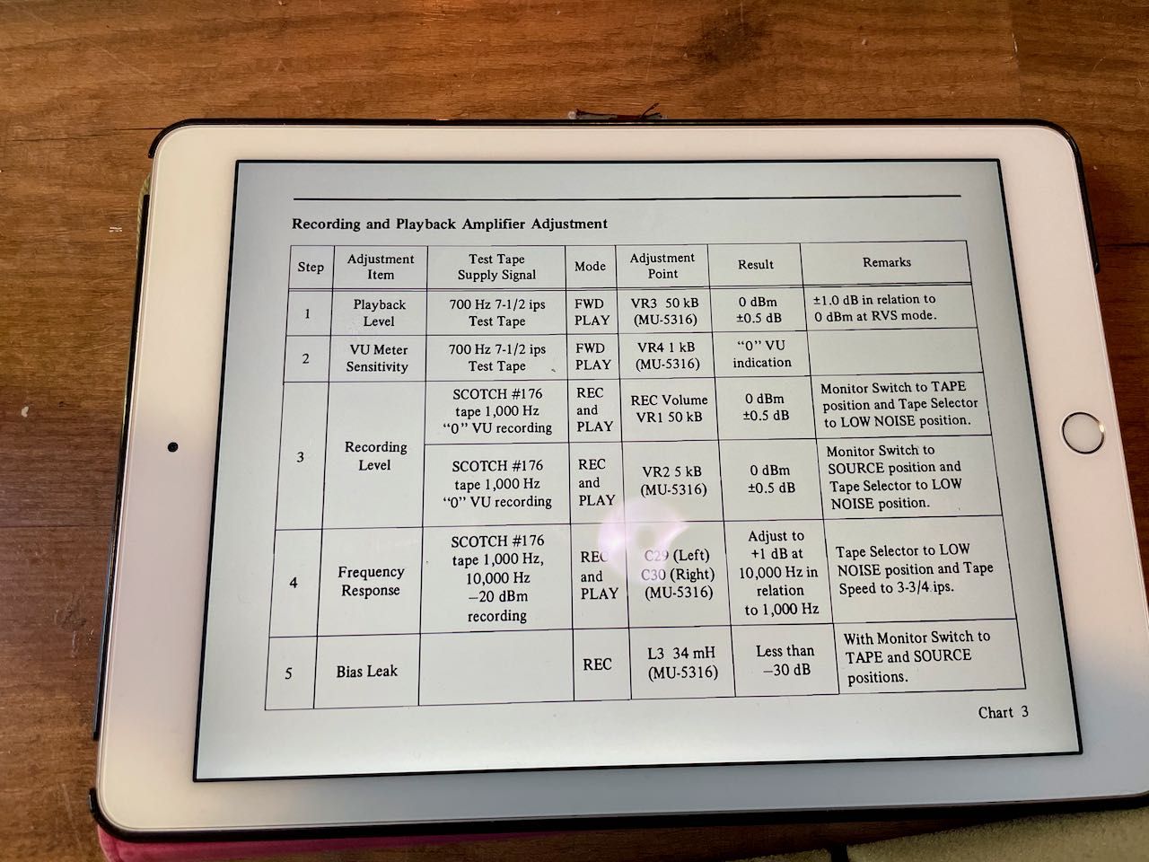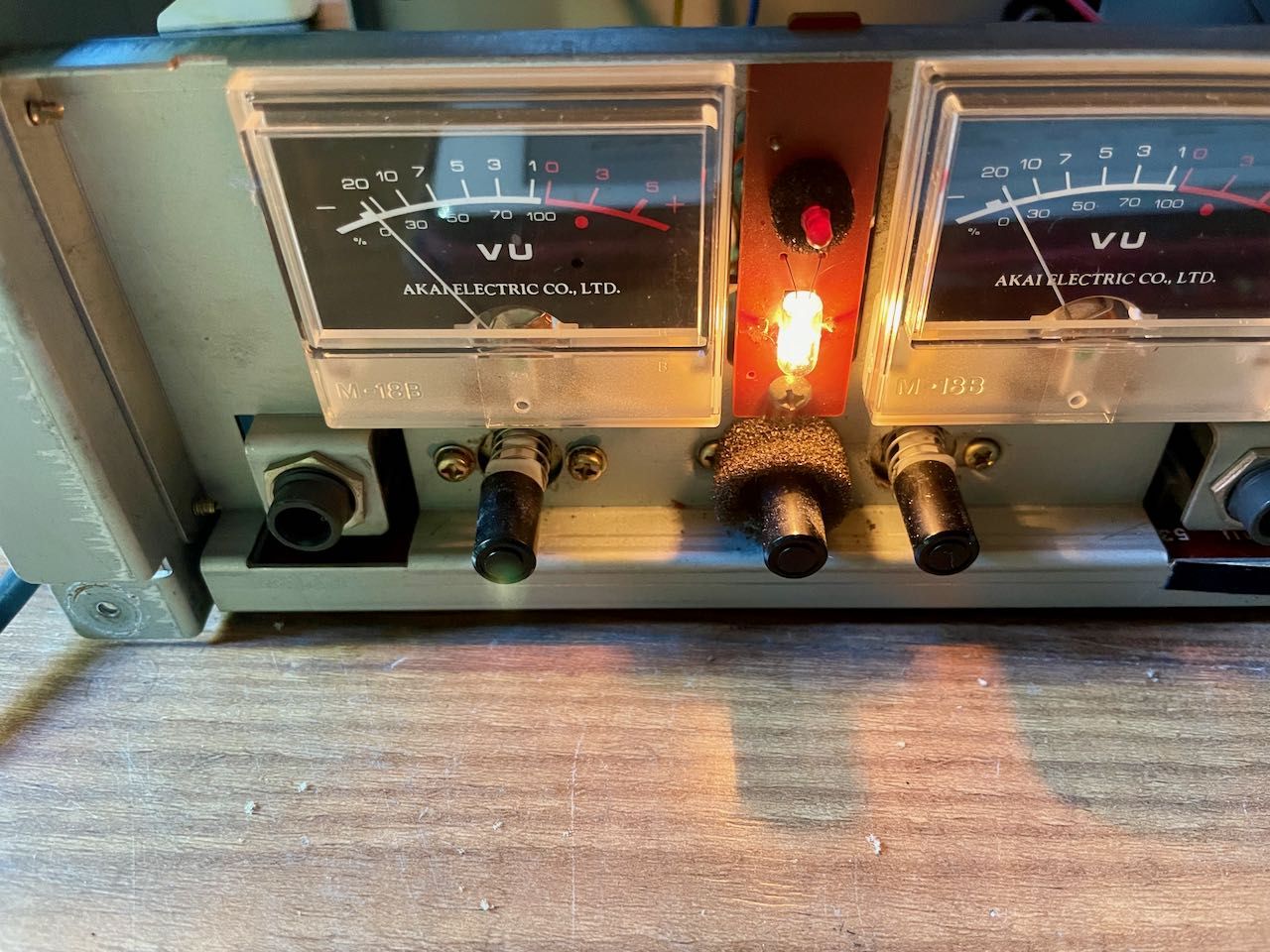 Eenmaal opgelapt was het tijd voor het afregelen. De Akai testband werd geplaatst en de oscilloscoop op de uitgang. Slechts een kleine correctie van de 0dB afstelling, een mini draai om de VU meter goed te zetten en een kleine opname correctie. Deze tussen 1977 en 1980 geproduceerde bandrecorder is als nieuw. De weergave bij zowel lage frequentie als 16kHz is verbazingwekkend goed. Wat is dit toch een heerlijke bandrecorder!