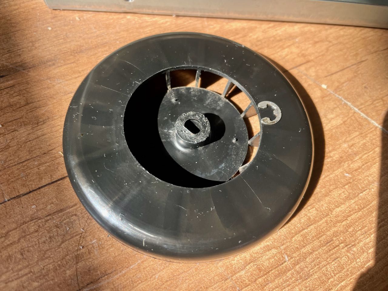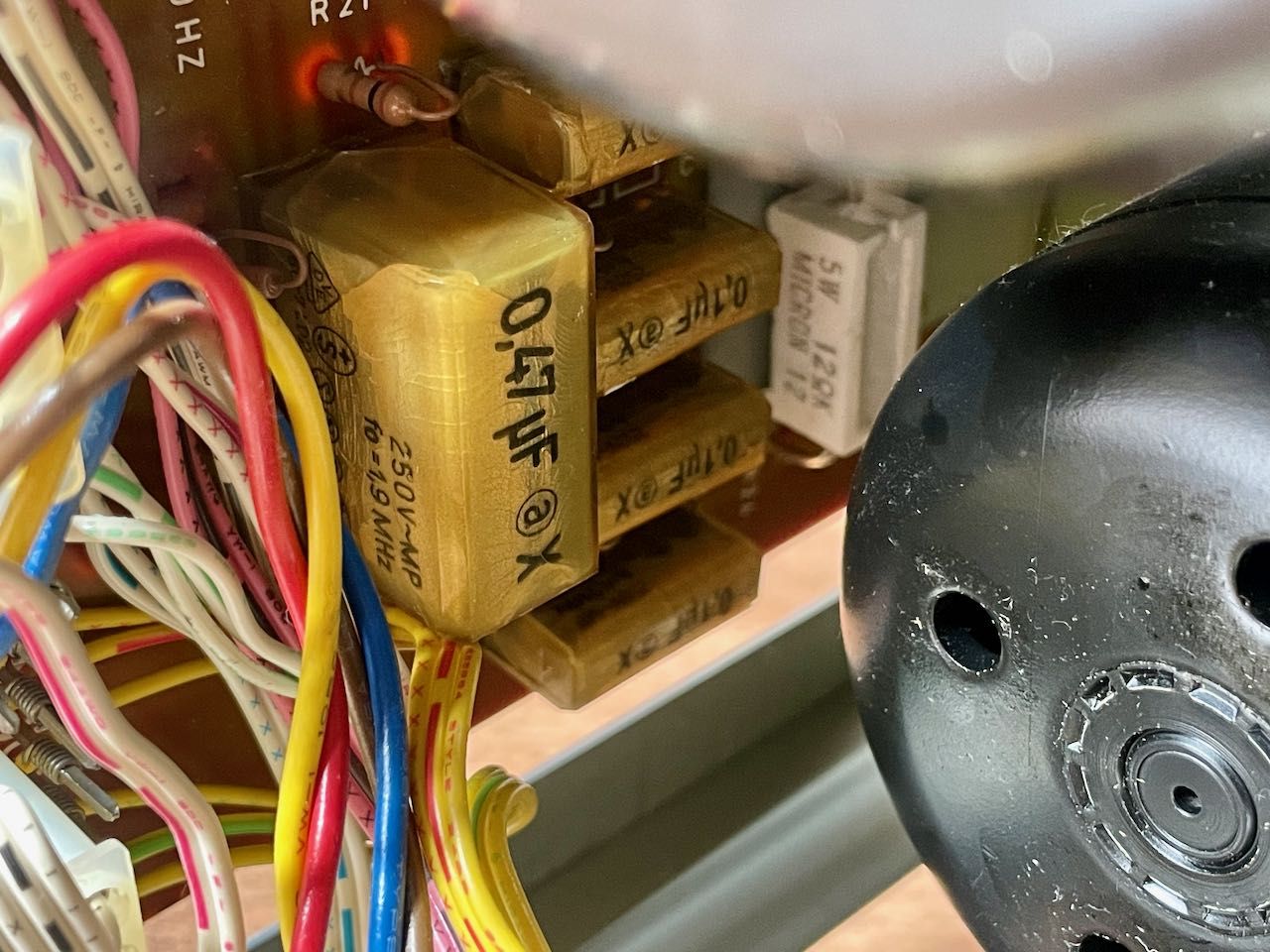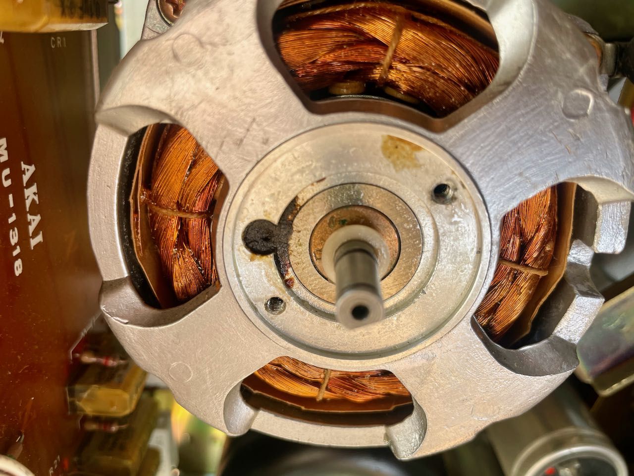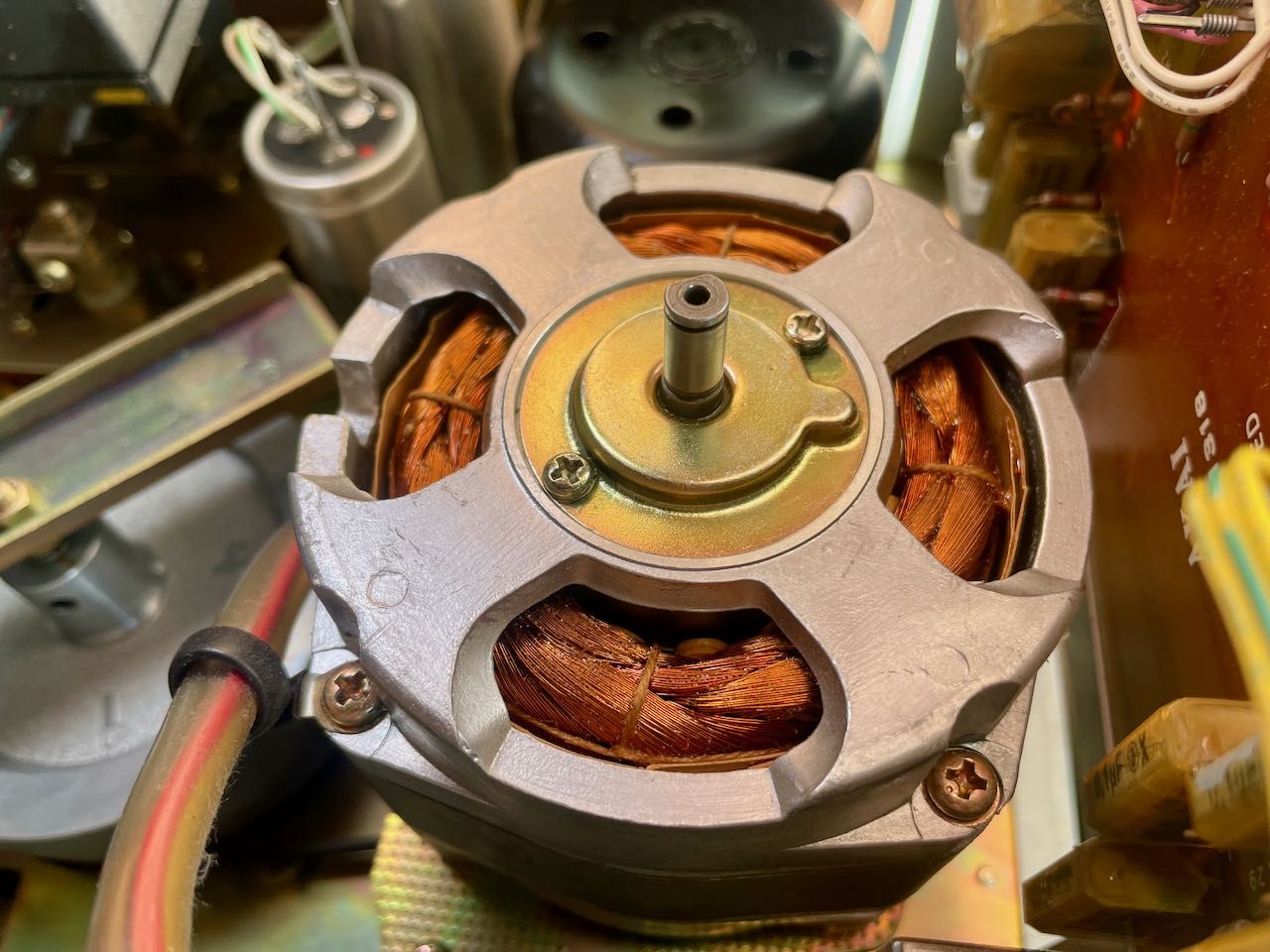 Op hoge snelheid liep hij als een zonnetje. Maar omschakelen naar de lagere snelheid ging er wat fout. De motor begon te brommen en tijdens het omschakelen van snelheid hoorde en zag je een hoogspanning overschieten van een weerstand naar een condensator.