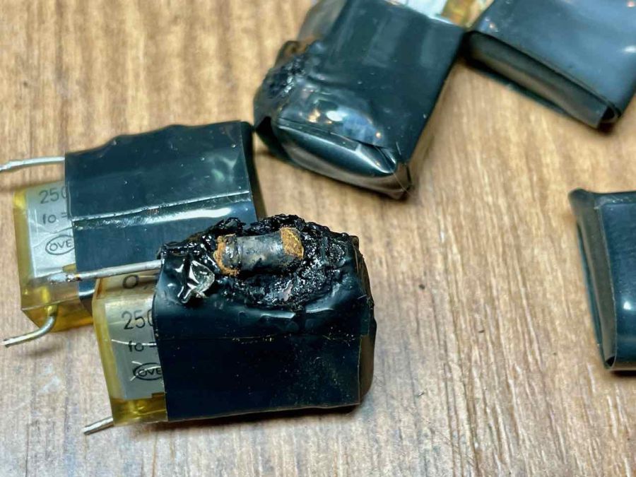Alle spark killers moeten vervangen. 0,1uF condensator en 120ohm weerstand in serie en daarna met krimpkous afgeschermd.