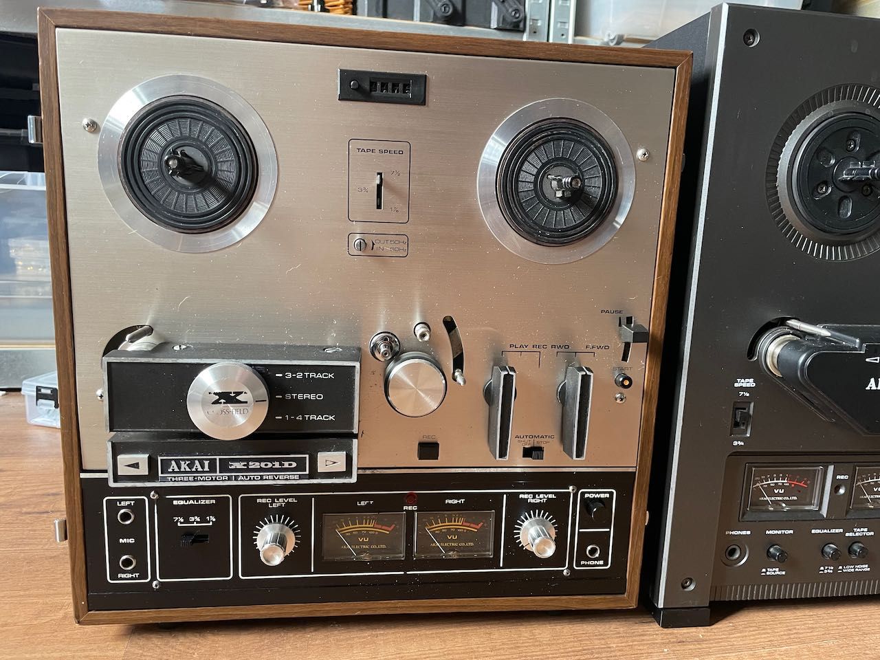Deze prachtige autoreverse bandrecorder is geproduceerd tussen 1973 en 1977. Gezien de leeftijd is het natuurlijk geweldig dat met slechts een kleine reparatie deze Akai X201D weer speelt.