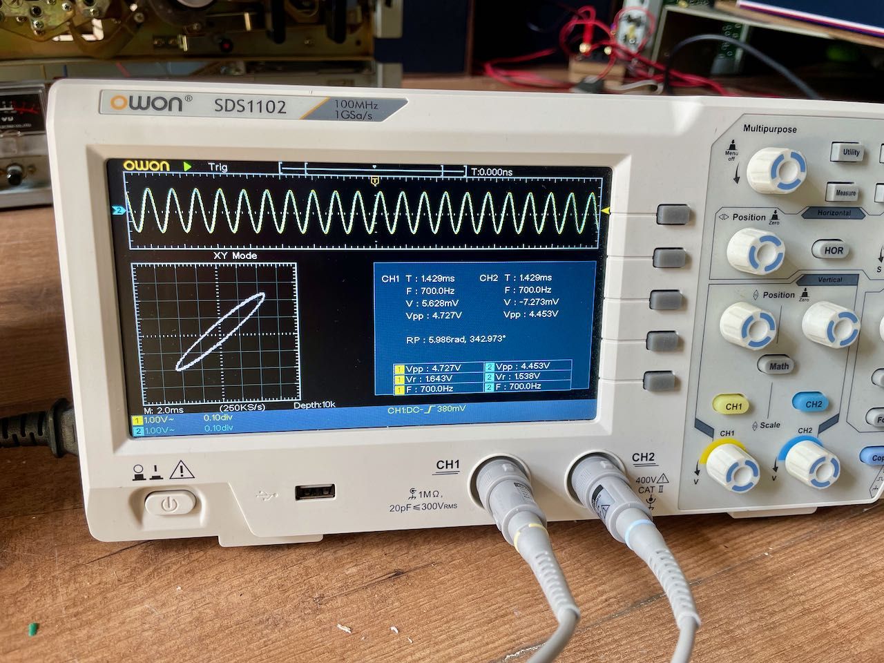 - 700Hz, 0dB -> prachtig signaal. Mooi in fase