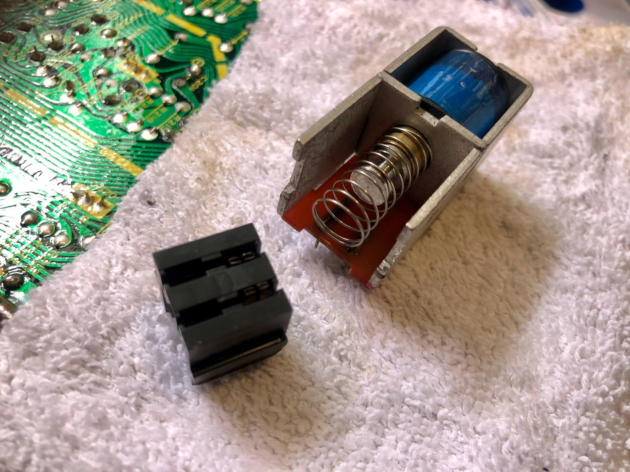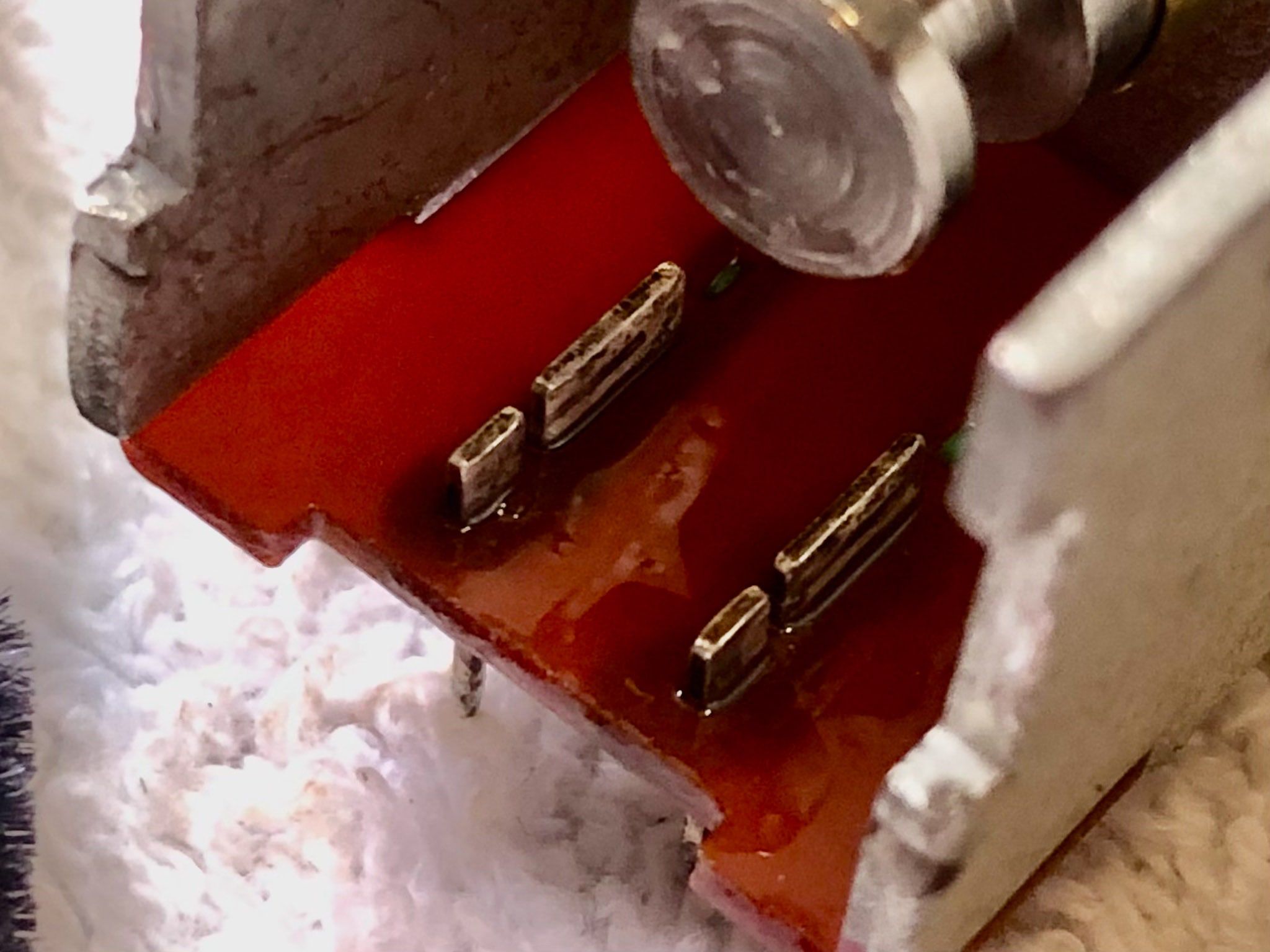 - De contacten gereinigd met Deoxit contact cleaner. De oxidatie is er zo goed als af. Helaas blijft de overgangsweerstand te wisselend.