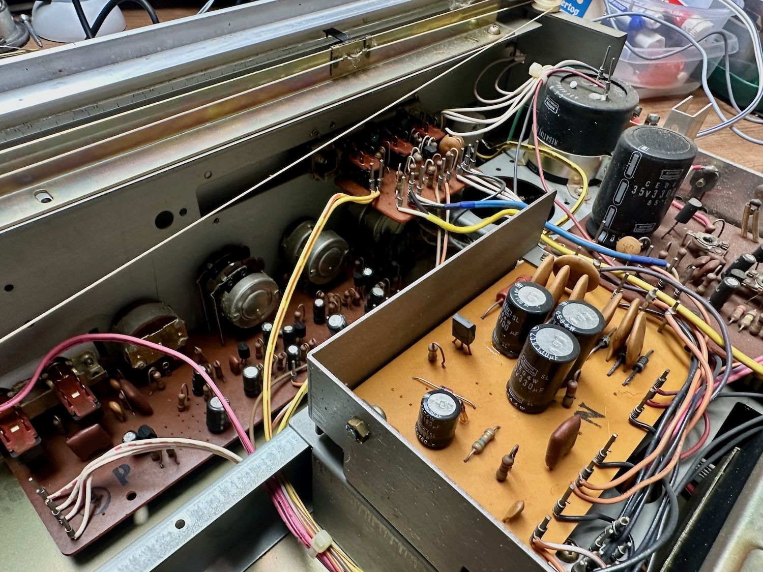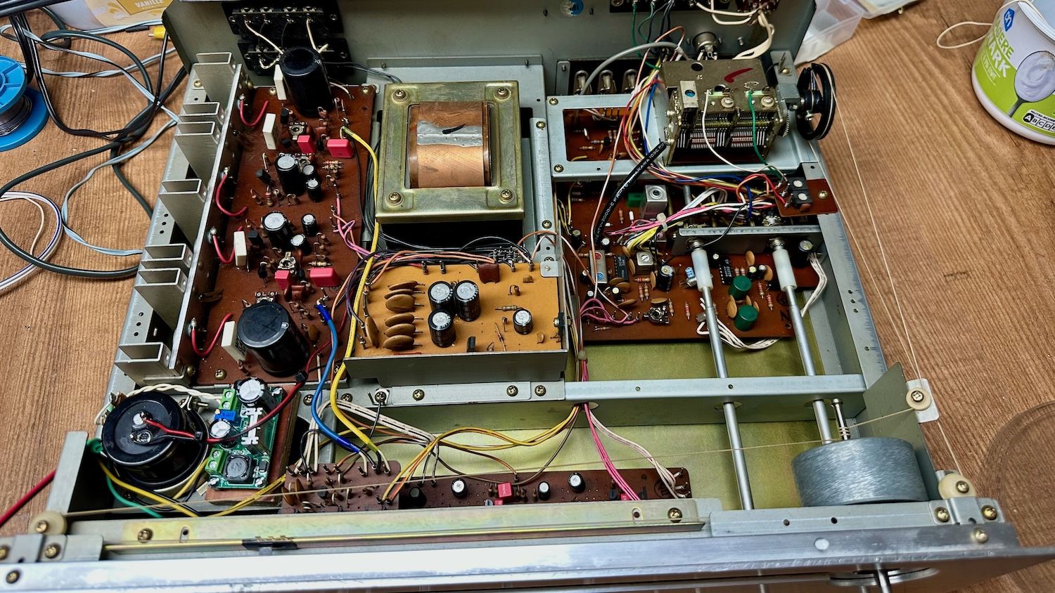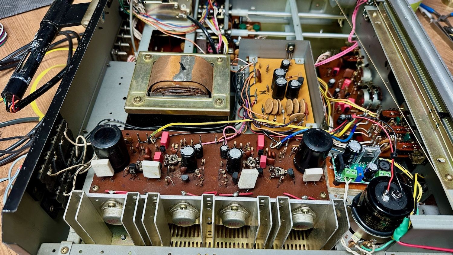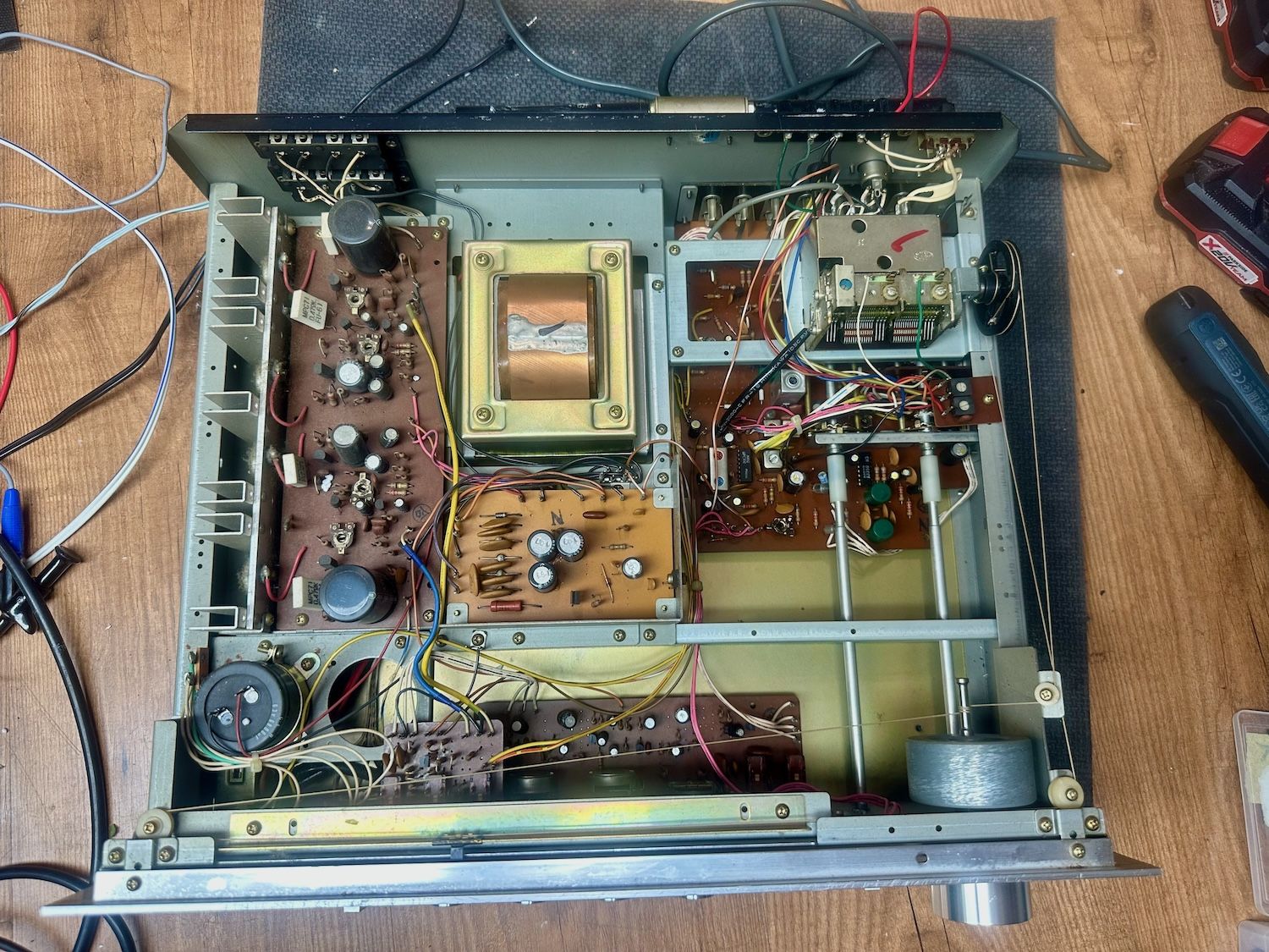 Bij binnenkomst klonk hij niet overtuigend en had hij nogal wat last van ouderdoms kraakjes. De gehele receiver nagekeken en groot onderhoud uitgevoerd.