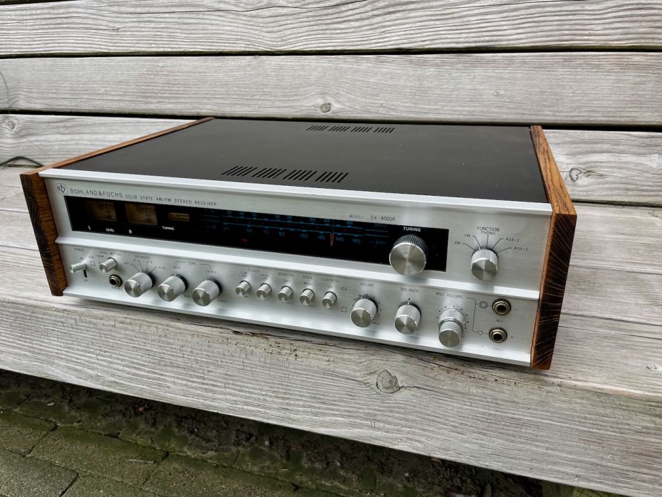 Deze vintage (1976) Bohland & Fuchs SX-9000R receiver is een prachtige verschijning. Het mooie aluminium front, de twee houten panelen en de verlichte meters.