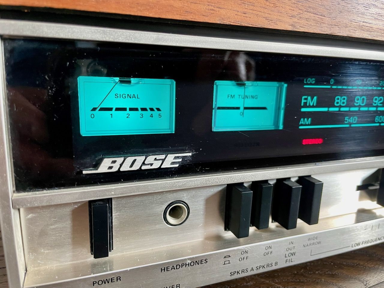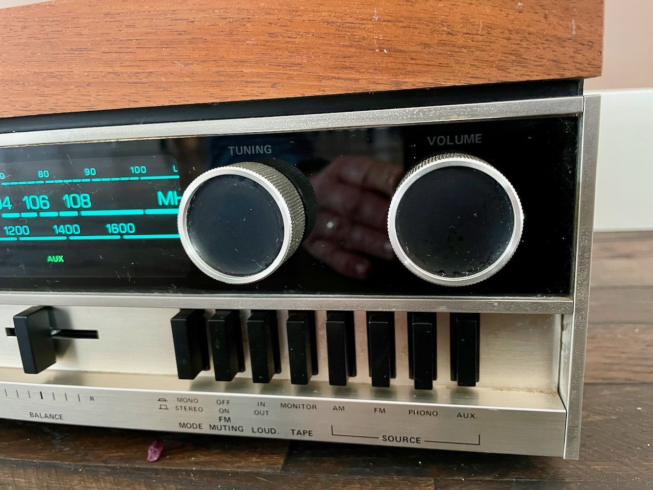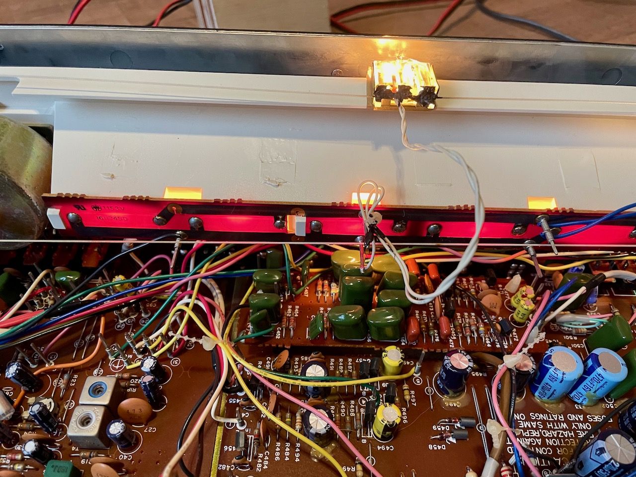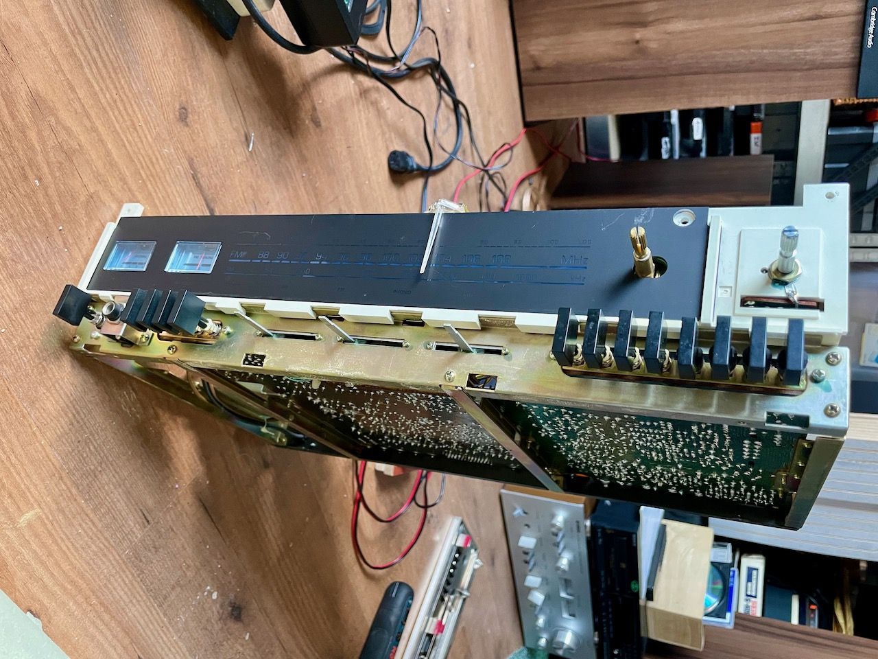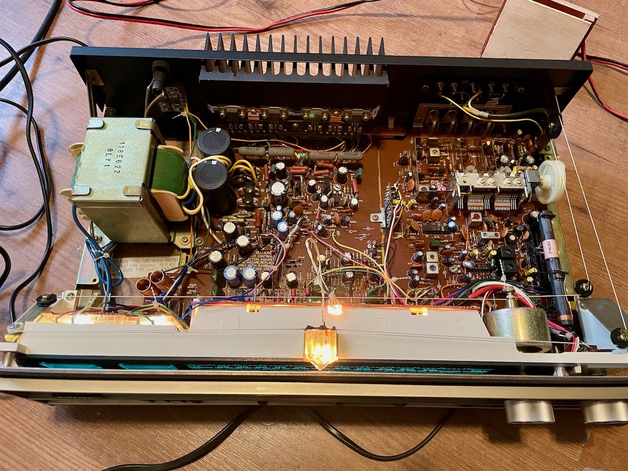 Lampjes gaan aan. Radio lijkt te werken aangezien de meters en de "stereo" led oplchten.