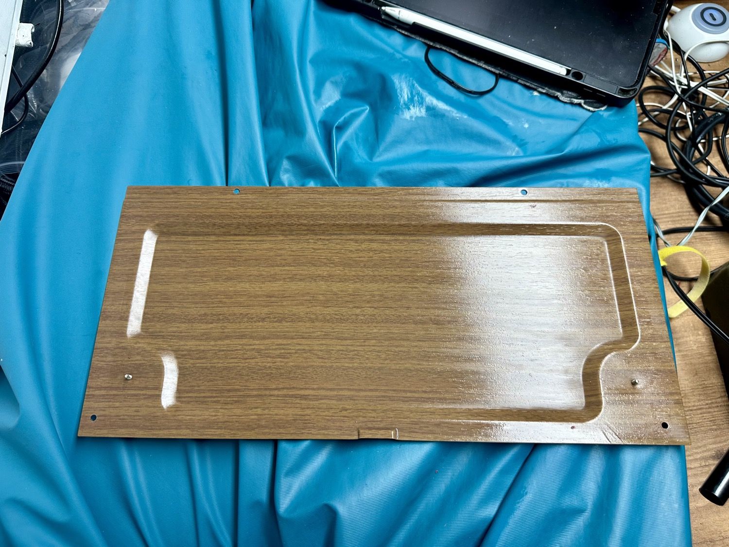 - Metalen afdekrooster is aardig geoxideerd en met alleen schoonmaken bleef hij vies. Deze geschuurd en opnieuw gespoten.
