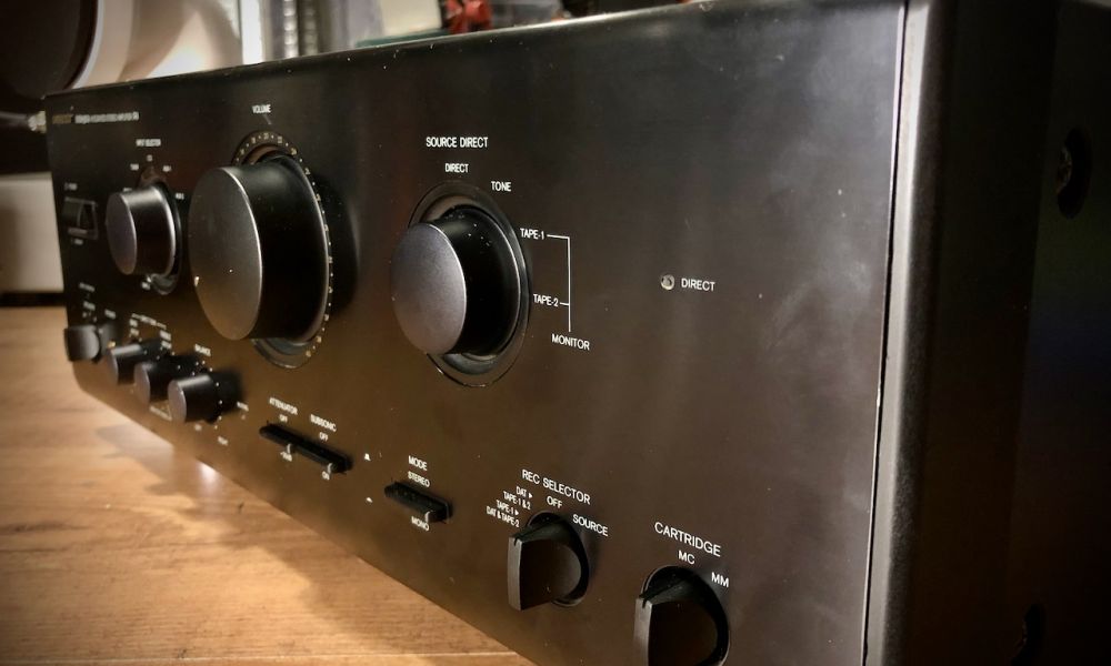 Zeer vieze vintage Pioneer versterker heeft onderhoud nodig.