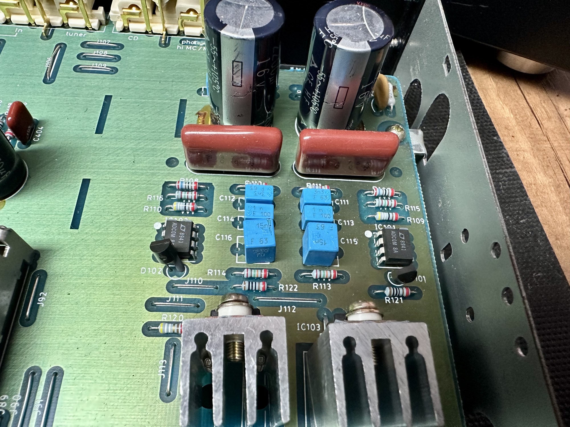 - Cinch in- en uitgangen zitten rechtstreeks op de print gesoldeerd. Hierdoor wat gevoeliger voor storing. Zeker bij gebruik van zware kabels/connectoren.