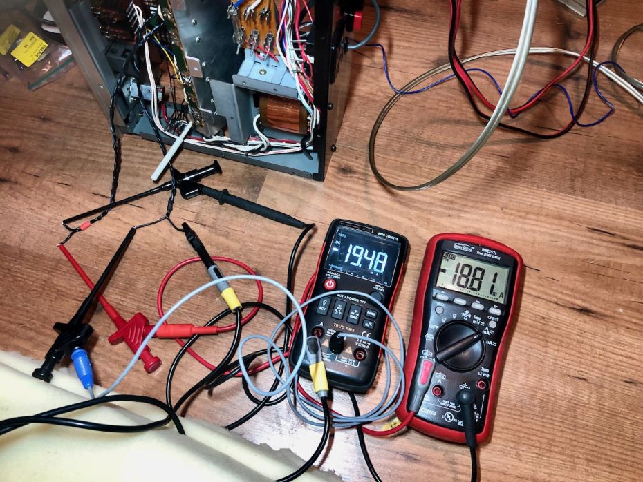 - Alle condensatoren doorgemeten en de meesten voldeden niet maar aan de specificaties. De 4700uF/35V had een waarde van 2000uF.