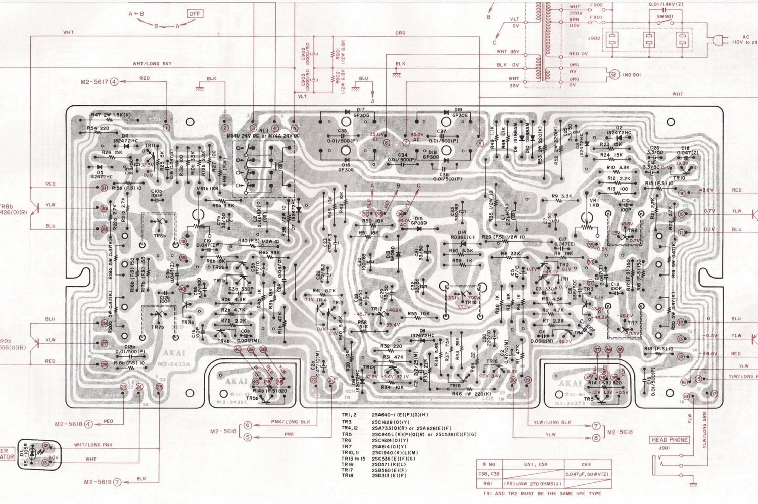 Deze prachtige Akai versterker heeft mij wat hoofdpijn opgeleverd. Als je alles hebt nagemeten en geen defecten kan vinden wordt een reparatie wel erg moeilijk.