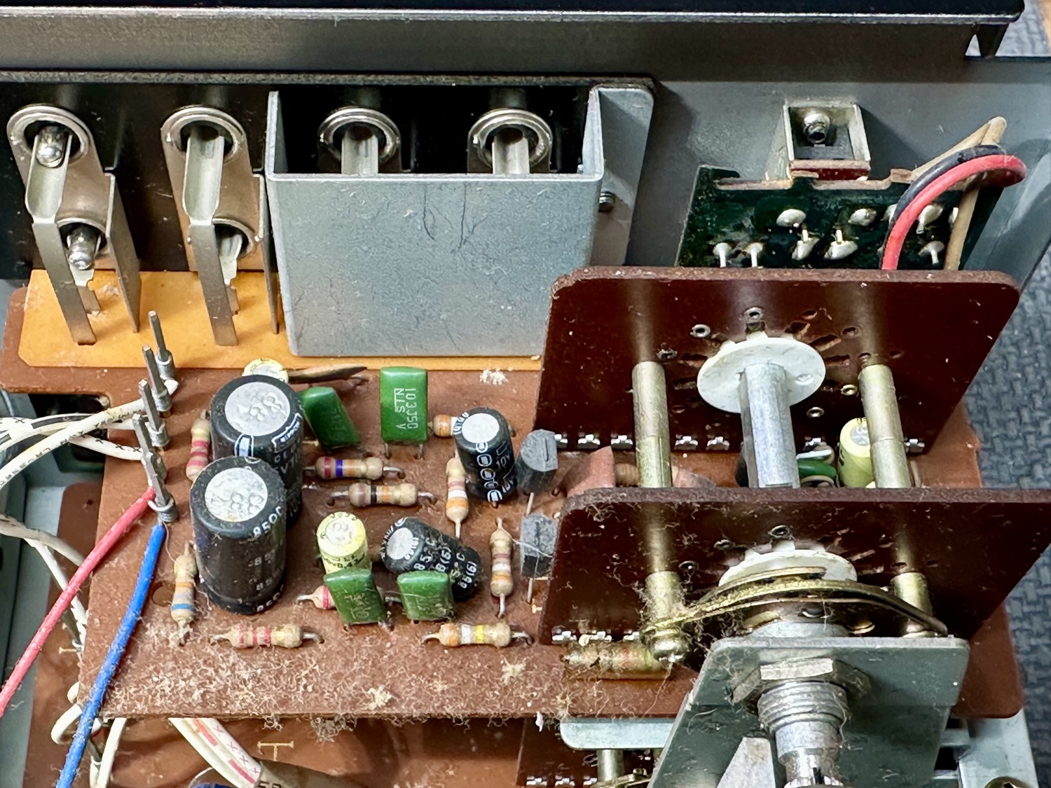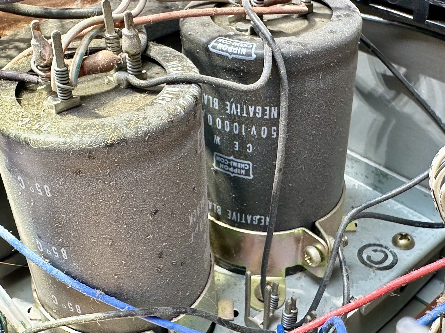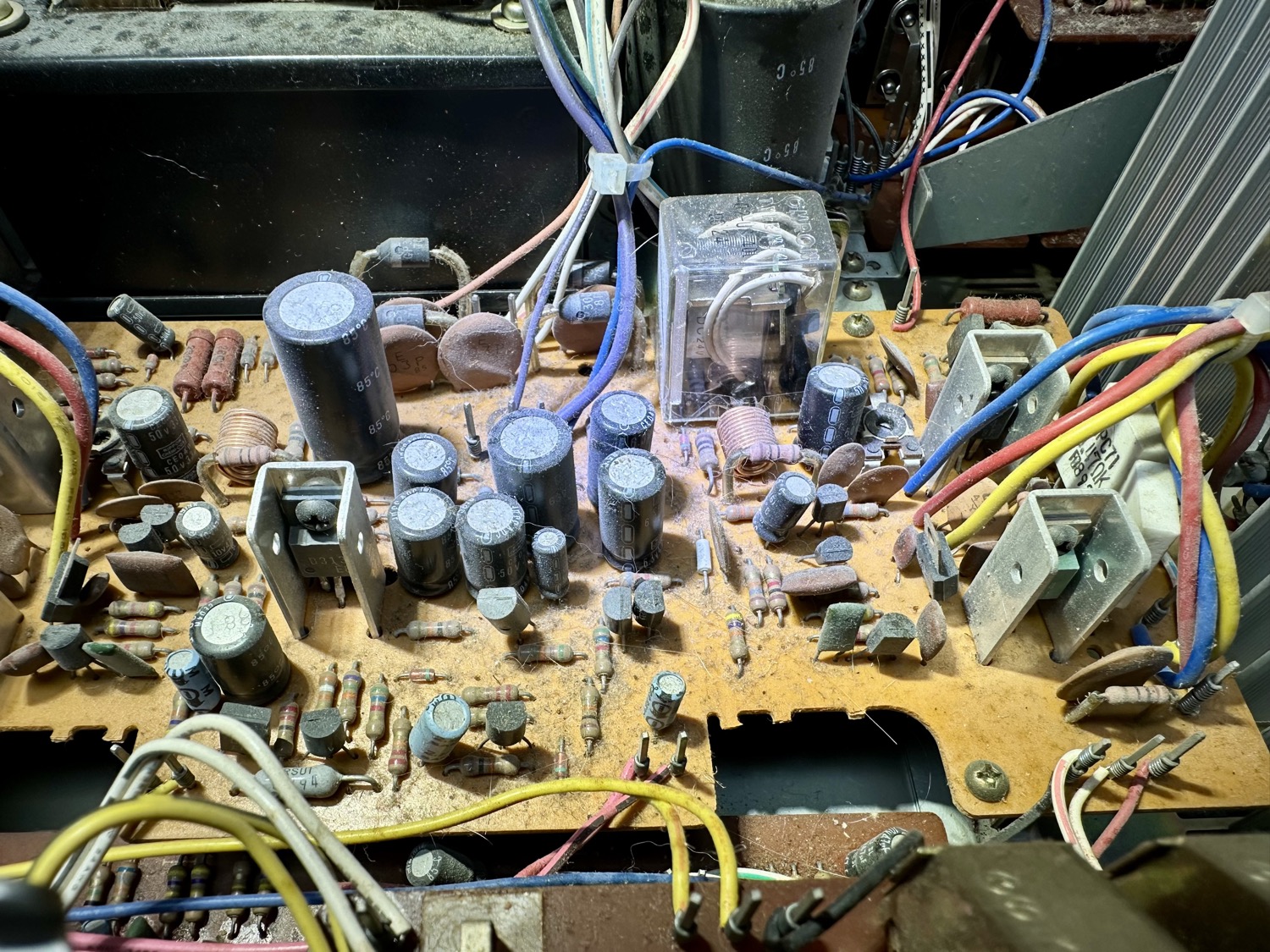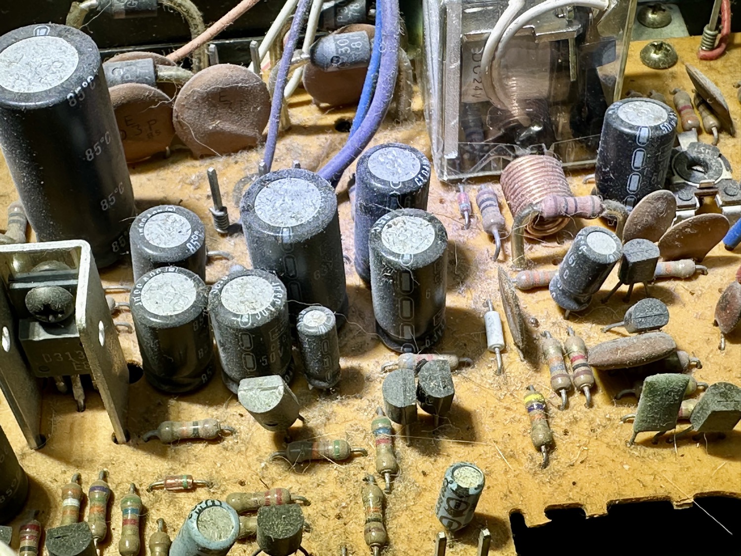 - Aansturing lijkt het probleem. De condensator C20 van 220uF uitgesoldeerd en nagemeten. Na een kleine 50 jaar meet deze nog perfect in capaciteit en ESR.