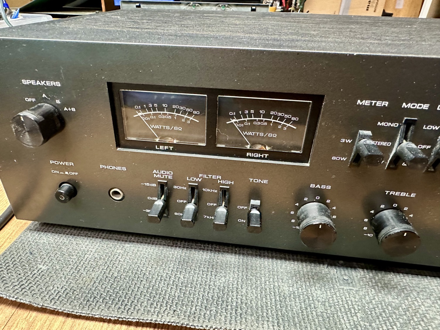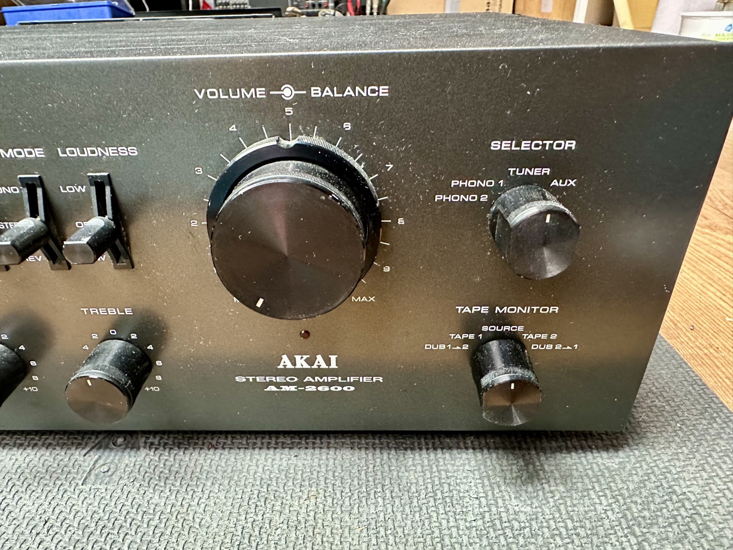 Gelukkig is deze mooie zwarte AM-2600 versterker weer werkende en kan hij weer in gebruijk genomen worden.