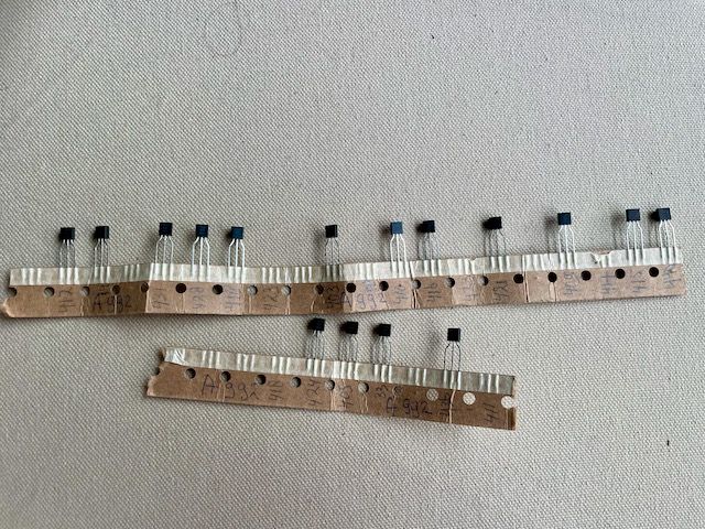 - Match twee KSA992 transistoren door ze op hun hFE waarde te selecteren. Ik heb ruim 20 stuks KSA 992 transistoren nagemeten en op basis van hun hFE meetwaarde twee passende paartjes kunnen maken.
