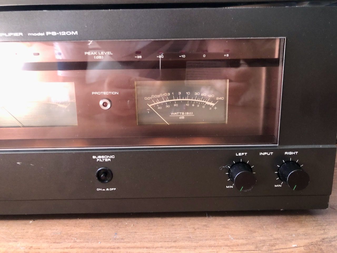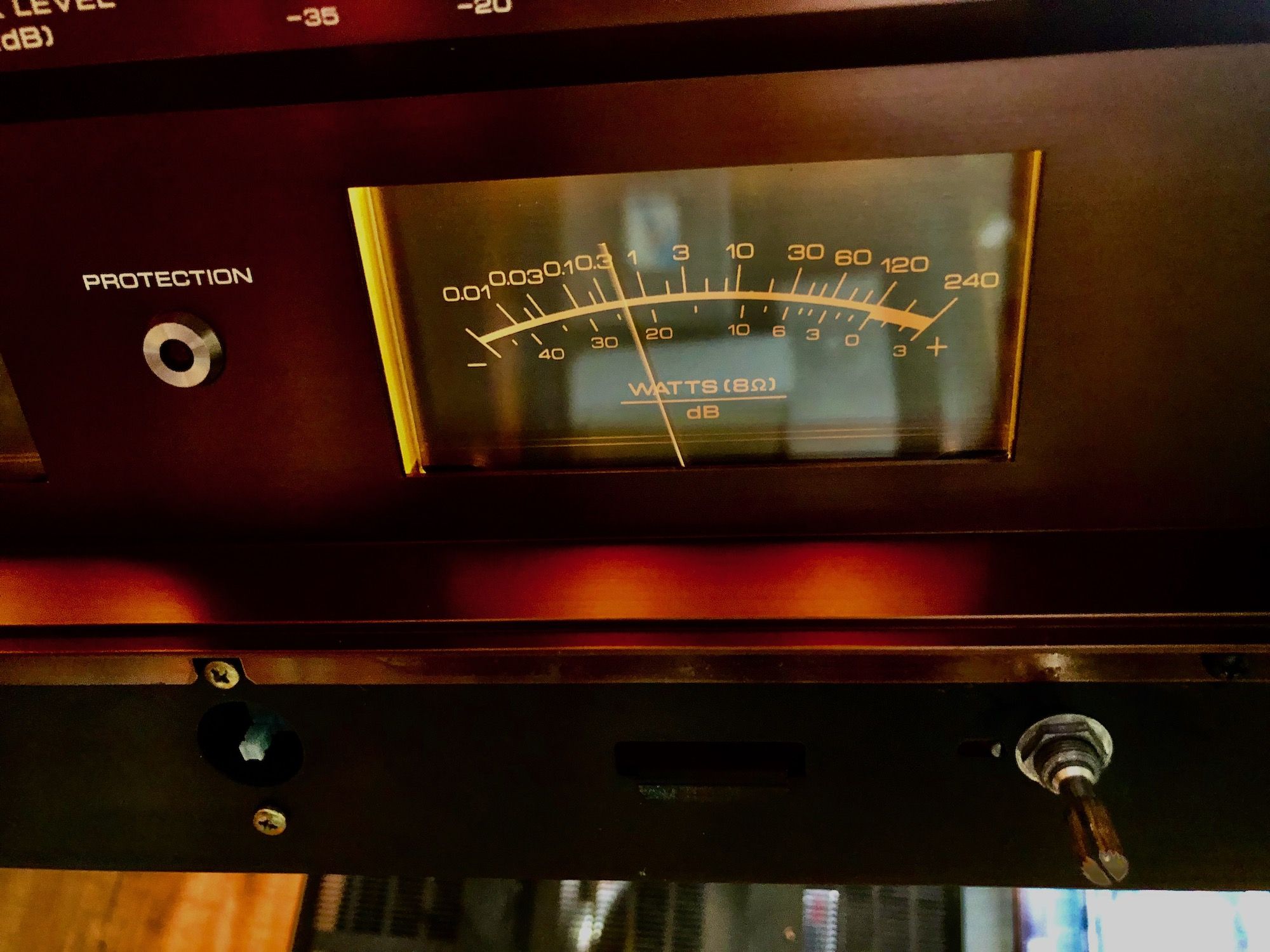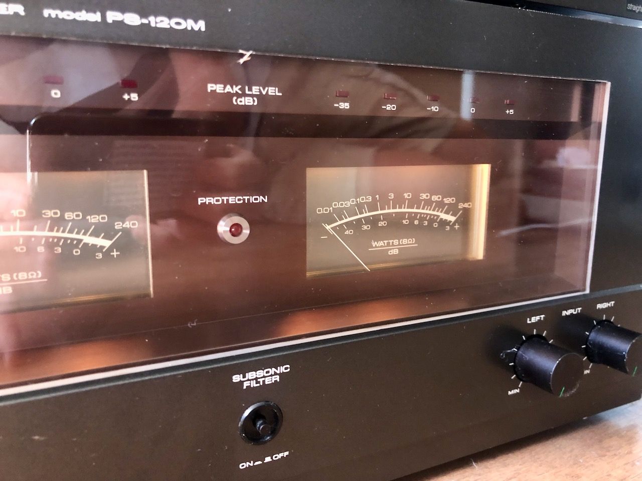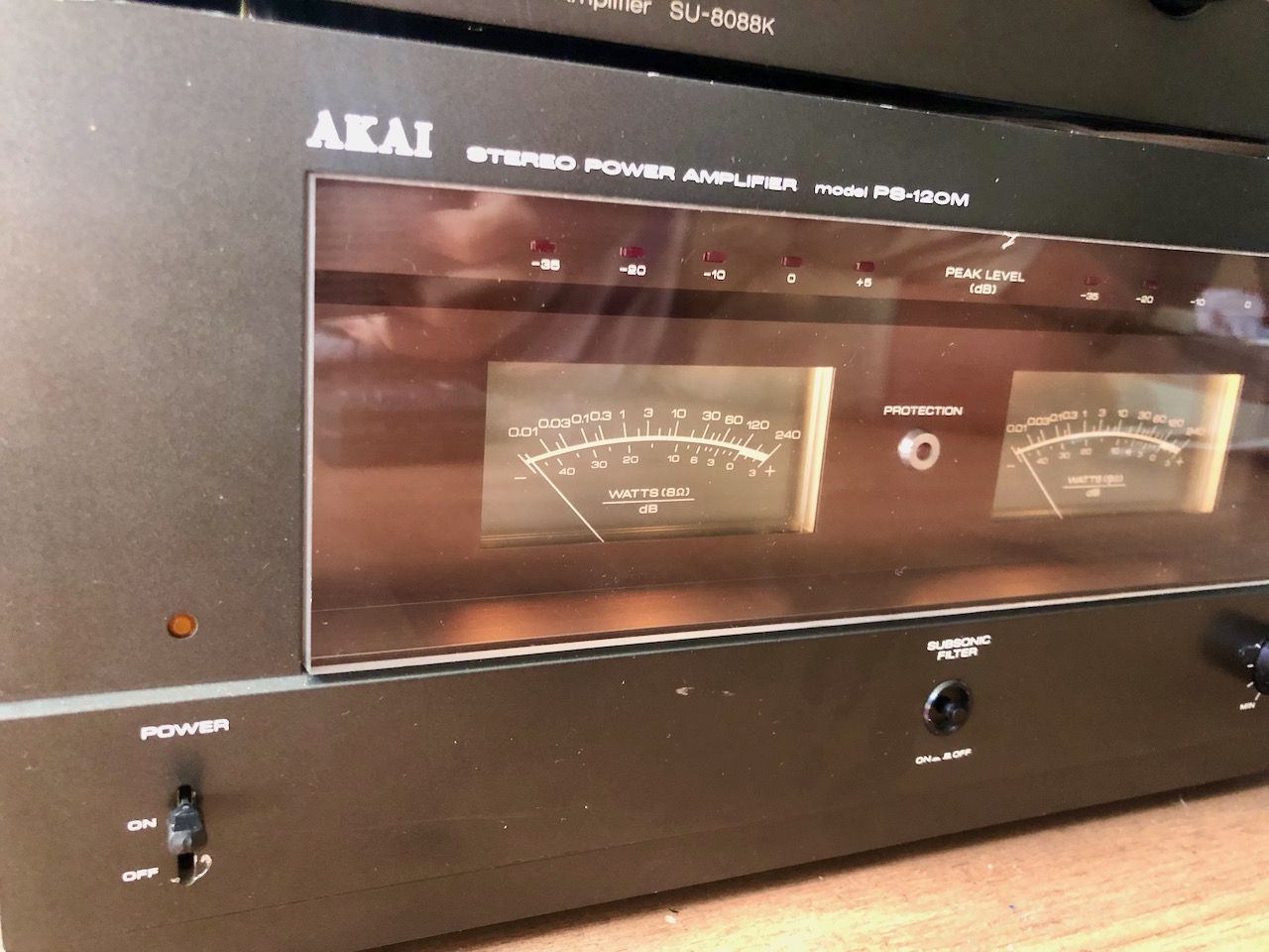 Deze Akai PS-120m is een icoon van een versterker. De twee grote VUmeters en de 5 VU l-ed's geven hem een imposant uiterlijk. Met een gewicht van 30kg is het oprecht een zware jongen te noemen.