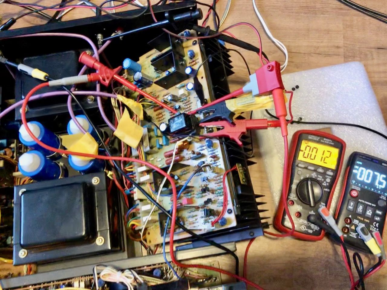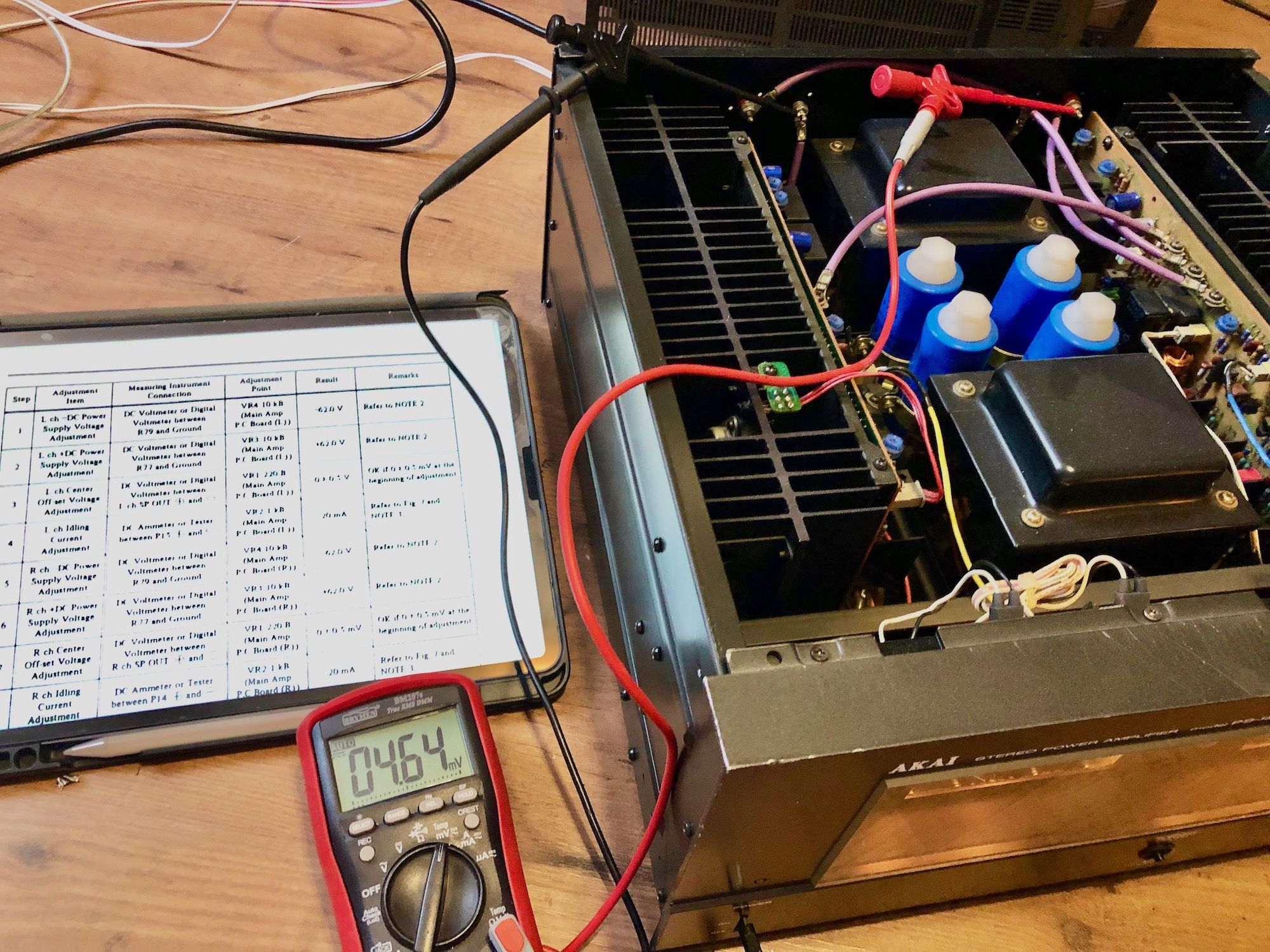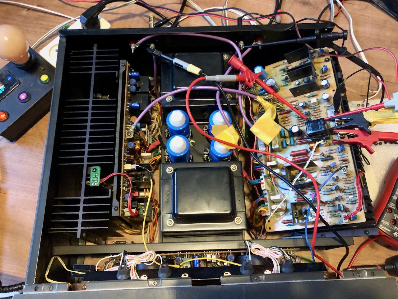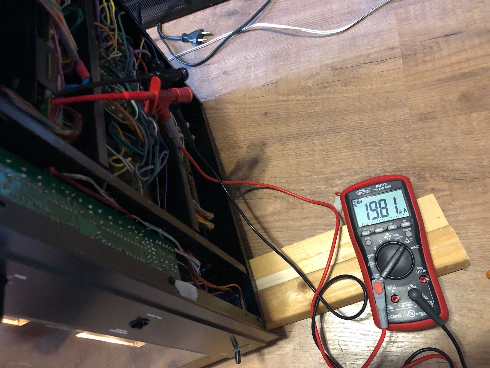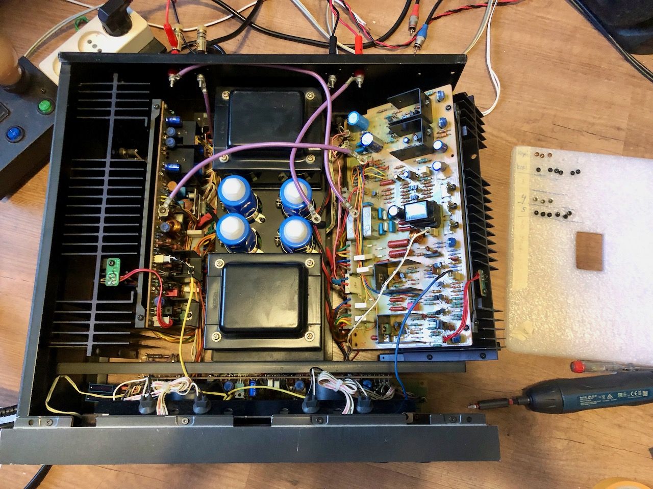 Na de reparatie en het schoonmaken is de versterker afgeregeld.