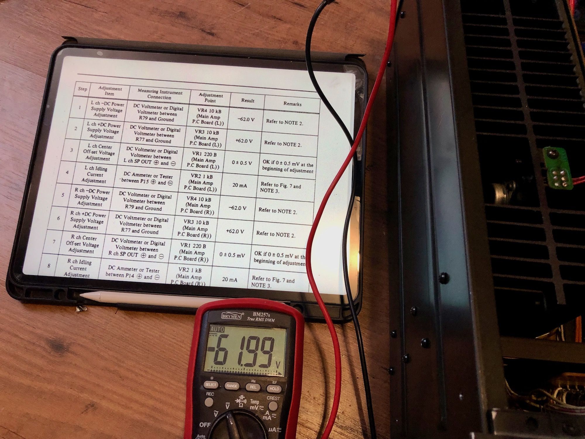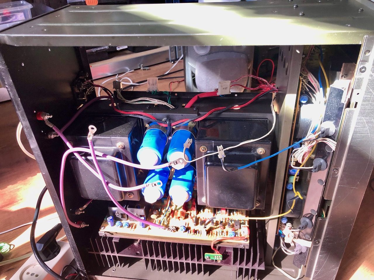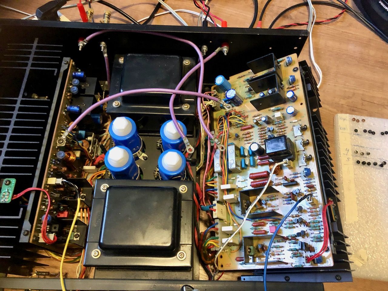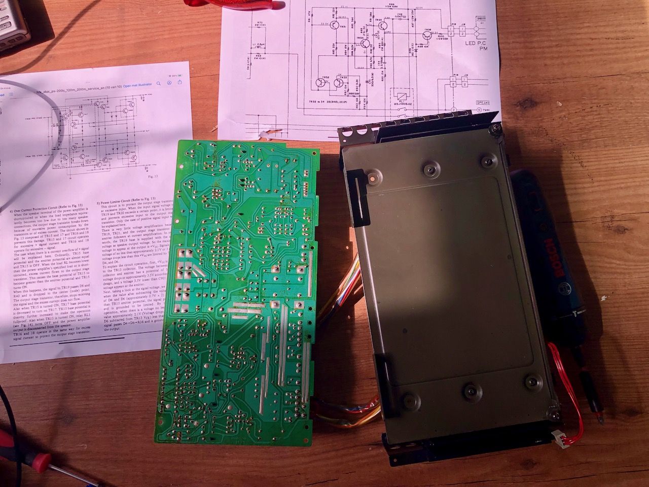 Na de reparatie en het schoonmaken is de versterker afgeregeld.
