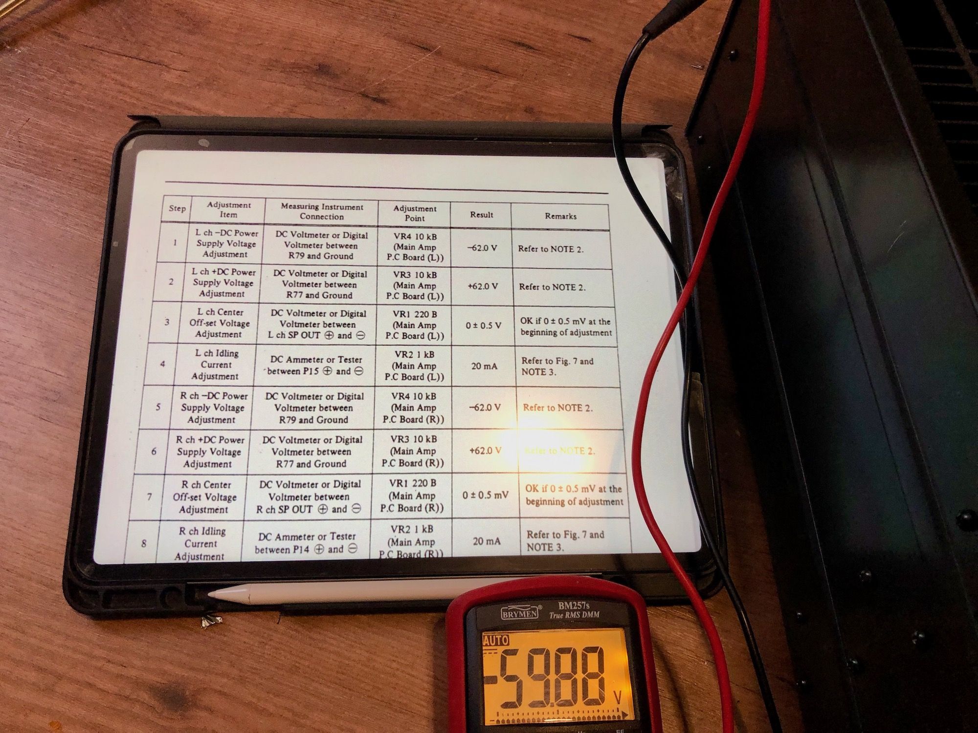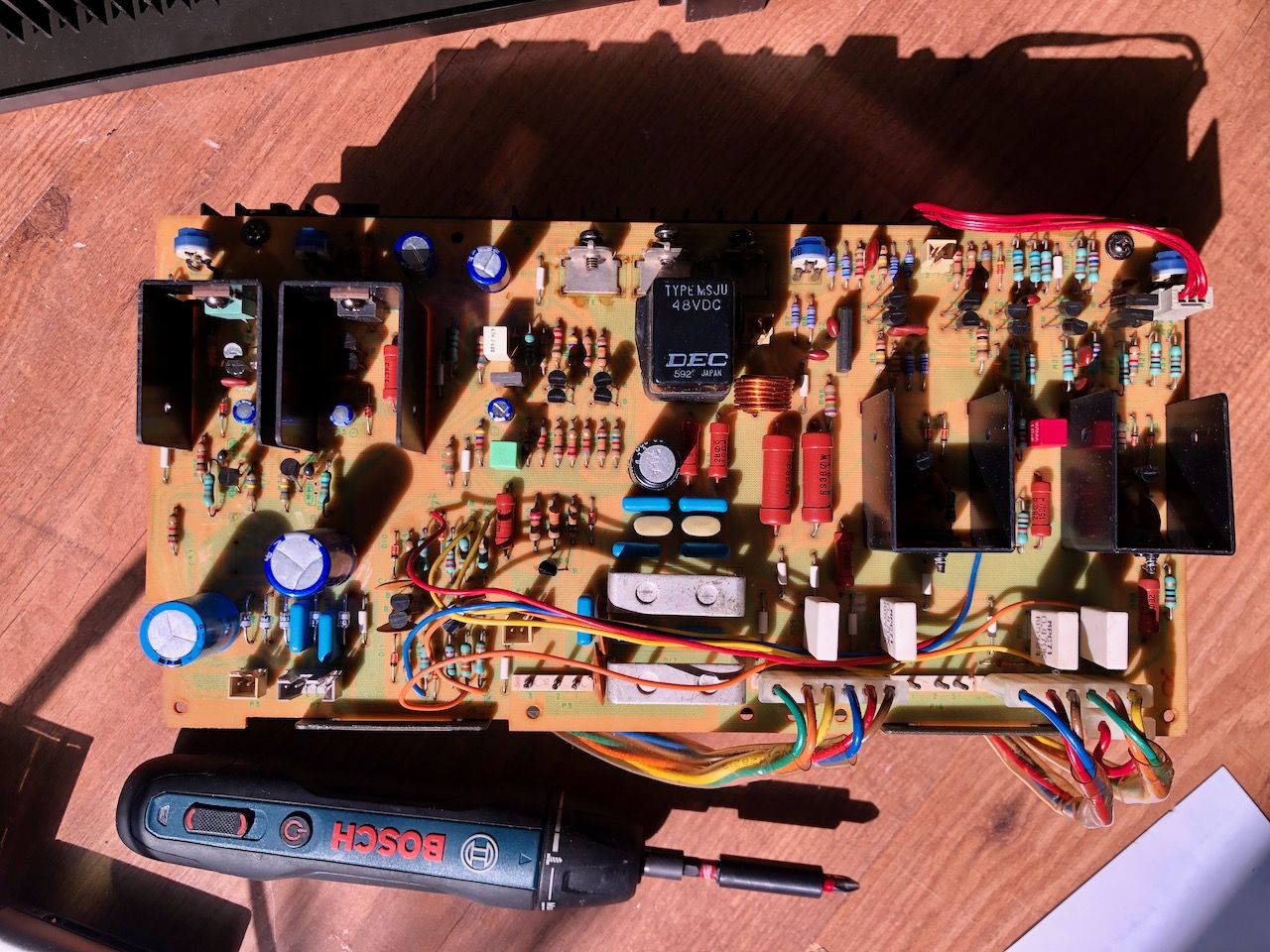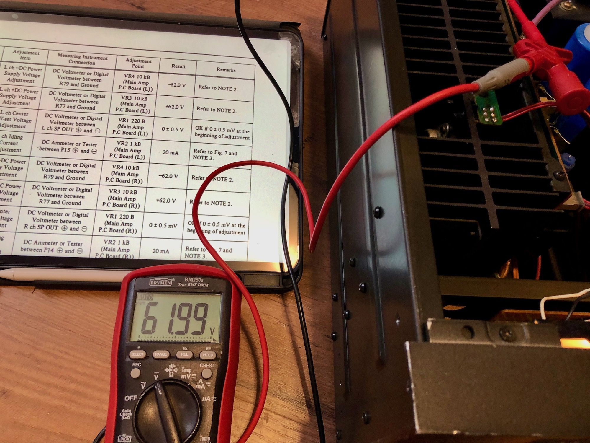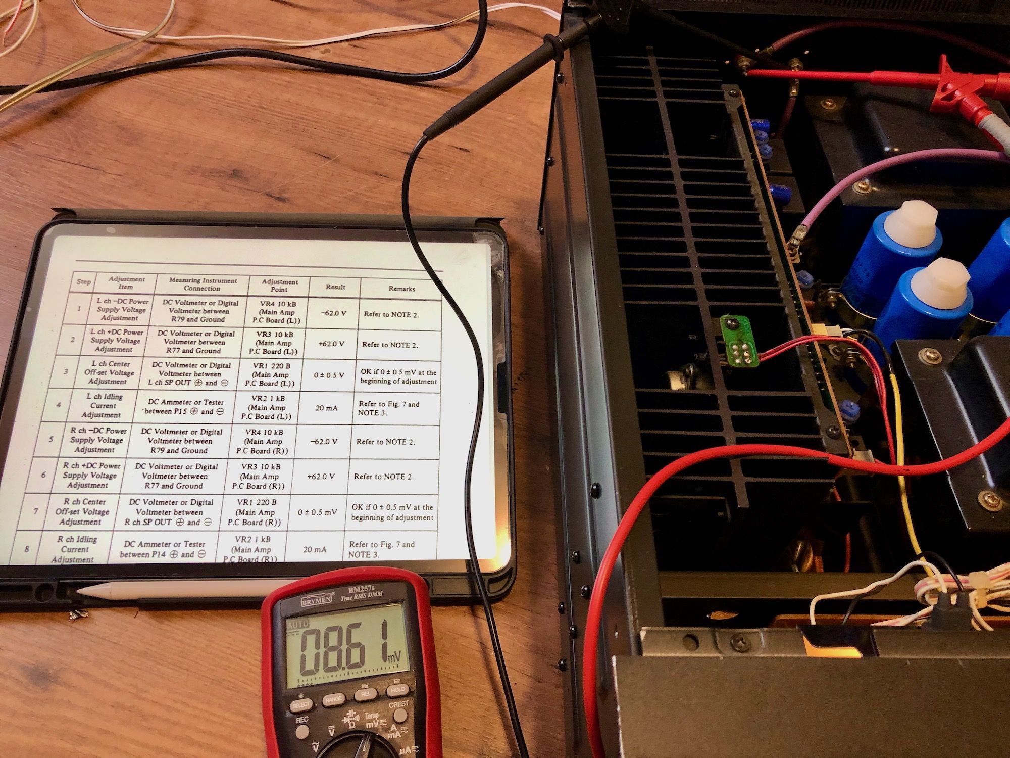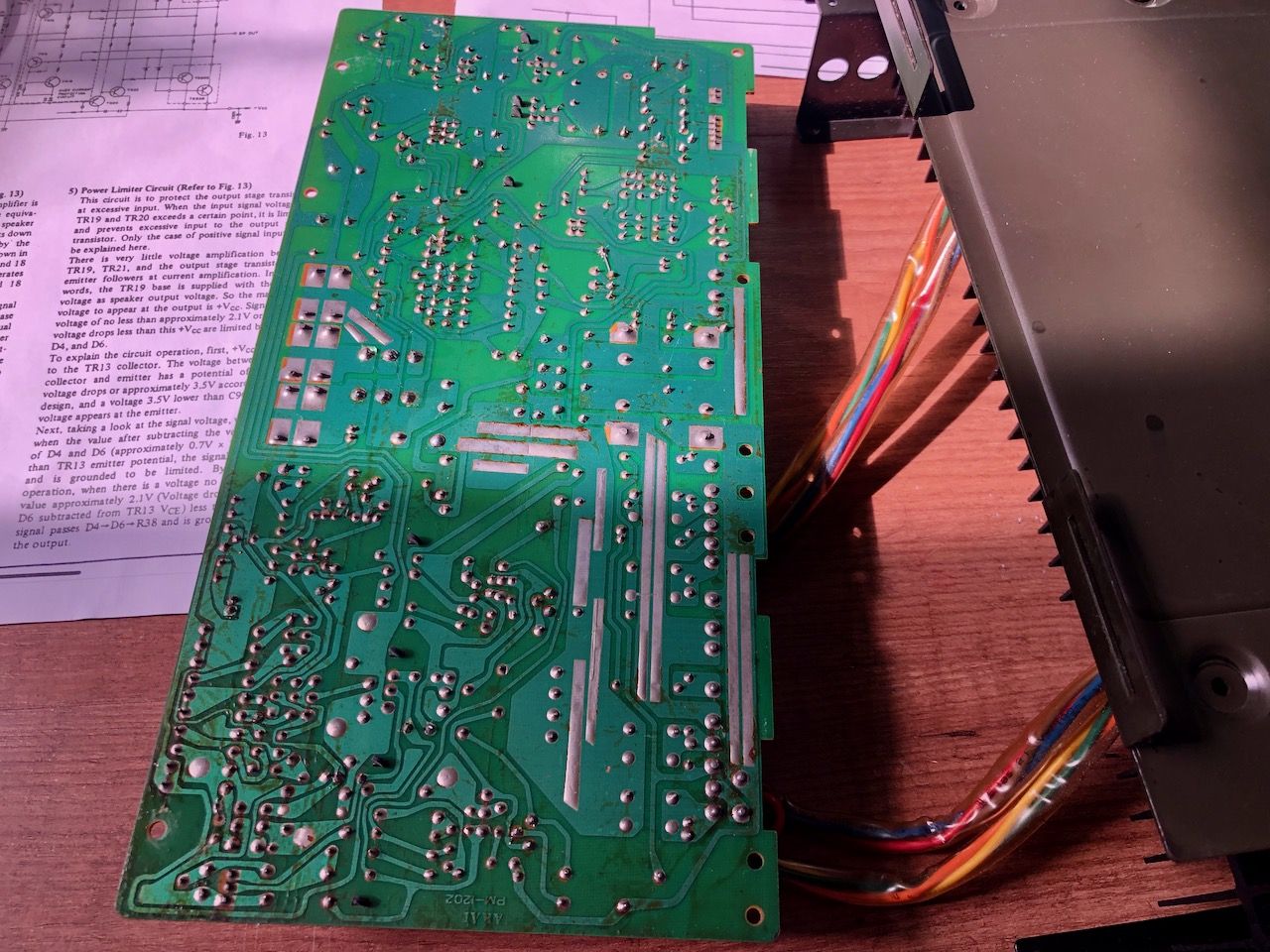Na de reparatie en het schoonmaken is de versterker afgeregeld.