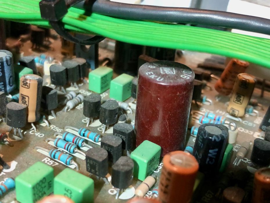 De recap was meer werk dan verwacht. De pootjes van de condensatoren waren allemaal omgebogen vastgesoldeerd en daarna met een botte tang afgeknipt. Hierdoor bleef vrijwel iedere condensator vast zitten en moesten de pootjes zelfs na het verwijderen van de soldeertin nog worden afgeknipt. Vanwege het compacte ontwerp was het vinden van de juiste pootjes ook een hele opgave.
