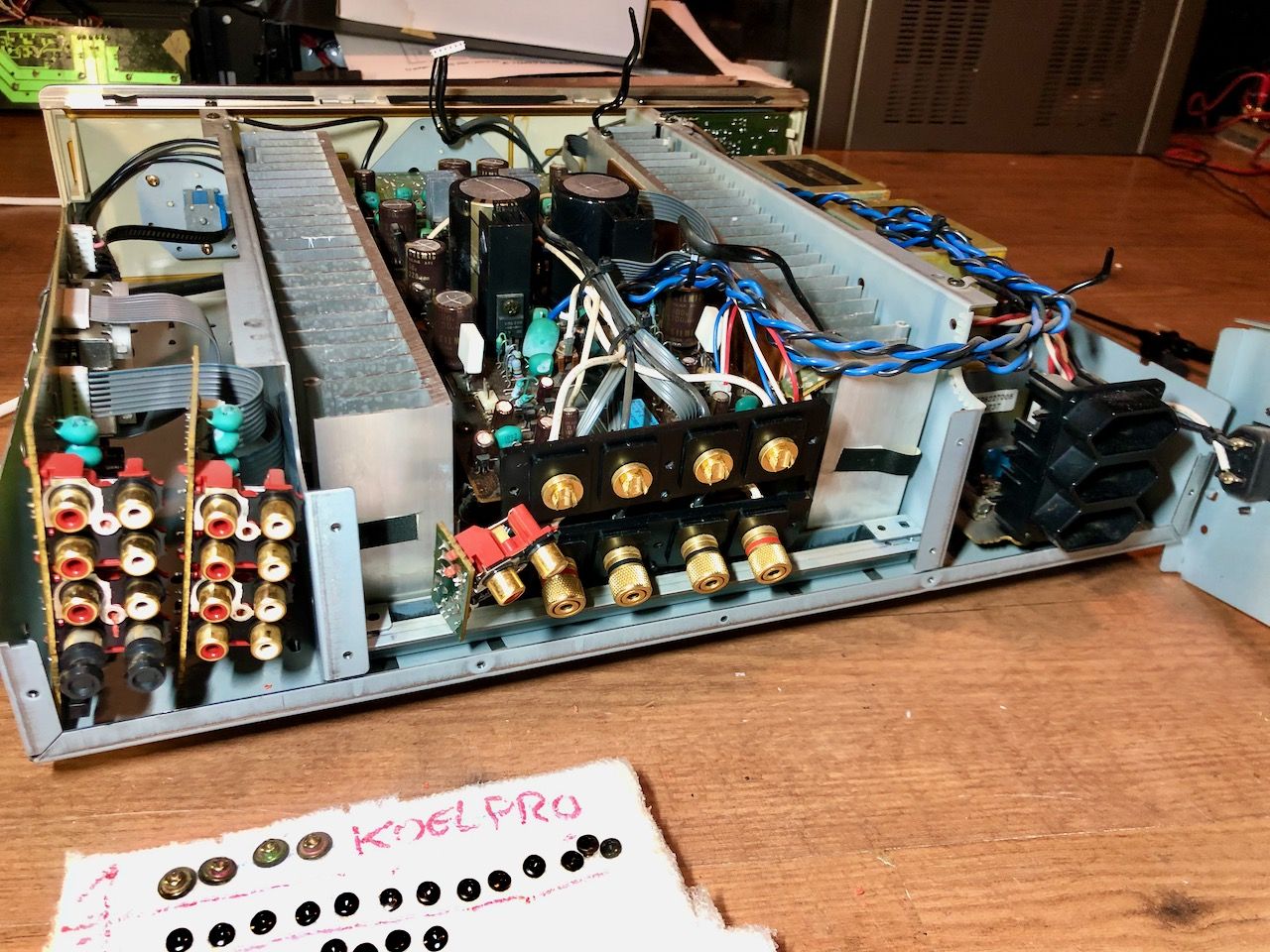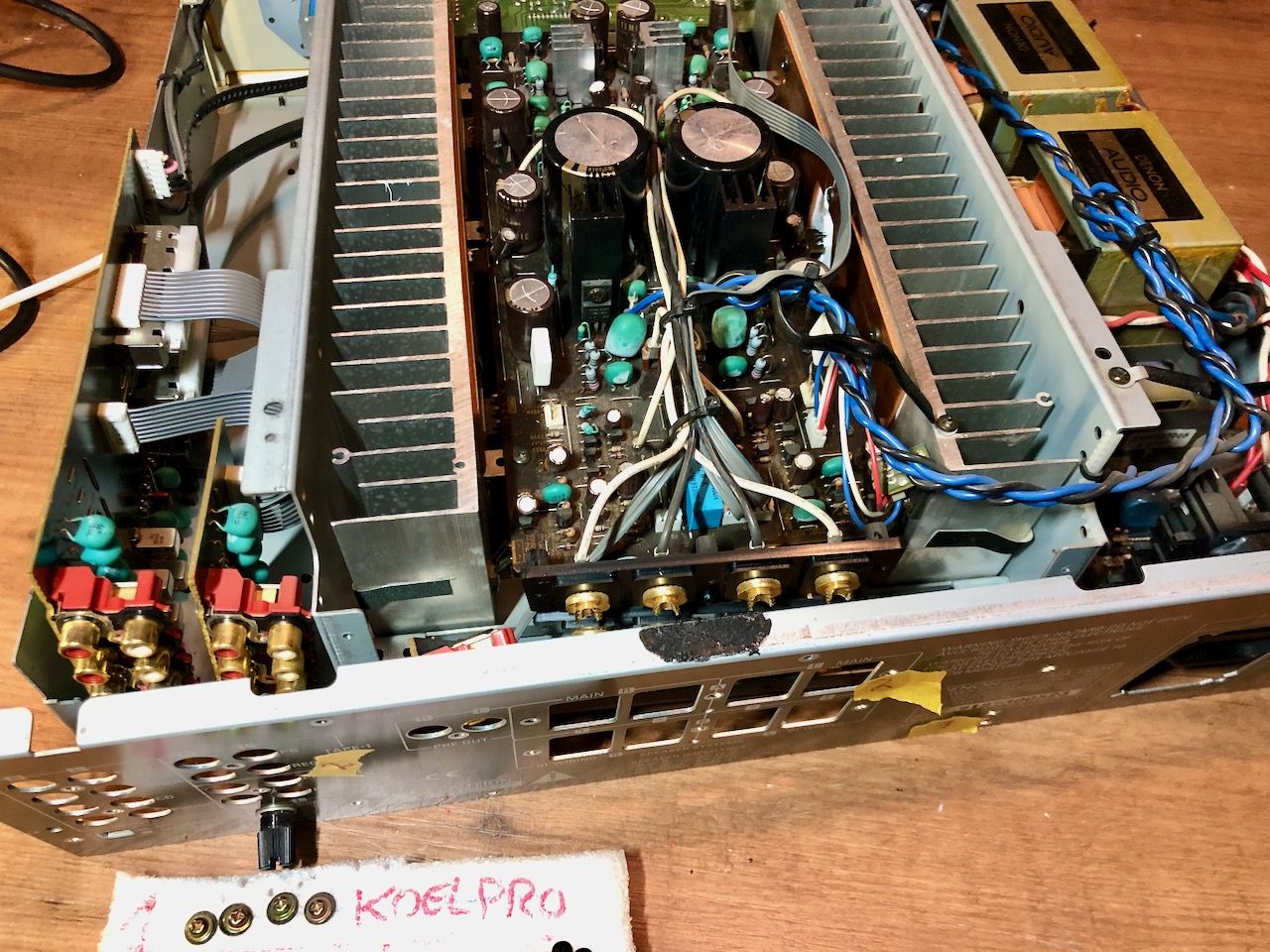 Deze specifieke versterker heeft mij de nodige frustratie gekost. Bij binnenkomst vroeg ik mij af wie deze versterker zo had toegetakeld. Hoe krijg je het voor elkaar om de luidspreker aansluitingen kapot te krijgen. Maar ook de nodige krassen en deuken geven aan dat een echte audioliefhebber ver te zoeken was.
