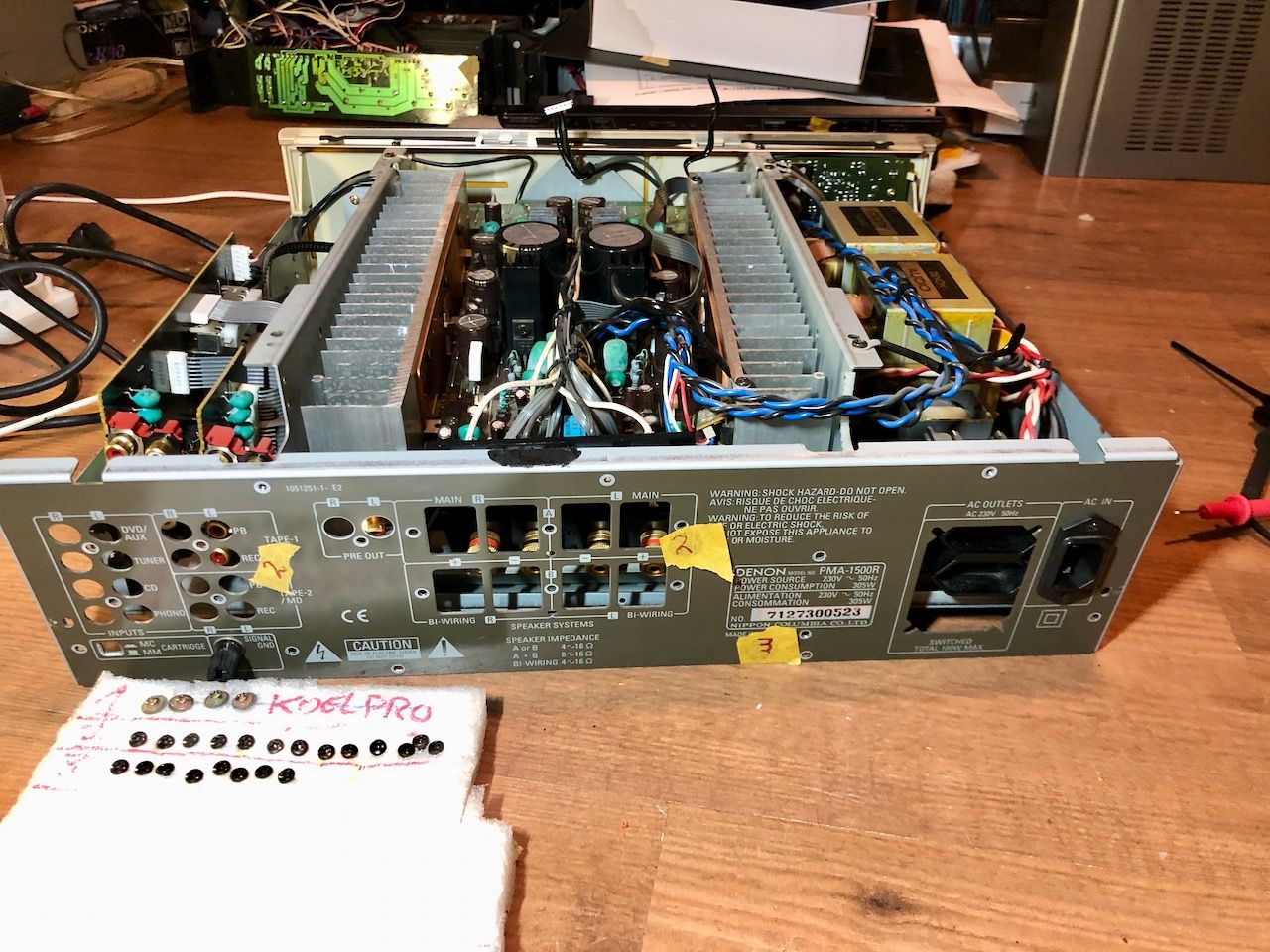 Even de eindtransistoren vernieuwen en hij is weer de oude bleek niet het geval. Er was zoveel aan de hand met deze versterker dat ik mij afvraag of ze niet gewoon de luidsprekeraansluitingen om het lichtnet hebben aangesloten. Transistoren, beveiliging, weerstanden, vrijwel alles had wel een probleem. Na ruim één jaar aanmodderen had ik de knoop doorgehakt. Deze Denon heeft van mij gewonnen en moest dan maar naar een ander toe. Maar wie wil je opzadelen met zoveel problemen?