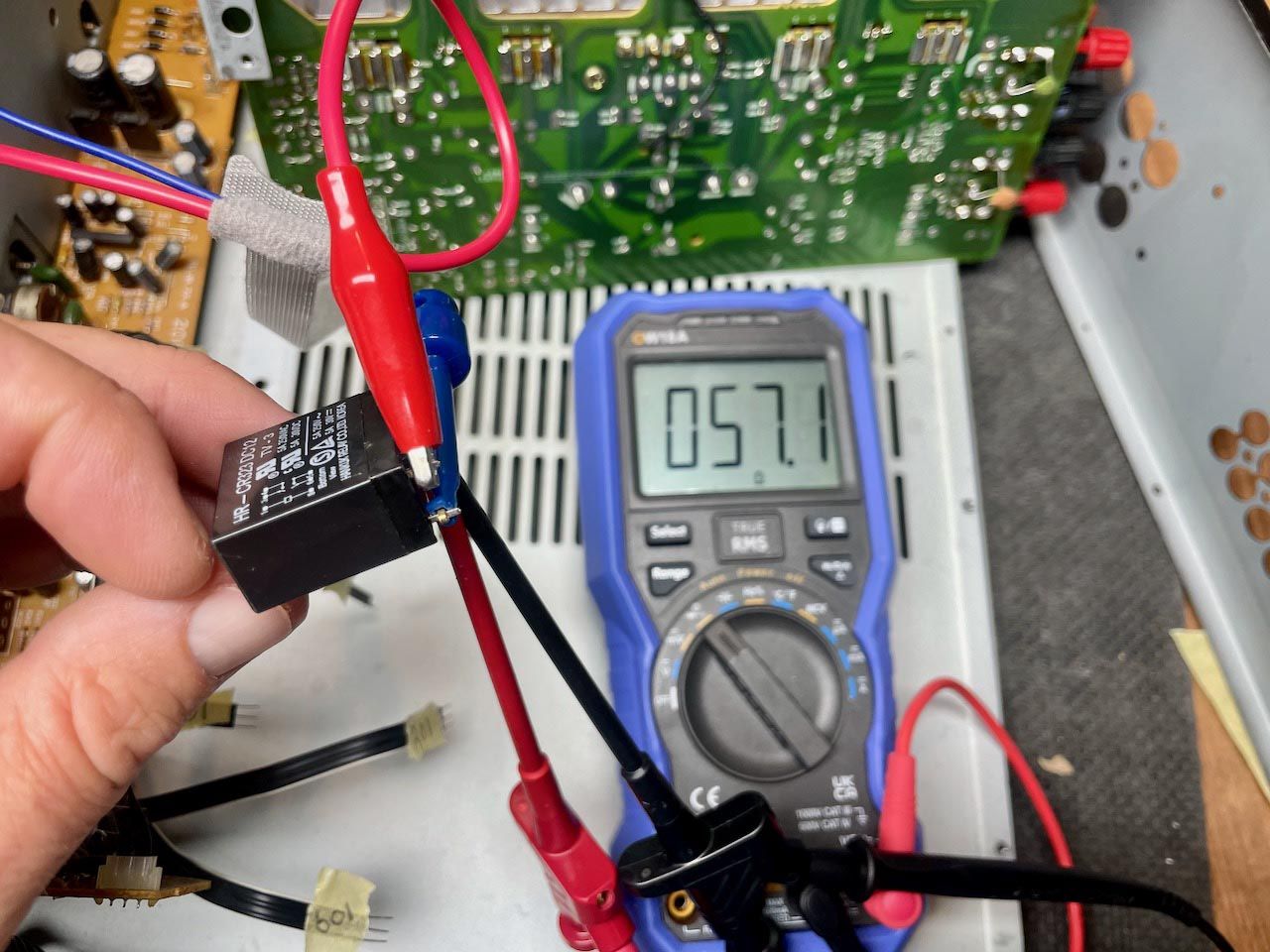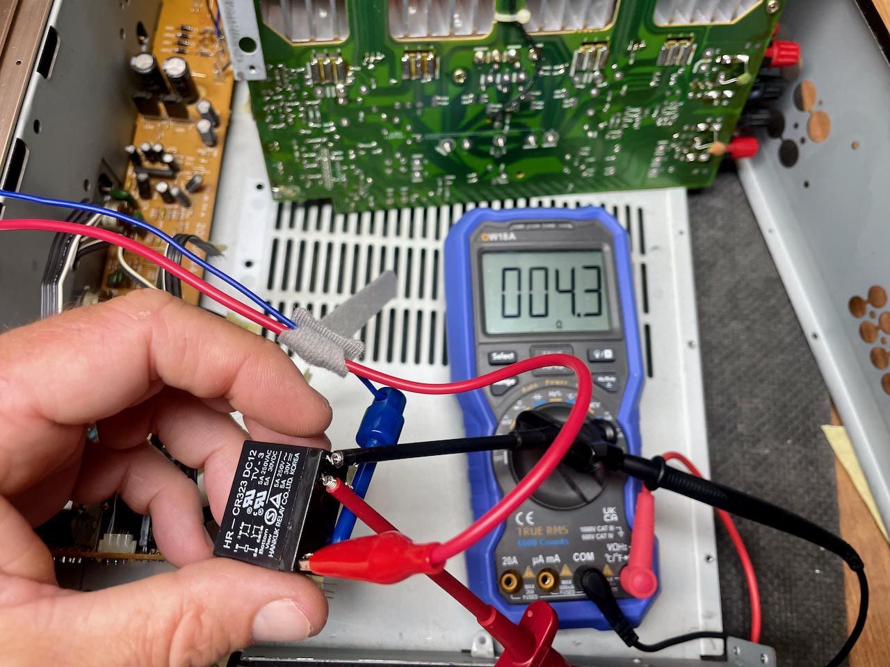 - 12V relais voorzien van spanning en helaas was de overgangsweerstand van het linker kanaal rond de 60 ohm.