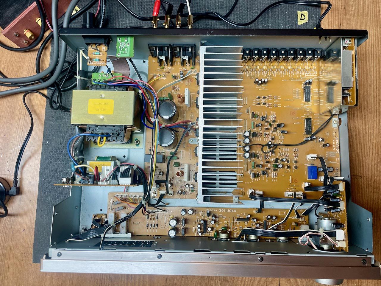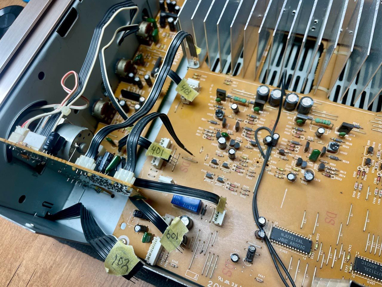 - Alle stekkertjes van tussen de van de eindversterker gelabeld en losgehaald.