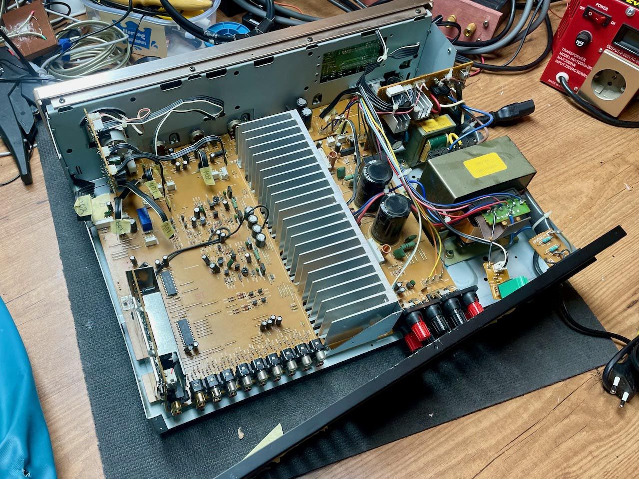 - Gehele versterker moet uit elkaar om het luidspreker relais te kunnen vervangen.