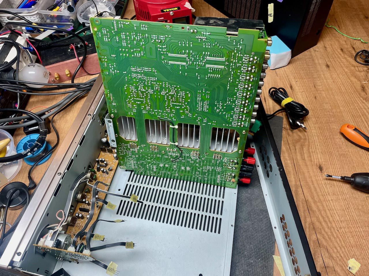 - De eindversterker printplaat incl. koelblok losgemaakt.