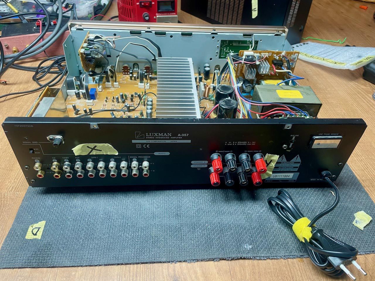 - Helaas kon ik geen service manual vinden van deze Luxman A-357 versterker dus alles moet op basis van kennis en ervaring.