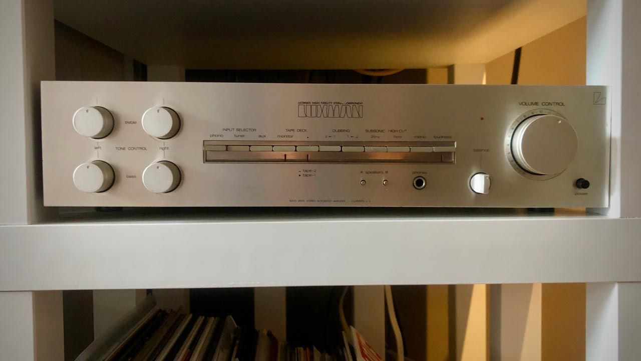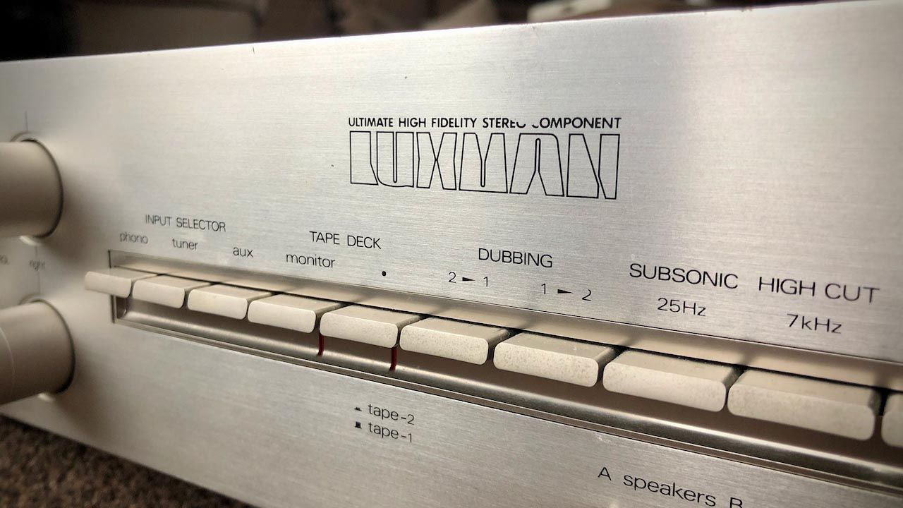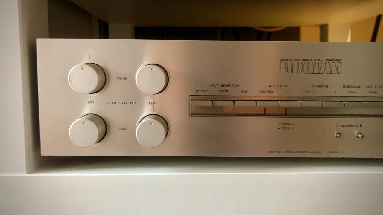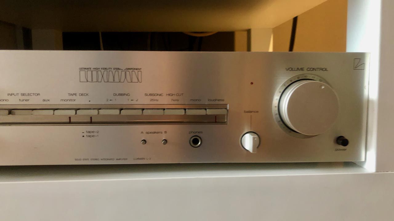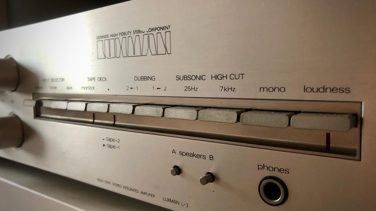 Mijn eerste kennismaking met de Luxman L-3 was een feest van verwondering. Een versterker uit 1978 met een werkzaam leven bij het conservatorium van Amsterdam. Hoe is het mogelijk dat deze versterker er nog zo geweldig goed uit ziet. De schakelaars klikken zoals een schakelaar hoort te klikken. De potmeters draaien zoals potmeters horen te draaien. Wat een kwaliteit. De cinch aansluitingen bevinden zich niet achterop de machine maar heel eigenwijs aan de onderkant. De rede? Ik kan wat zaken bedenken. Zo is de signaalweg van ingang naar voorversterker zo’n 20cm korter dan bij een achteraansluiting. Misschien is deze opstelling minder gevoelig voor stof? In de praktijk is het aansluiten van de kabels wat lastiger, dus ergonomisch is dit geen vooruitgang.