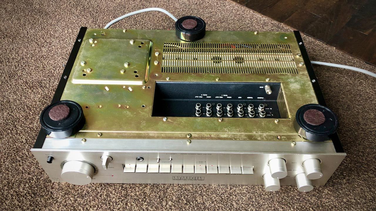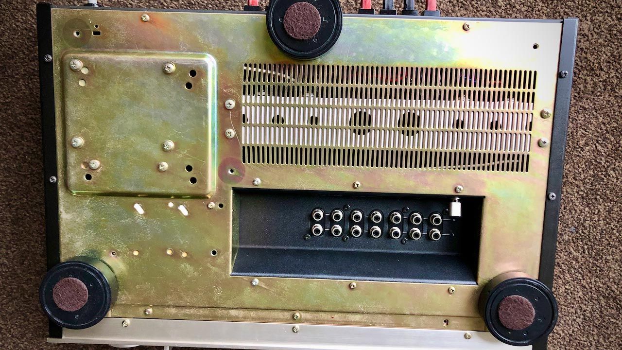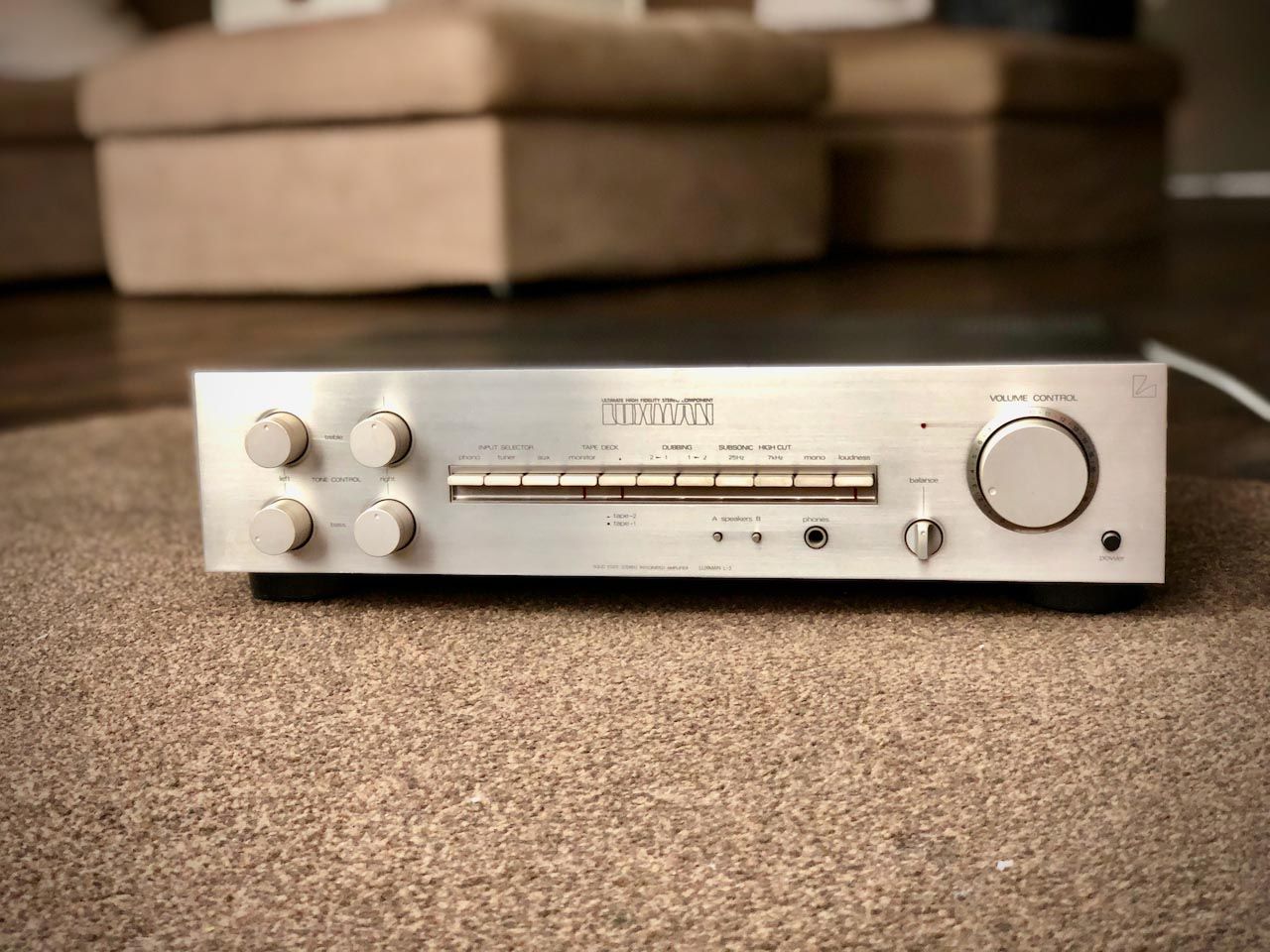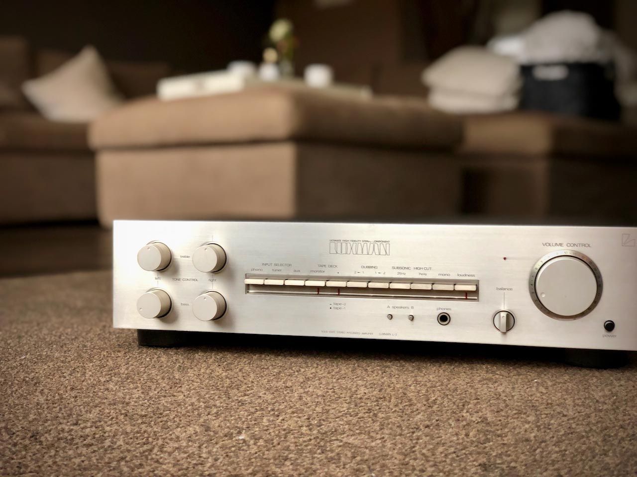 Mijn eerste kennismaking met de Luxman L-3 was een feest van verwondering. Een versterker uit 1978 met een werkzaam leven bij het conservatorium van Amsterdam. Hoe is het mogelijk dat deze versterker er nog zo geweldig goed uit ziet. De schakelaars klikken zoals een schakelaar hoort te klikken. De potmeters draaien zoals potmeters horen te draaien. Wat een kwaliteit. De cinch aansluitingen bevinden zich niet achterop de machine maar heel eigenwijs aan de onderkant. De rede? Ik kan wat zaken bedenken. Zo is de signaalweg van ingang naar voorversterker zo’n 20cm korter dan bij een achteraansluiting. Misschien is deze opstelling minder gevoelig voor stof? In de praktijk is het aansluiten van de kabels wat lastiger, dus ergonomisch is dit geen vooruitgang.