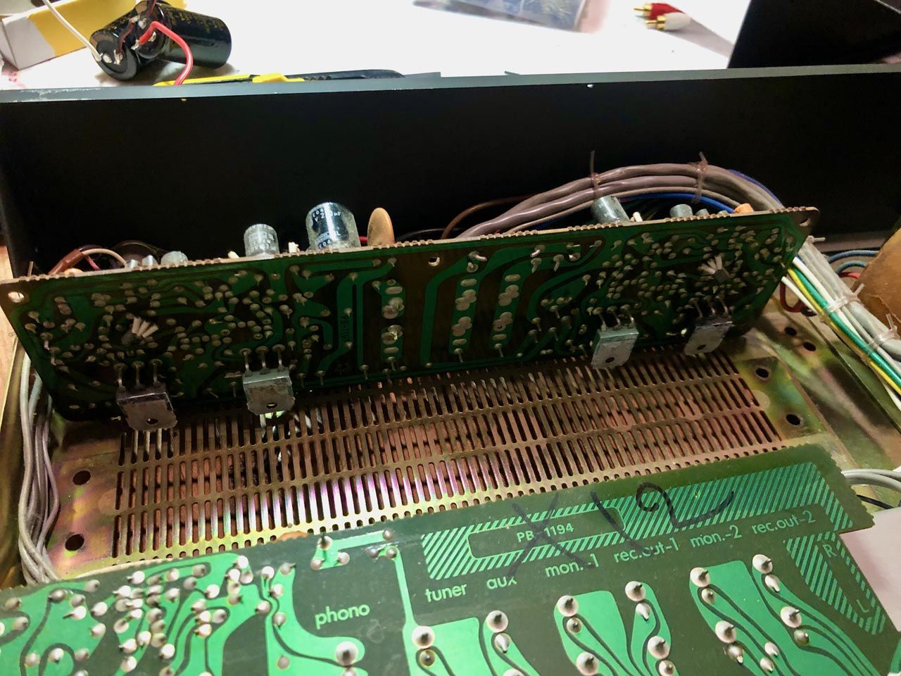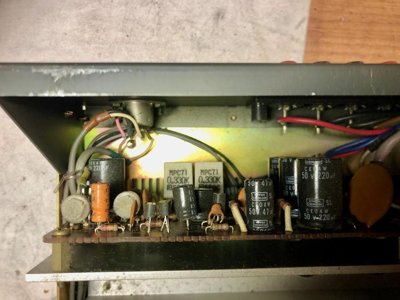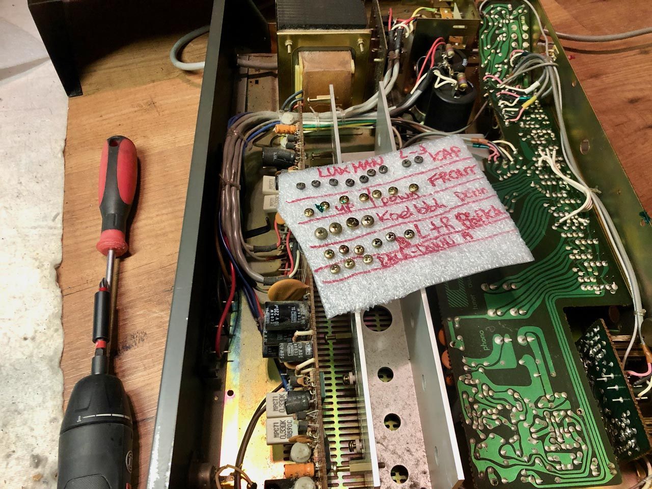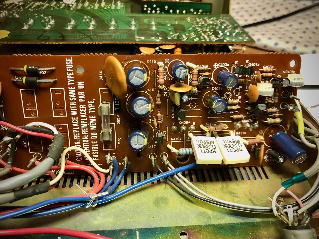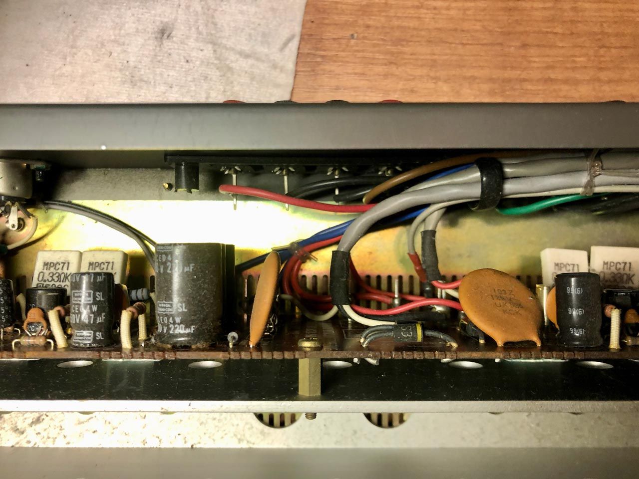 Op advies van Hans Hilberink ( https://www.hilberink.nl/codehans/luxman36.htm ) heb ik ook de voedings elco's vervangen voor grotere versies.