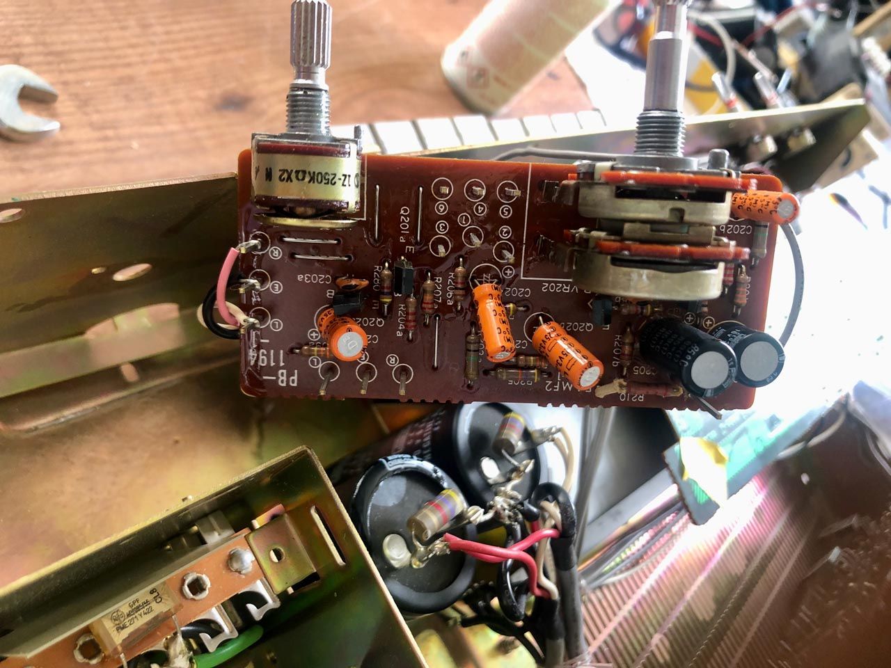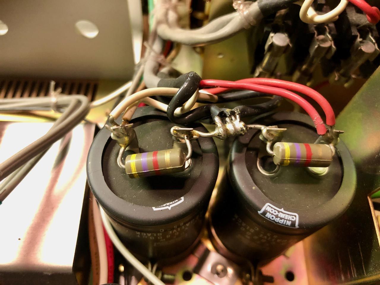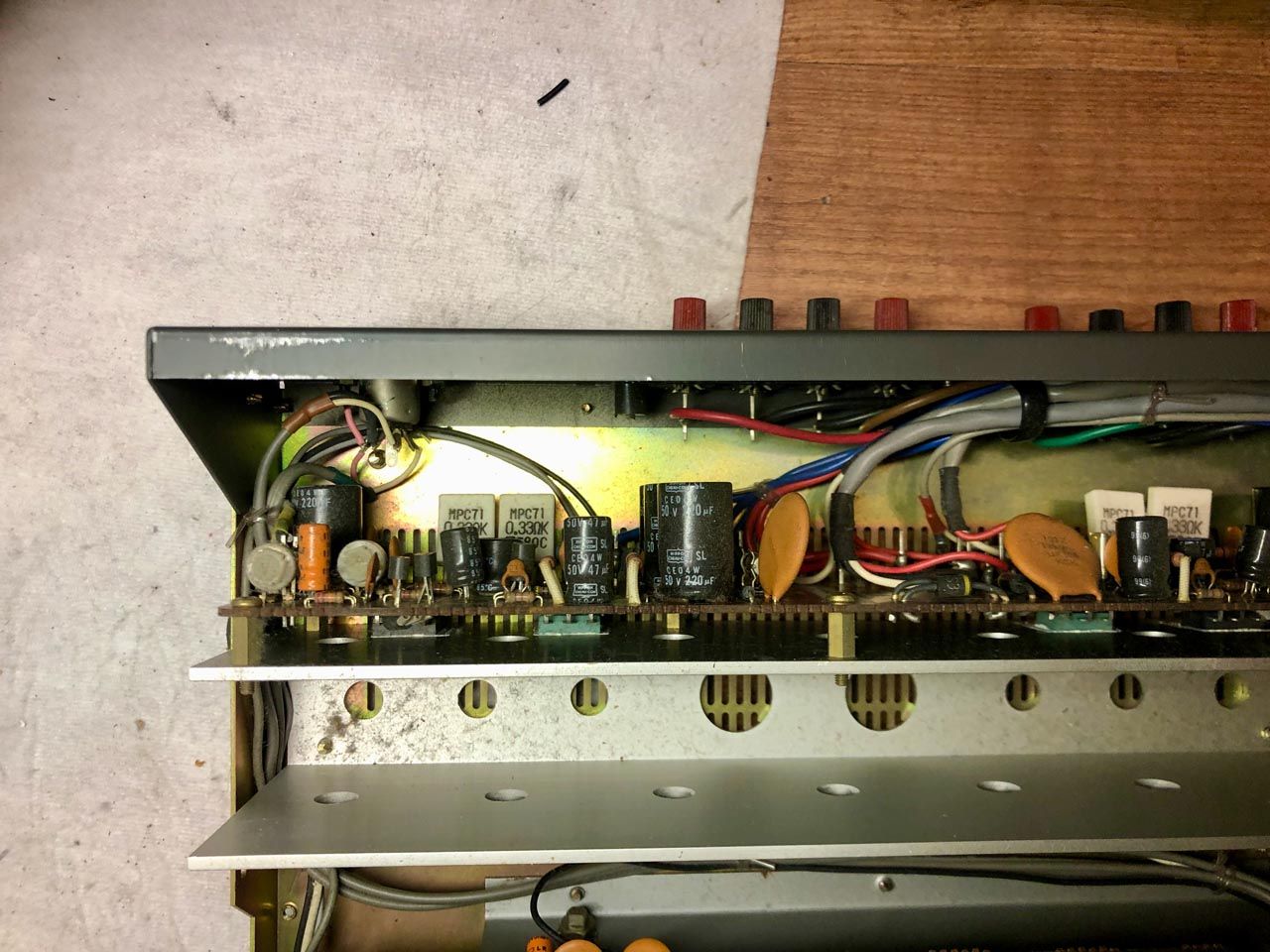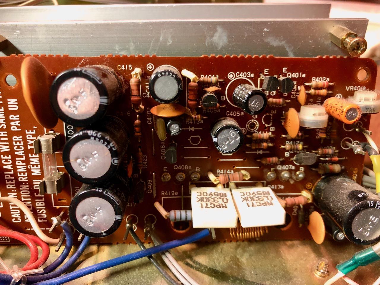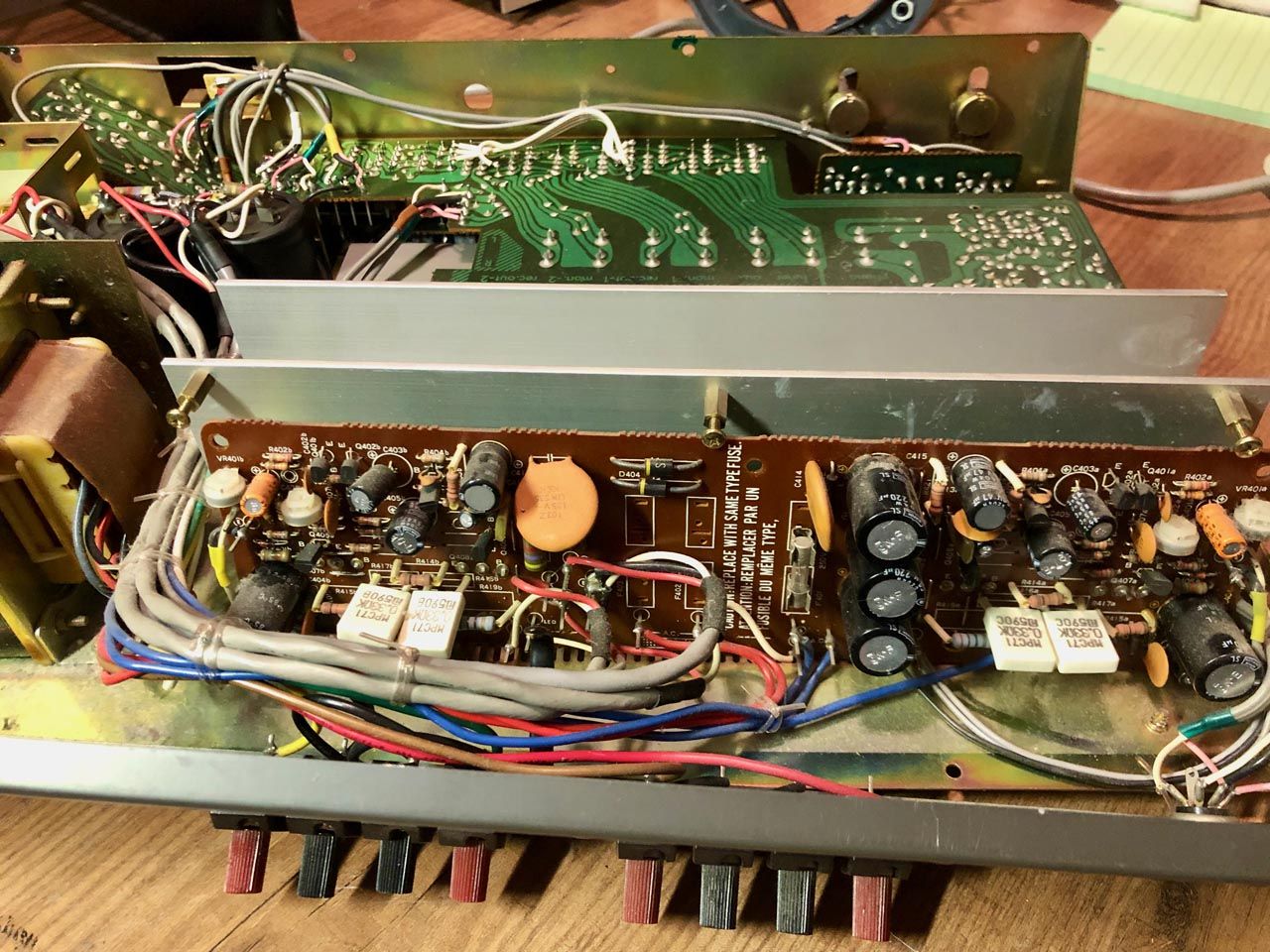 Op advies van Hans Hilberink ( https://www.hilberink.nl/codehans/luxman36.htm ) heb ik ook de voedings elco's vervangen voor grotere versies.
