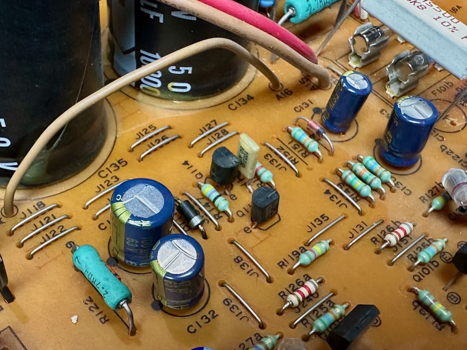 - Met Deoxit D5 de potmeters en schakelaars gereinigd.