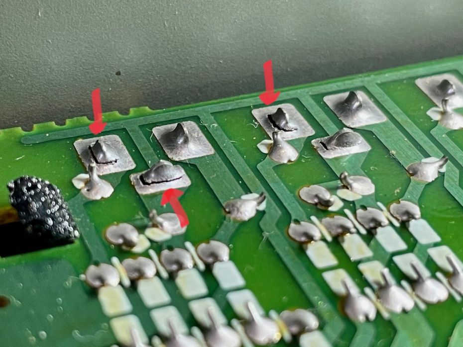 - Meerdere soldeerverbindingen zien er zwak uit.