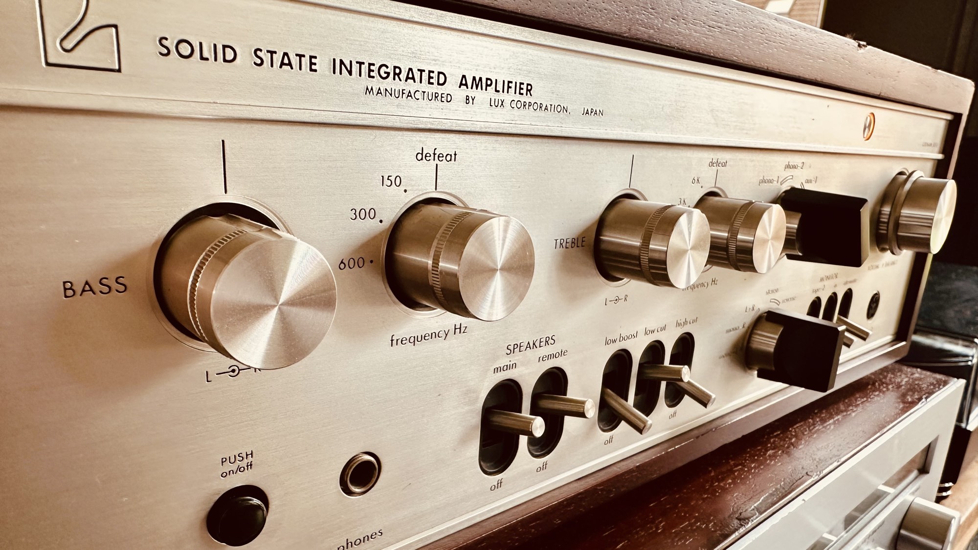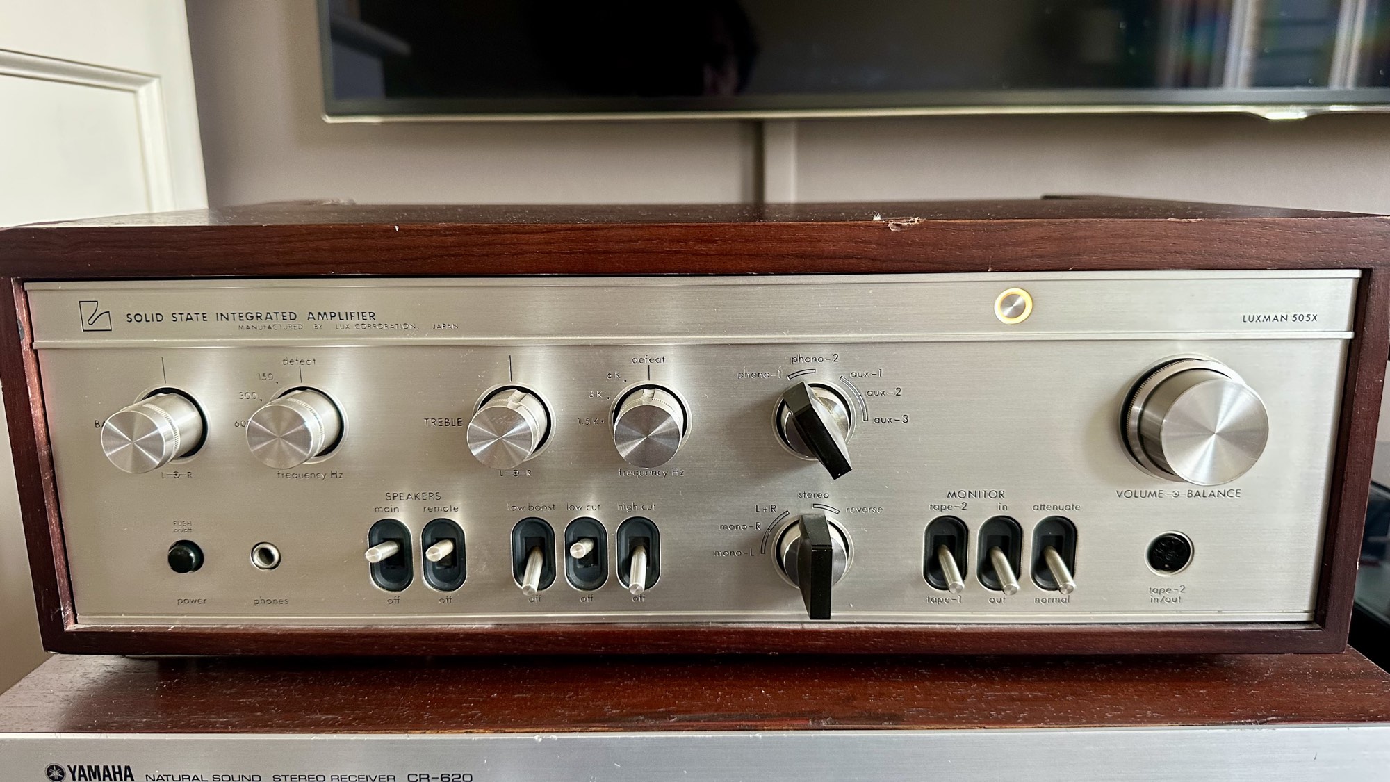 Luxman 505 X Versterker schakelaars en knoppen