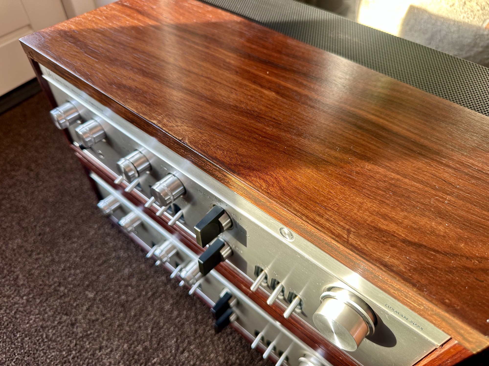 - Voor een versterker die richting de 60 jaar oud gaat ziet deze Luxman 505x er nog ongelooflijk goed uit.