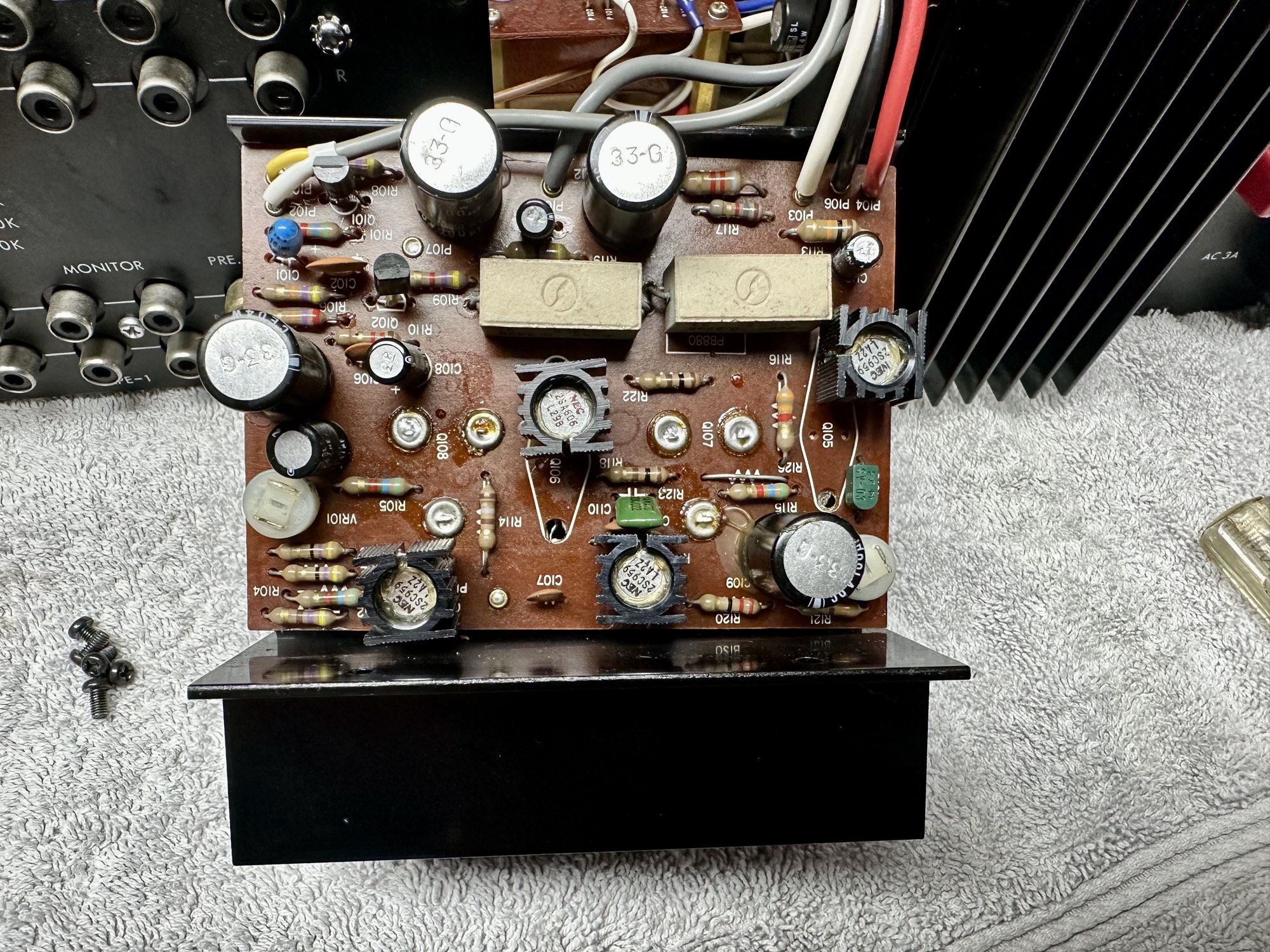 - Eindtransistoren voorzien van nieuwe mica isolatoren en nieuwe warmtegeleidende pasta.
