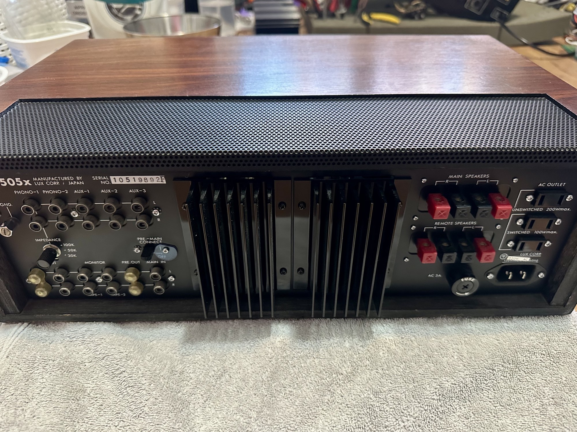 Luxman 505 X Versterker achterkant