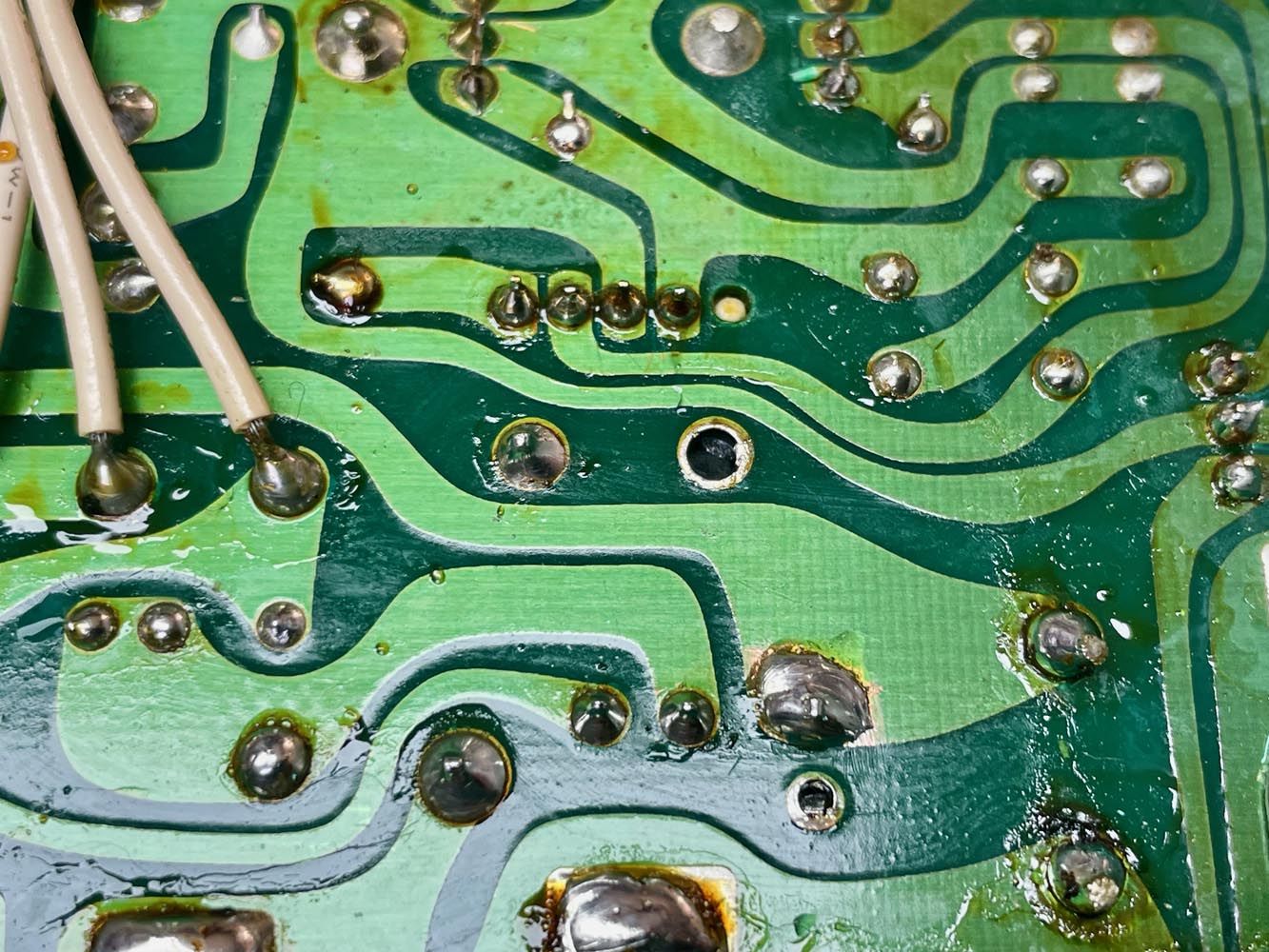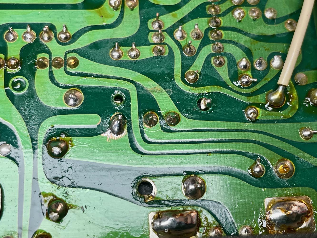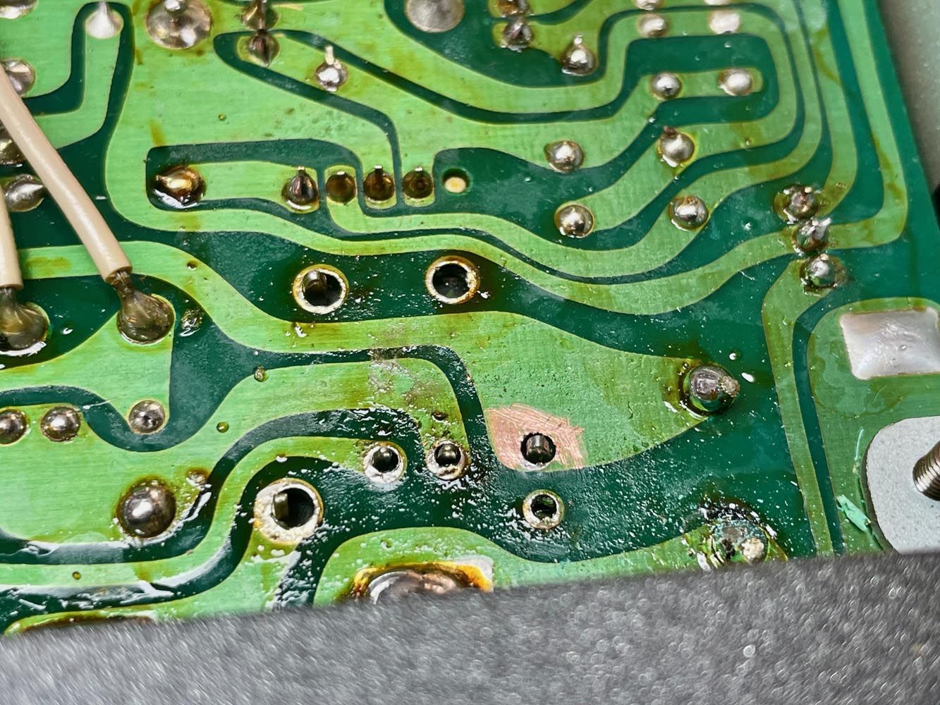 - De soldeerverbingen rondom de spanningsregulatoren opnieuw gesoldeerd. Deze regulatoren worden erg warm en daardoor is het tin wat bros geworden.