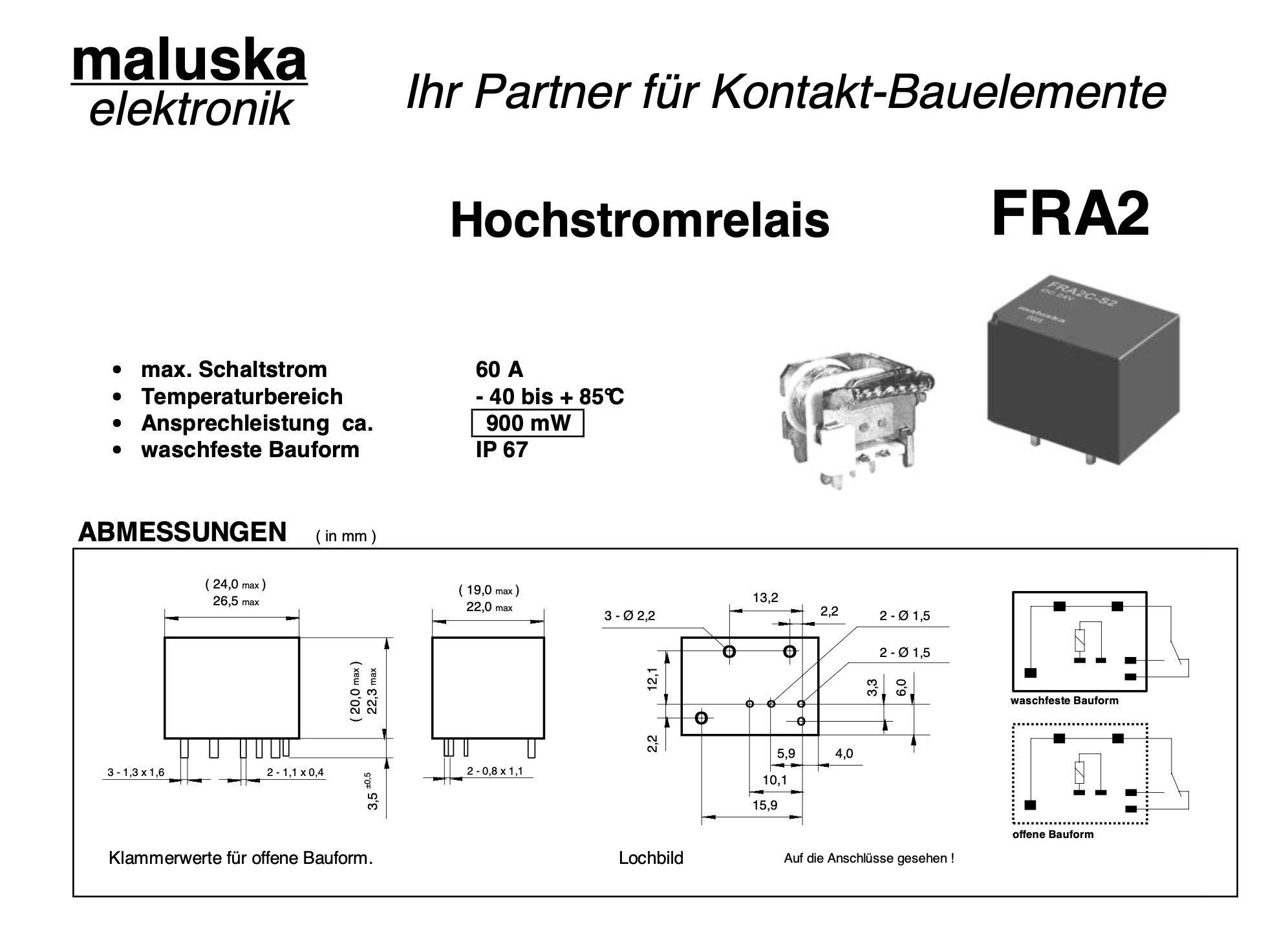 De nieuwe relais,FRA 2 C-S 2 24V, hebben een andere maatvoering van de pootjes dan het origineel.
