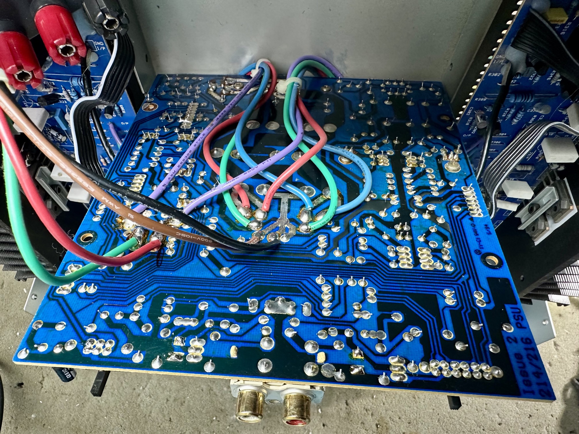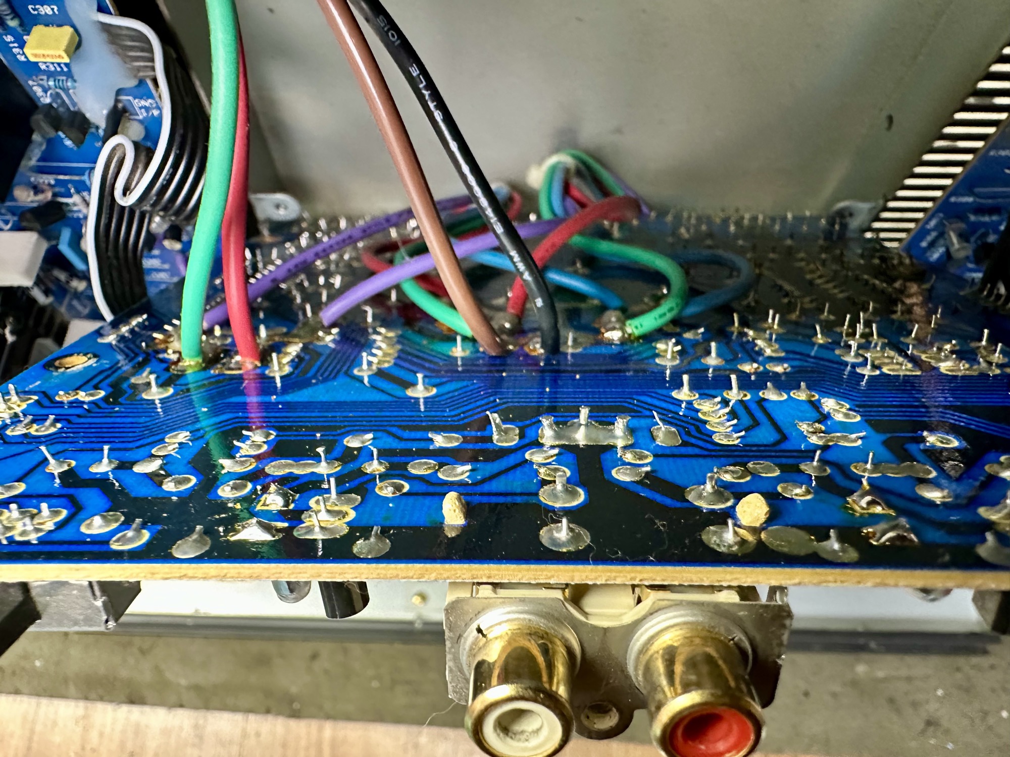 - Cinch ingangen zitten rechtstreeks op de printplaat gesoldeerd. Deze aansluiting oogt wat bros.