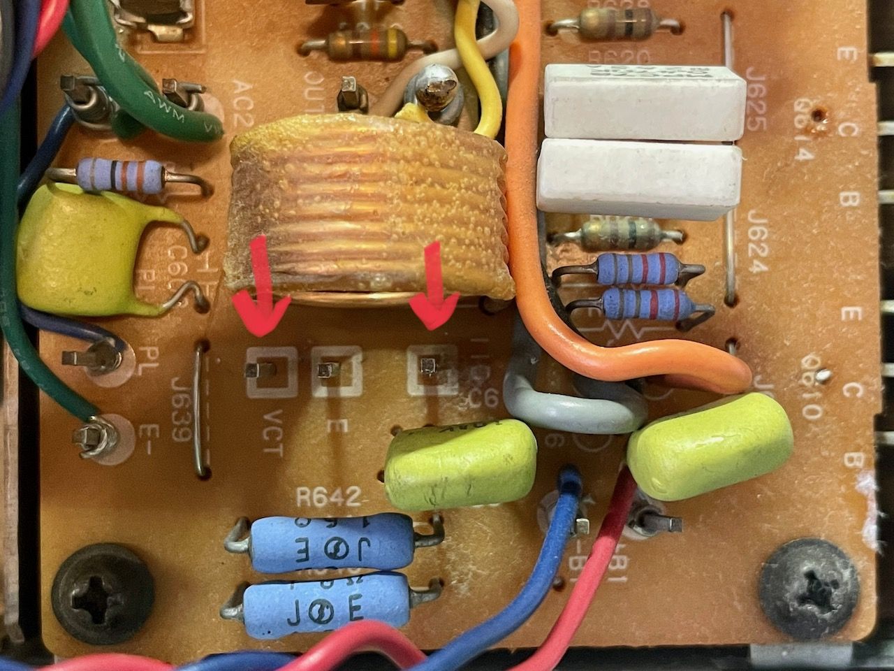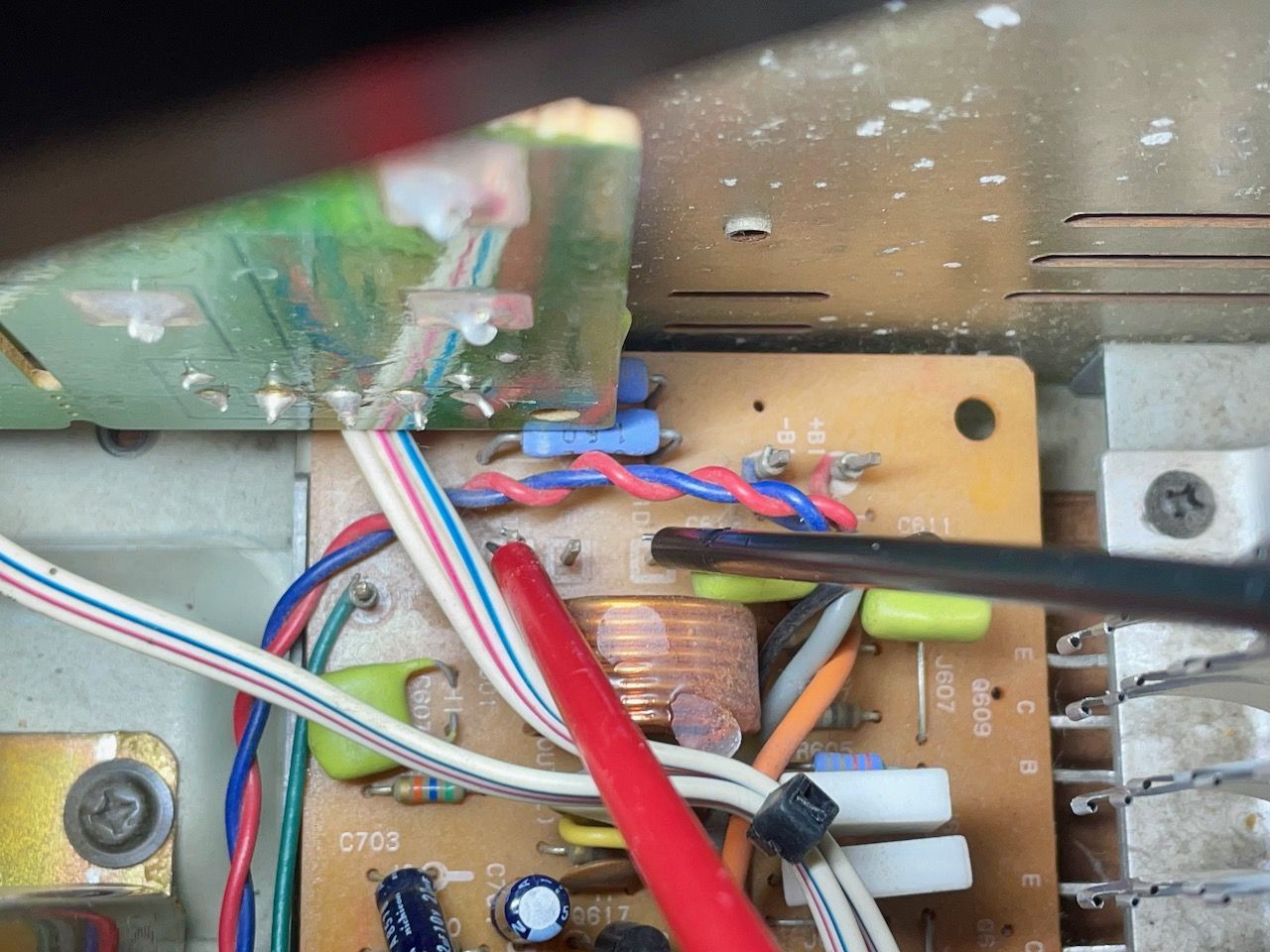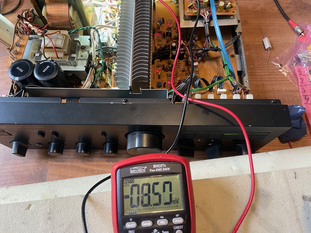 - Ruststroom ingesteld. De service manual gaf aan dat er 15V op de meetpunten zou moeten komen te staan. Dit bleek fout te zijn en om 15mV te gaan.