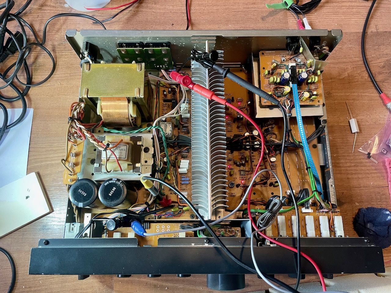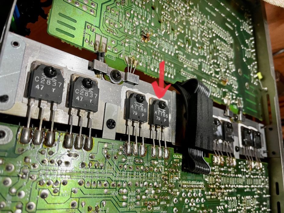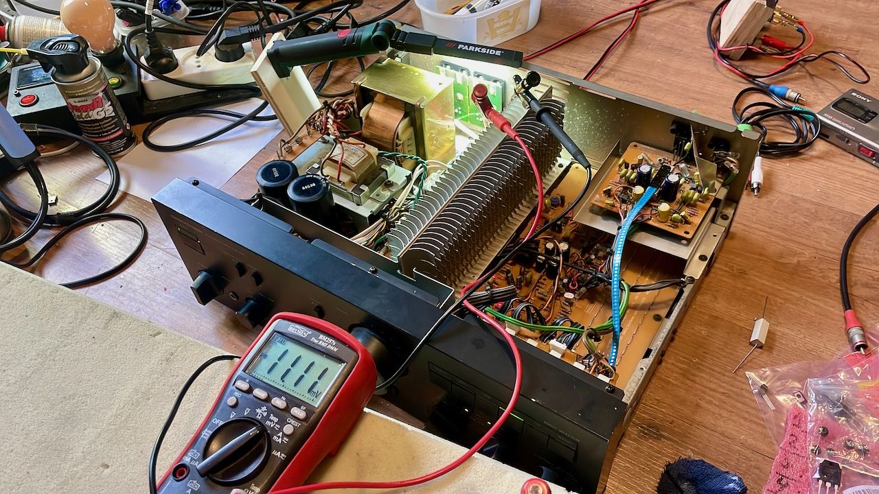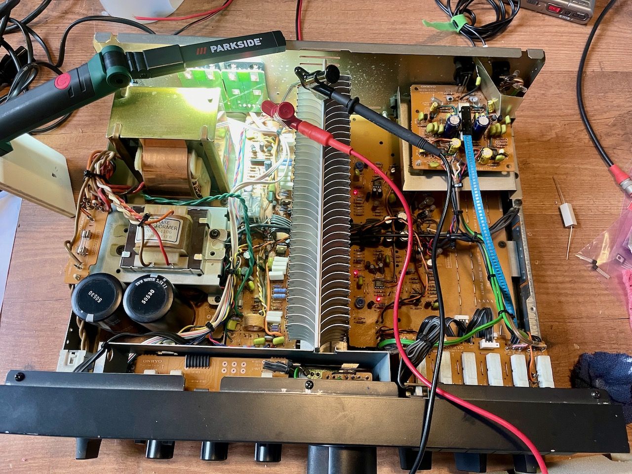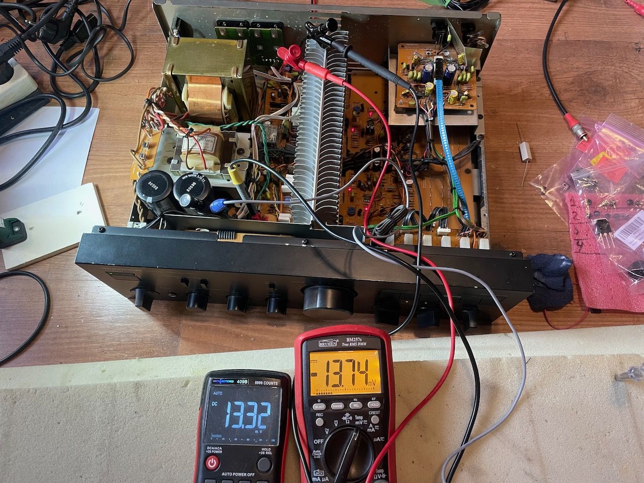 Update: Dat "... weer jaren mee kan" bleek niet juist. Na de nieuwe reparatie met de originele gebruikte transistoren klinkt deze krachtpatser weer als een zonnetje.