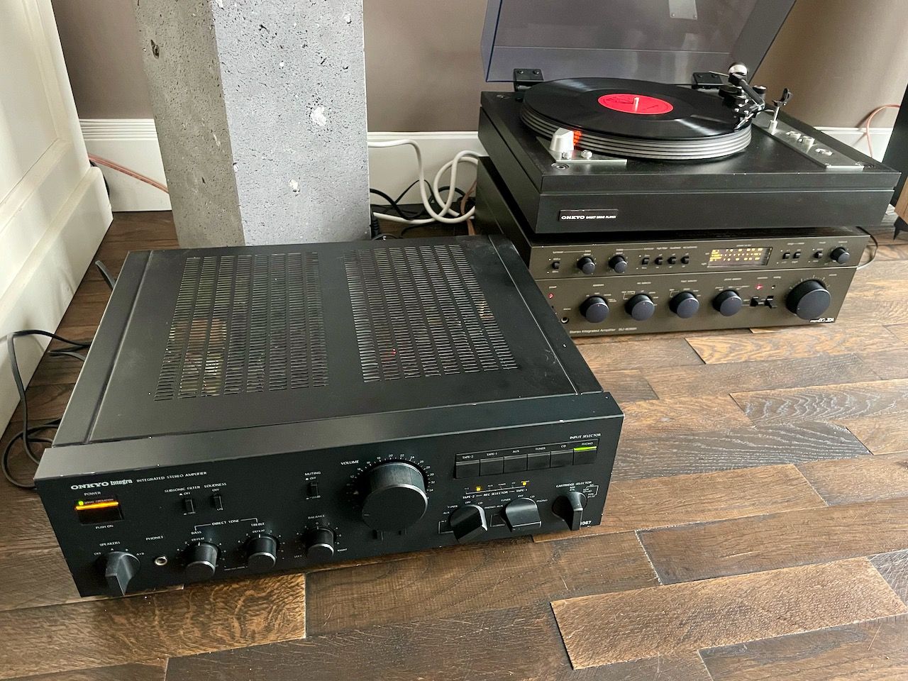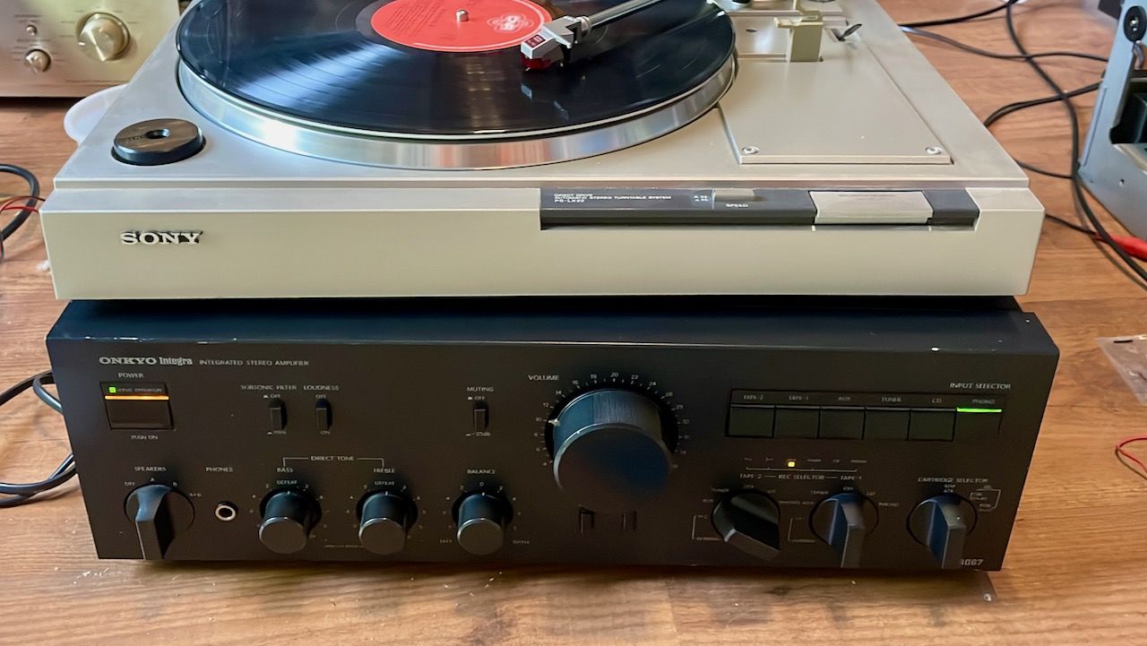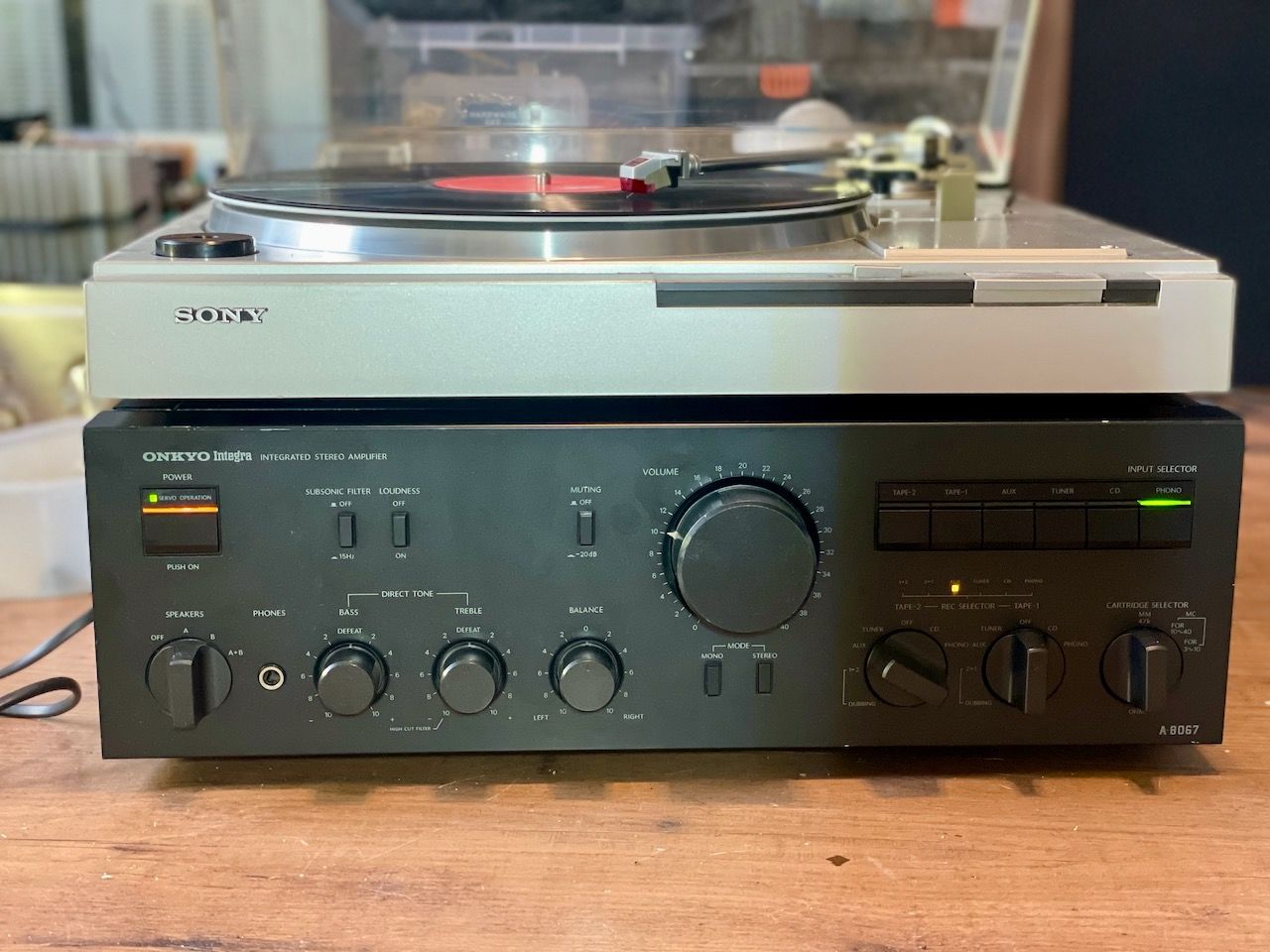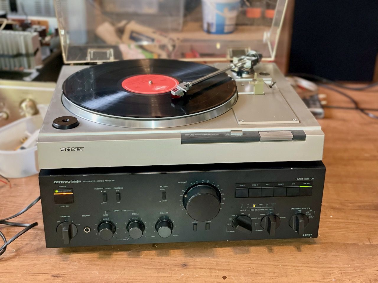 Tijd om te luisteren: Mijn prachtig klinkende Onkyo platenspeler CP-700m aangesloten op deze A-8067 versterker. Mijn op Cambridge Audio SX-80 gebaseerde luidspreker erop en het grote luisteren kon beginnen.