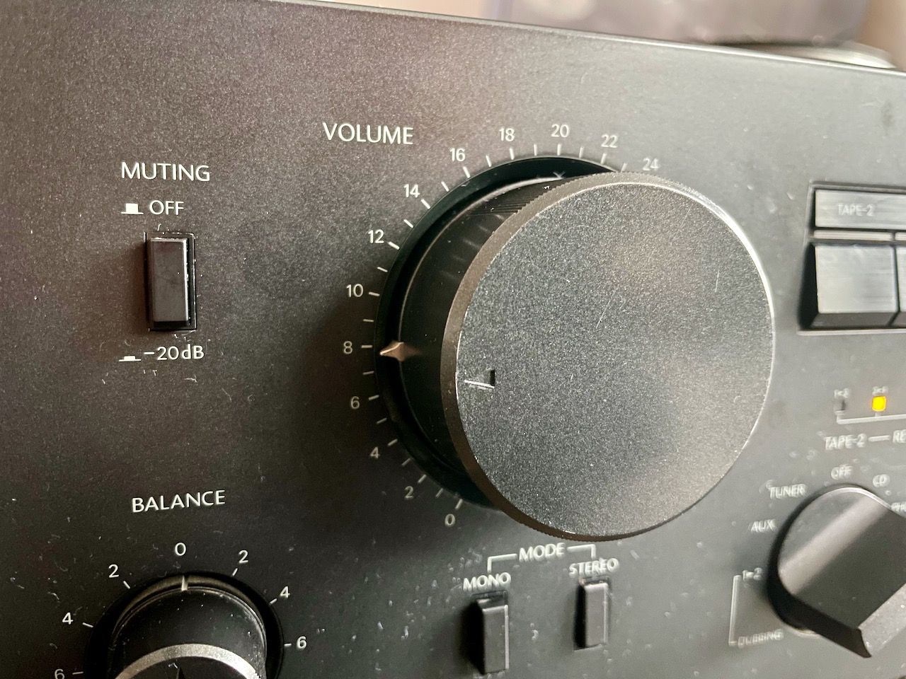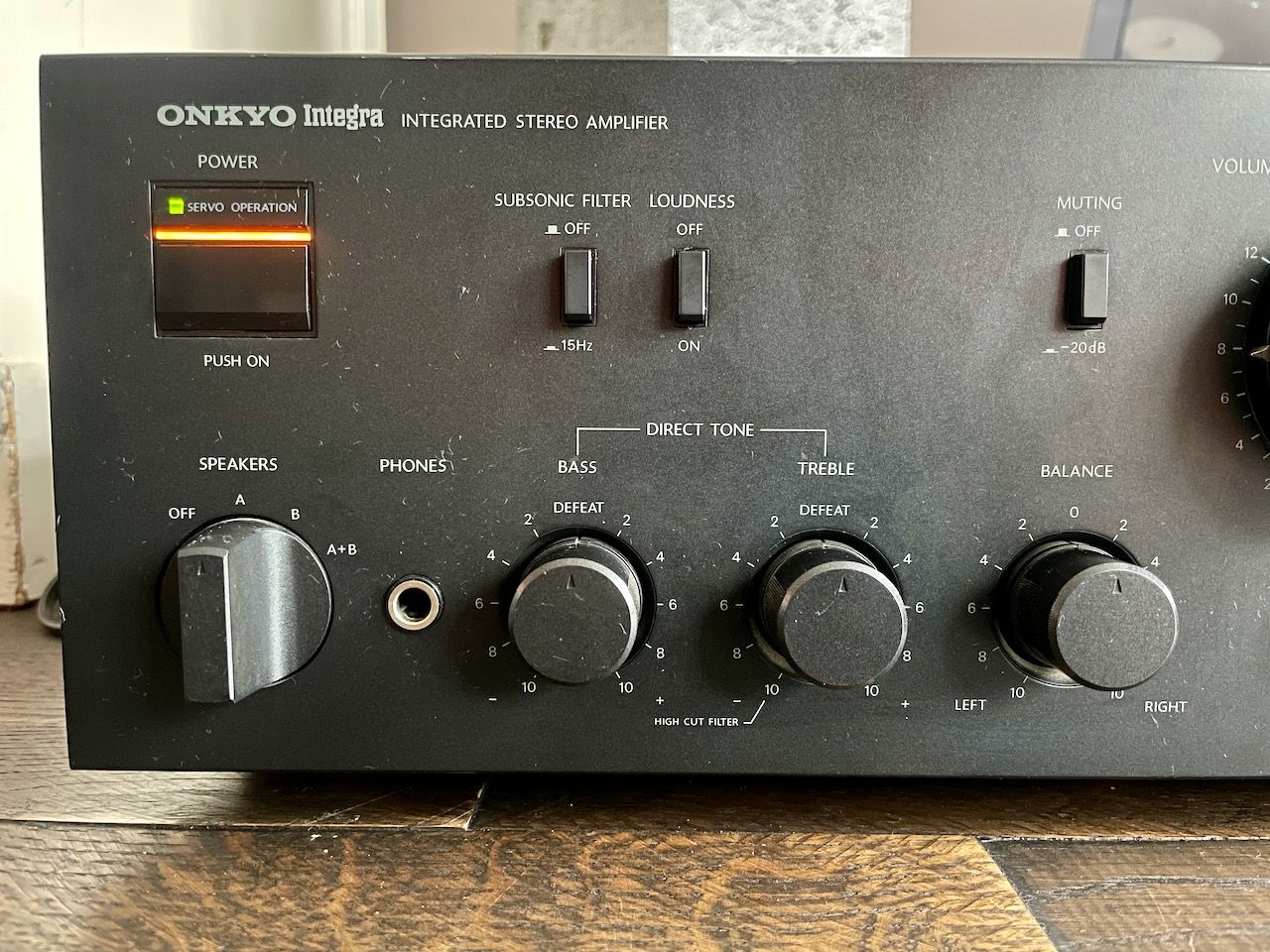De Onkyo versterker heeft meer dan voldoende vermogen en ziet er mede door zijn grote volumeknop stoer uit.