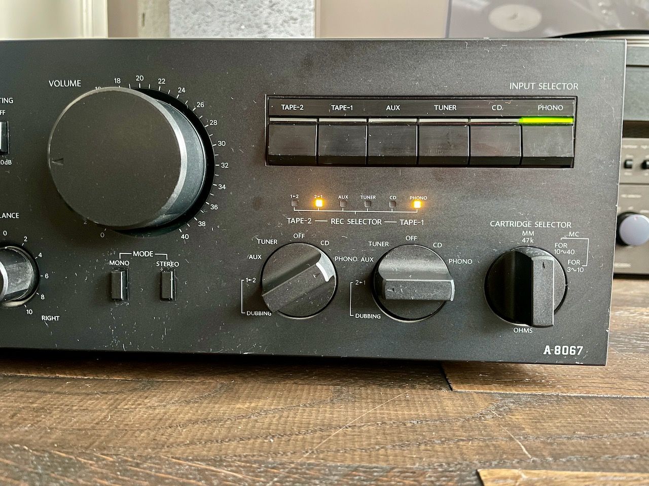 Ik heb een test gedaan. Mijn vertrouwde Onkyo CP-700 draaitafel met Orthofon naald aangesloten op zowel deze Onkyo A-8067 als een Marantz PM6004 versterker. Na een korte luistersessie vonden de twee aanwezigen de Onkyo 8067 beter klinken dan de Marantz PM6004. Een veel mooier en ruimer stereobeeld, helder en open.