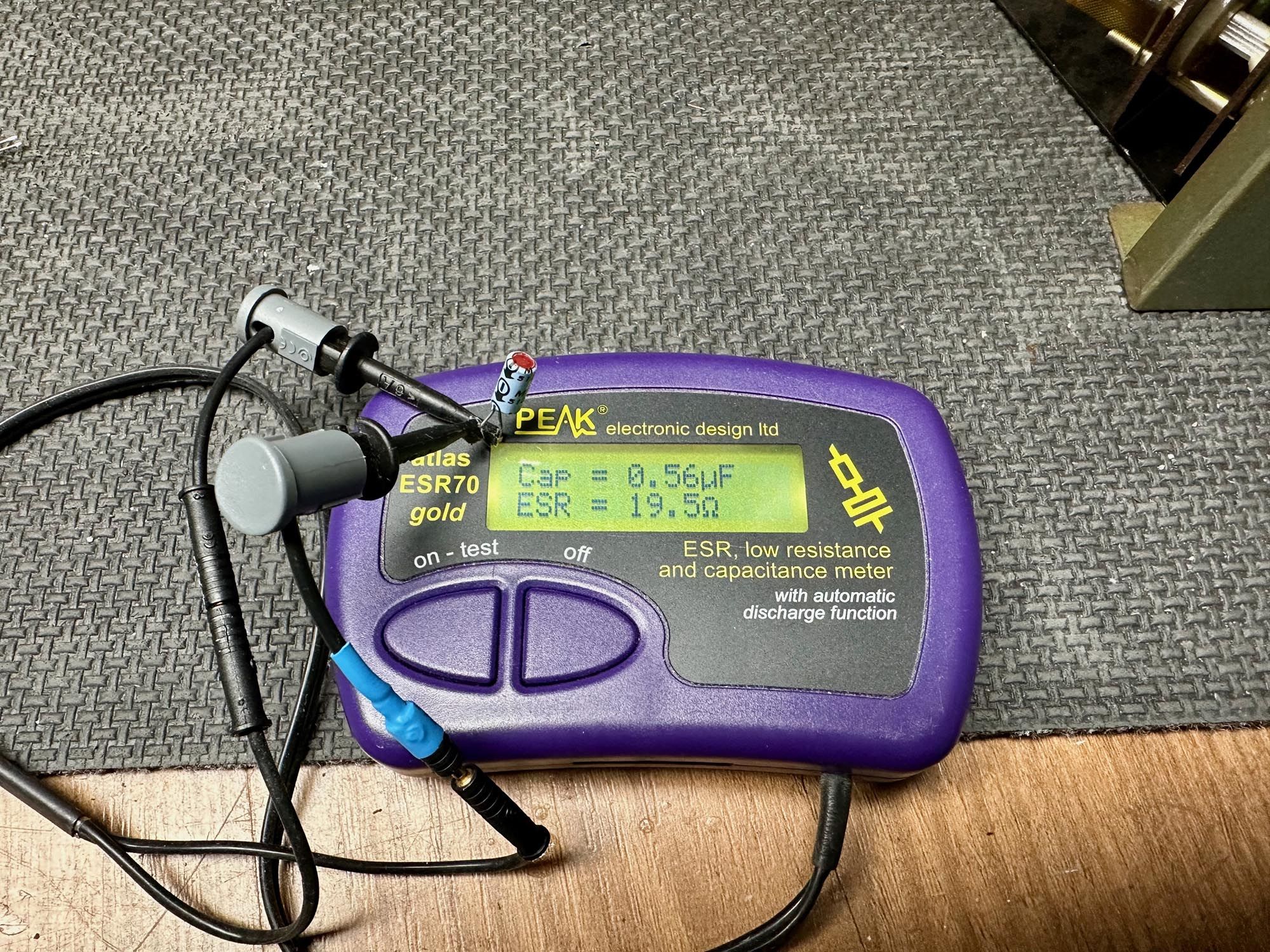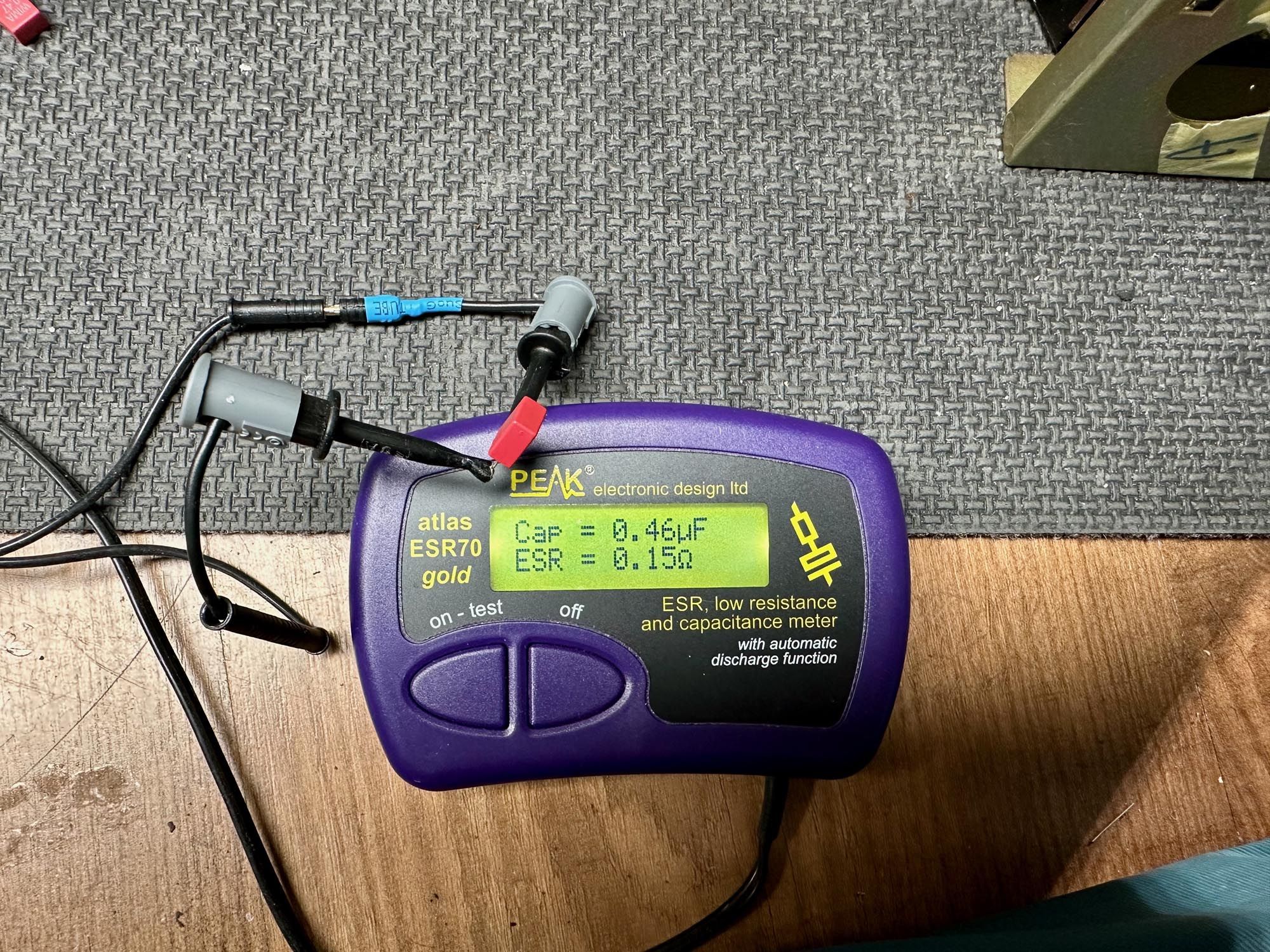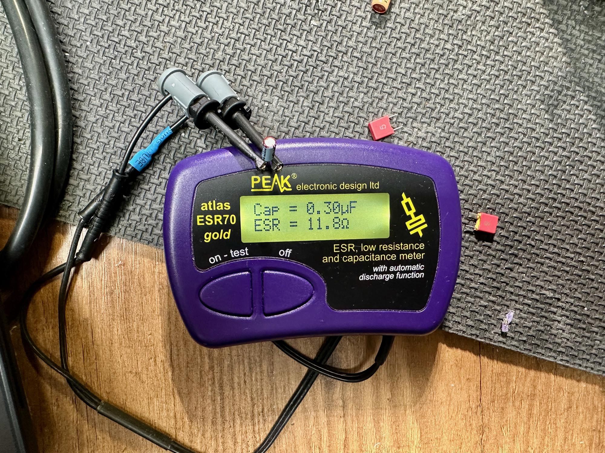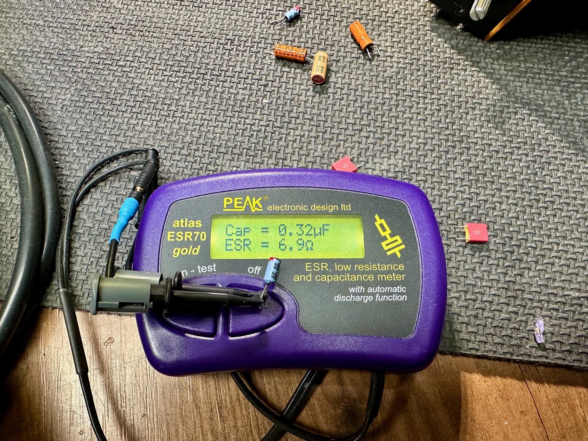 - Diverse condensatoren uitgesoldeerd en doorgemeten. Grote afwijkingen en hoge interne weerstand.