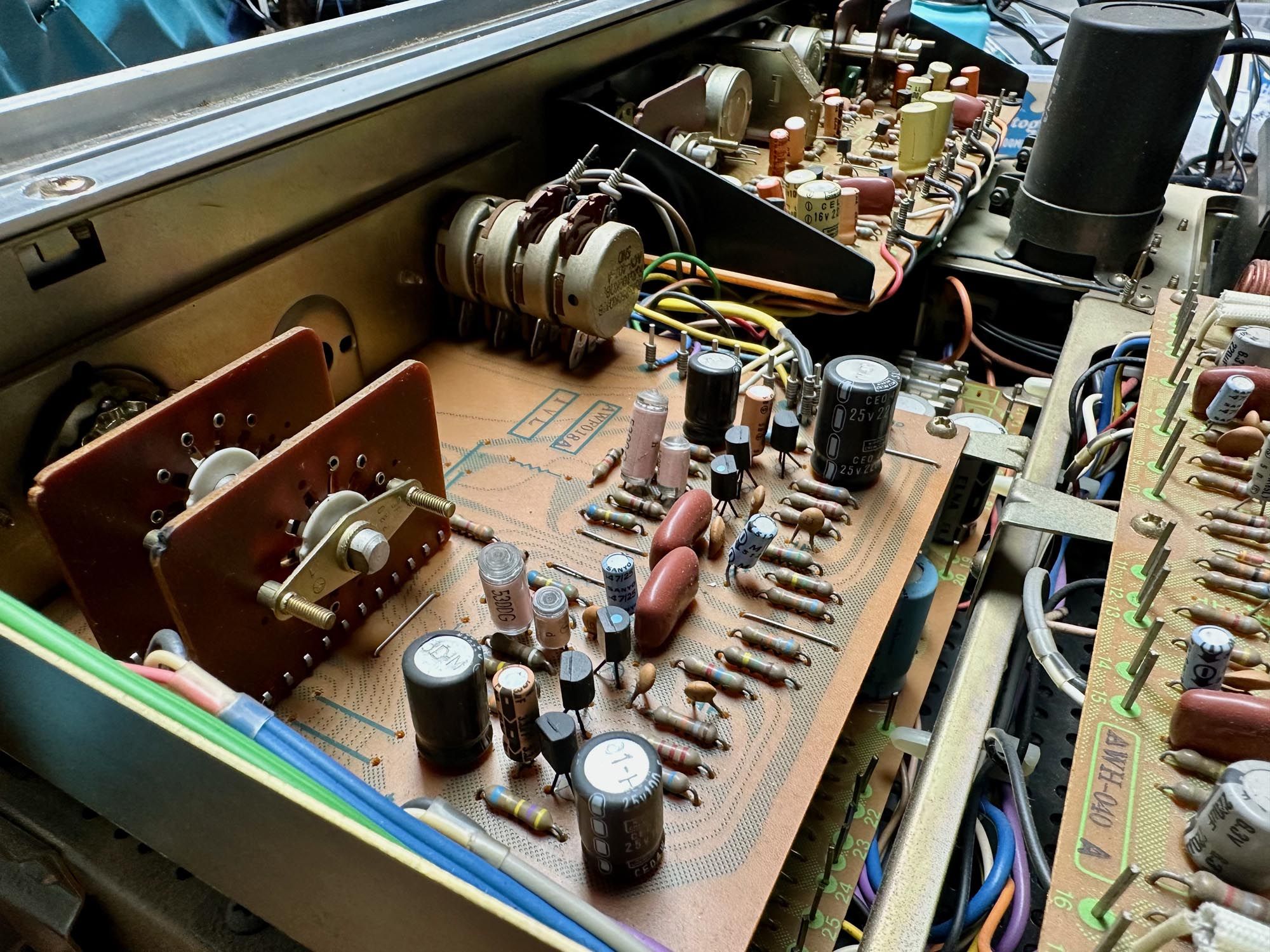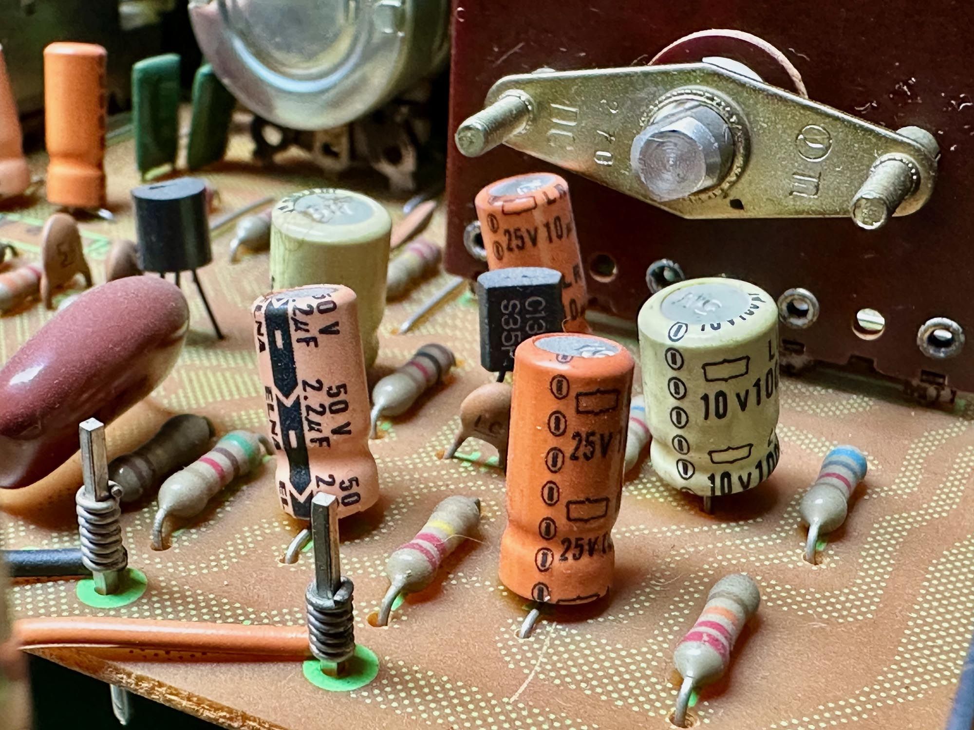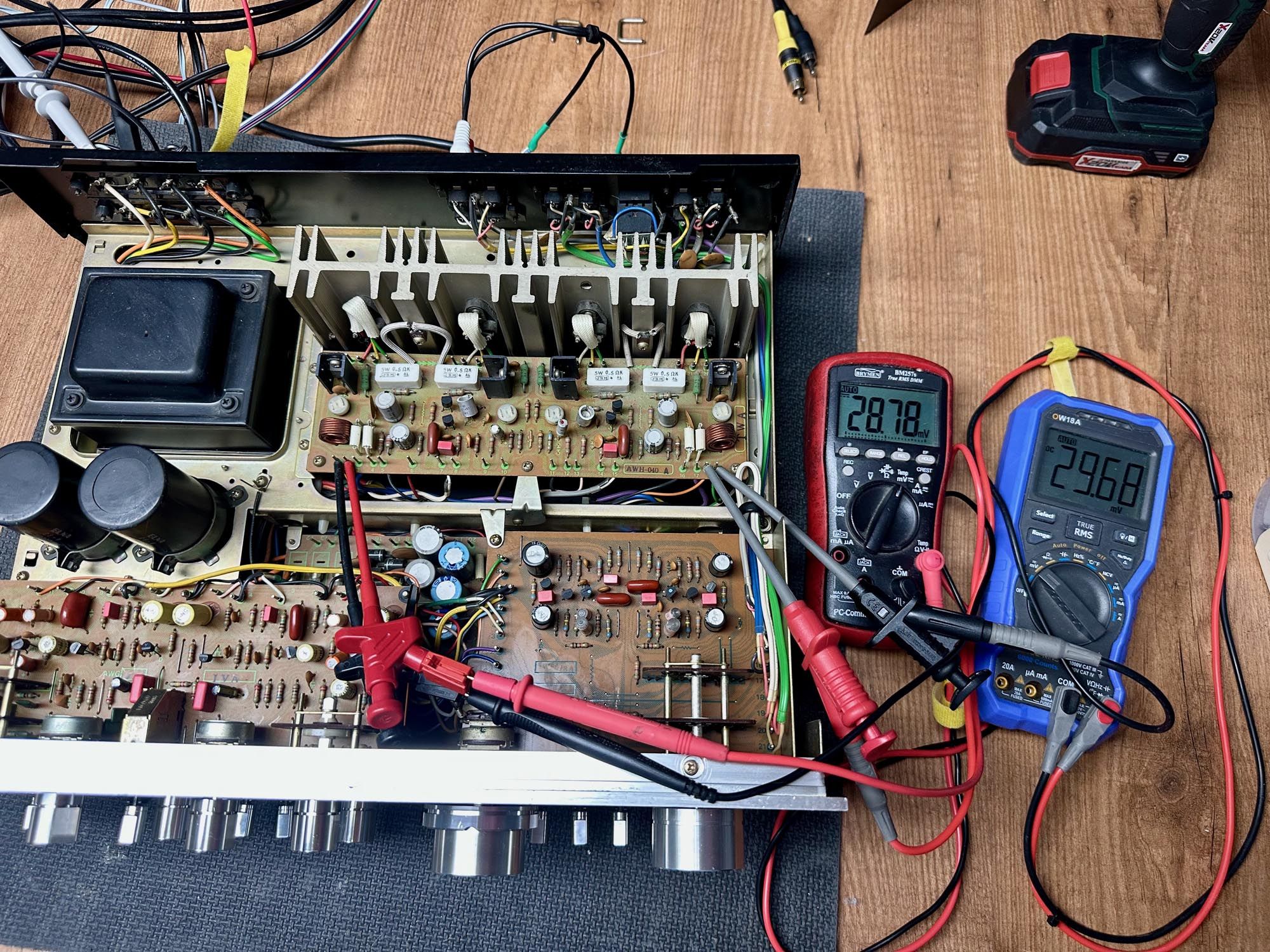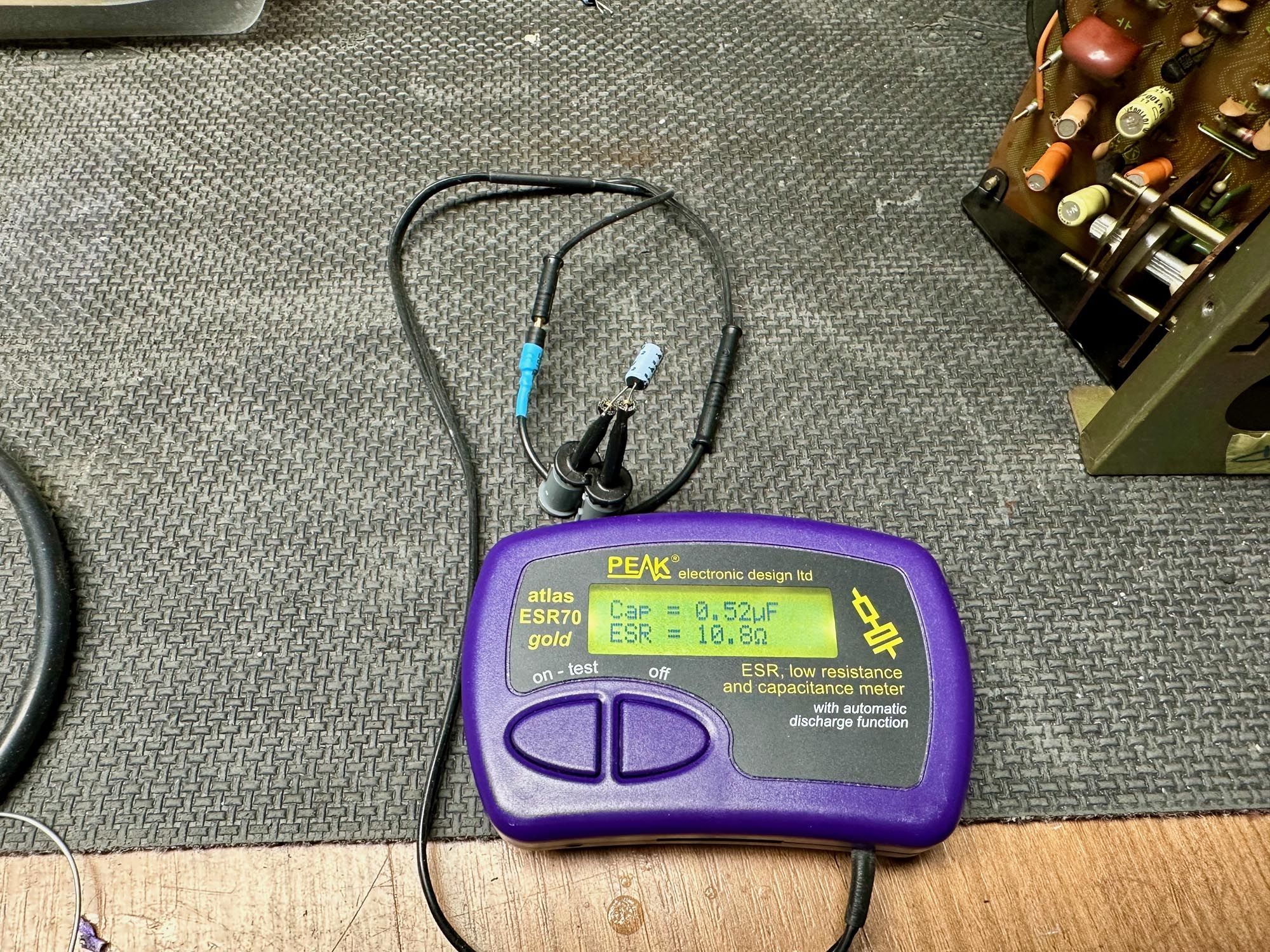 - Diverse condensatoren uitgesoldeerd en doorgemeten. Grote afwijkingen en hoge interne weerstand.