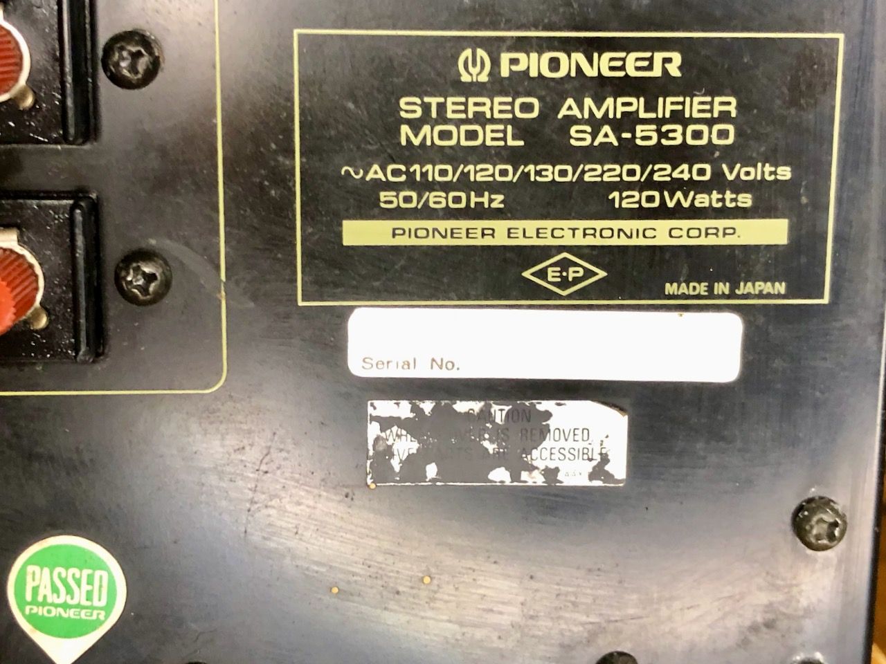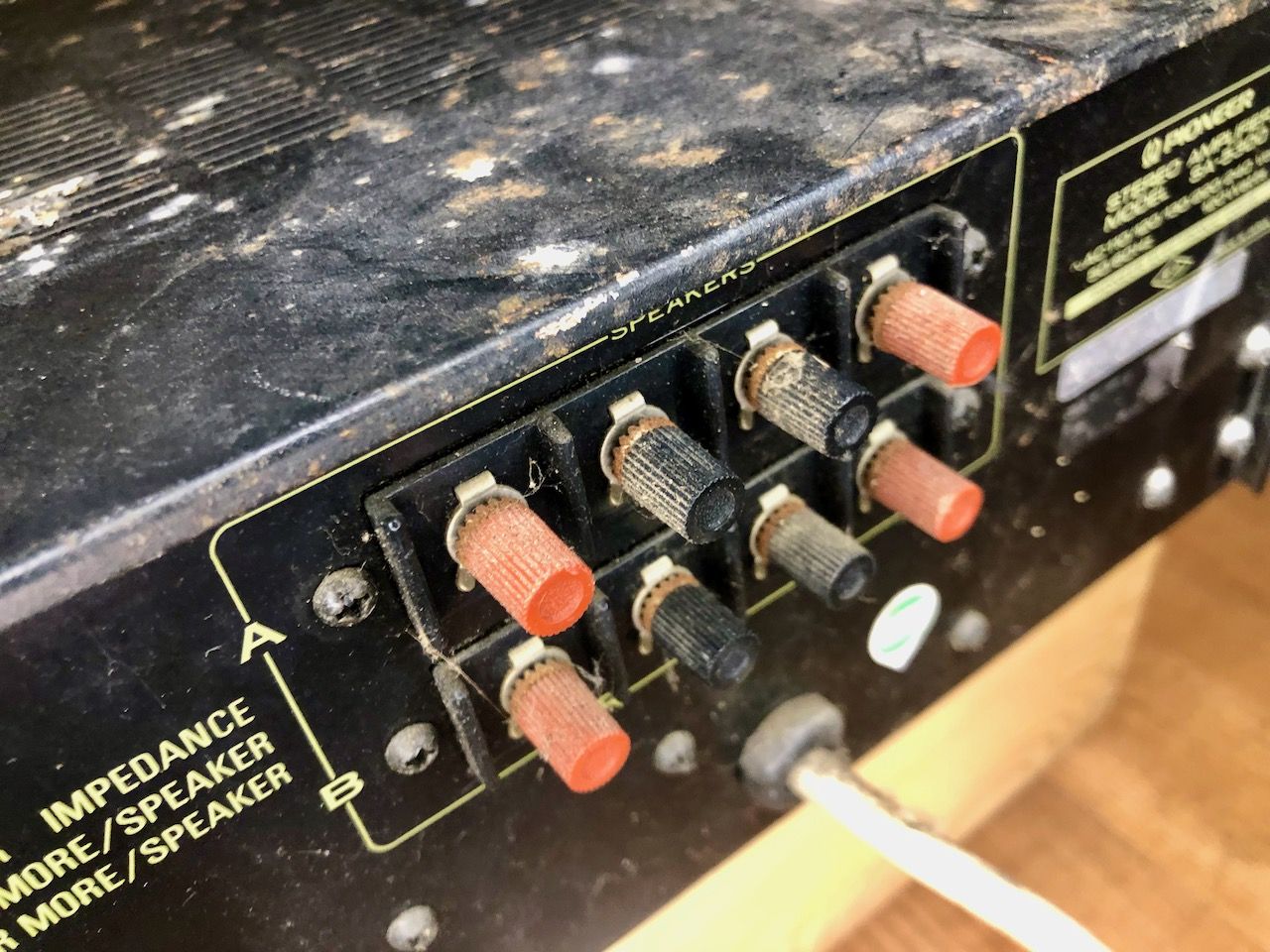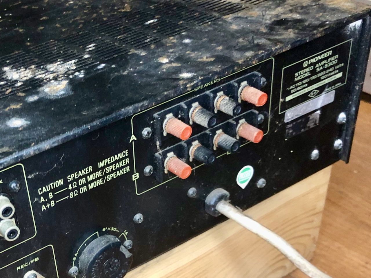 Na jaren in een schuur te hebben gestaan kwam deze zwaar verwaarloosde Pioneer SA-5300 versterker bij mij aan. Na een eerste reiniging kwam er een mooie versterker tevoorschijn. Gezien zijn leeftijd en verwaarlozing is de electronica toch nog in prima conditie.